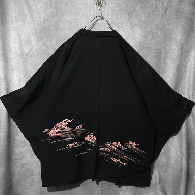 黒羽織 - 珊瑚色波 - ...................................... 珊瑚色の荒波プリントが黒に映えてカッコいいスペシャルモノ羽織。 波の先端は刺繍デザインになっていて立体感のあるデザイン。 羽織るだけでサマになるウィメンズ問わず推せる1着です。 ...................................... size:none 着丈:80 cm / 74 cm ( 前 / 後ろ ) 身幅:61 cm 肩幅:61.5 cm 袖丈:33 cm Length:80 cm / 74 cm (front / back) Width:61 cm Shoulder Width :61.5 cm Sleeves Length:33 cm material:silk made:Japan rank:B A → 数回使用した程度の非常に綺麗な状態 B → 使用感が少ない比較的良好な状態 C → 着用に問題がない程度の使用感がある状態 D → 傷やダメージが目立つ状態 ※サイズは全て平置きでの採寸です。多少の誤差がありますのでご了承ください。 ※こちらUSEDですので多少の汚れや傷、生地・糸のほつれ等が見られる場合がございます。あらかじめご理解ご了承くださいませ。 A → Very beautiful condition that has been used several times. B → Relatively good condition with little usability. C → There is a feeling of use that there is no problem in wearing. D → A state where scratches and damage are conspicuous. * All sizes are measured horizontally. Please note that there are some errors. * Since this is a used item, some dirt, scratches, and frayed fabrics and threads may be seen. Thank you for your understanding in advance. js21-1003-K63 ...