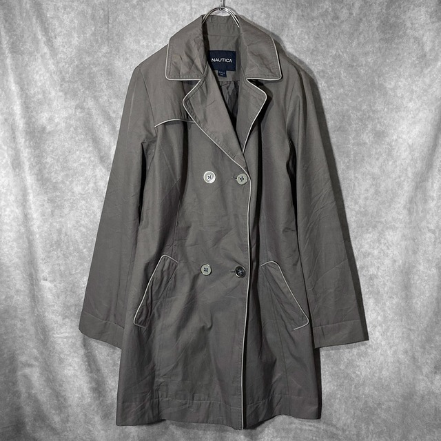 NAUTICA Grayish color × Piping pattern design Double Trench half coat
