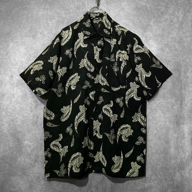 XXXL 唐草 Arabesque all over pattern Monochrome design vintage S/S shirt