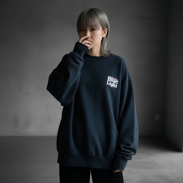 Peacock blue color Chest " Blue Light " embroidery design Sweat shirt