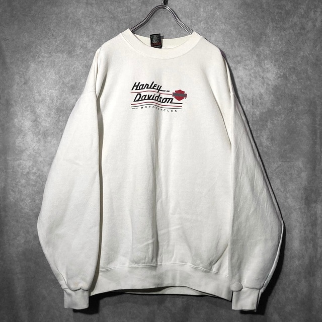 ...................................... アメリカの老舗バイクメーカー・ハーレーダビッドソンのロゴプリントデザインがインパクトを放つスウェットシャツ入荷。 デザインの異なる2種類のロゴが、フロントとバック両面にプリントされた抜かりのない贅沢なデザイン。 クリーンな印象の春らしいホワイトカラーで、古着の中でも綺麗なホワイトのままで現存してるのはそれだけでかなりレアかもしれません。 アイテムによってはハーレーダビッドソンは見つかりにくかったりもする希少な1点モノのスペシャルピースです◎ ...................................... size:L 着丈:66 cm / 70 cm ( 前 / 後ろ ) 身幅:56.5 cm 肩幅:58.5 cm 袖丈:55.5 cm Length:66 cm / 70 cm (front / back) Width:56.5 cm Shoulder Width :58.5 cm Sleeves Length:55.5 cm material:Cotton 50%, polyester 50% made:USA rank:B ※ 小さなシミあり A → 数回使用した程度の非常に綺麗な状態 B → 使用感が少ない比較的良好な状態 C → 着用に問題がない程度の使用感がある状態 D → 傷やダメージが目立つ状態 ※サイズは全て平置きでの採寸です。多少の誤差がありますのでご了承ください。 ※こちらUSEDですので多少の汚れや傷、生地・糸のほつれ等が見られる場合がございます。あらかじめご理解ご了承くださいませ。 A → Very clean condition, used only a few times. B → Good condition with few wears. C → Wearable without problems, but with signs of use. D → Scratches and damages are noticeable. * All measurements are taken flat. Please note that there is a slight margin of error. * This is a USED item, so there may be some stains, scratches, loose fabric and threads. Please understand and understand in advance. ks22-0404-K44 ......................................