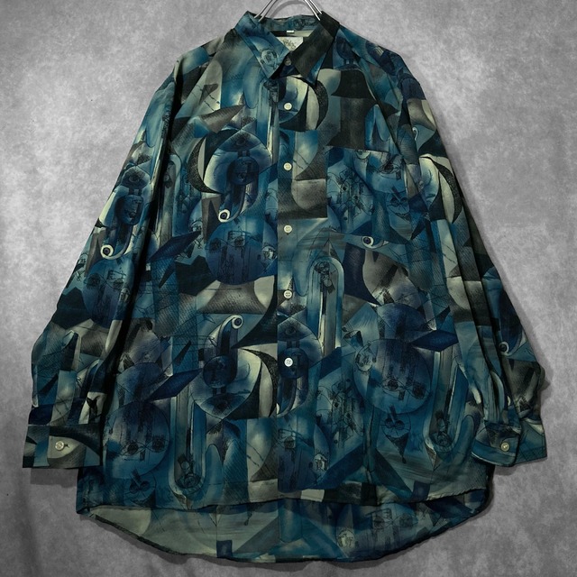 XXL Cold tone colored All-over print Picaso art pattern design L/S shirt