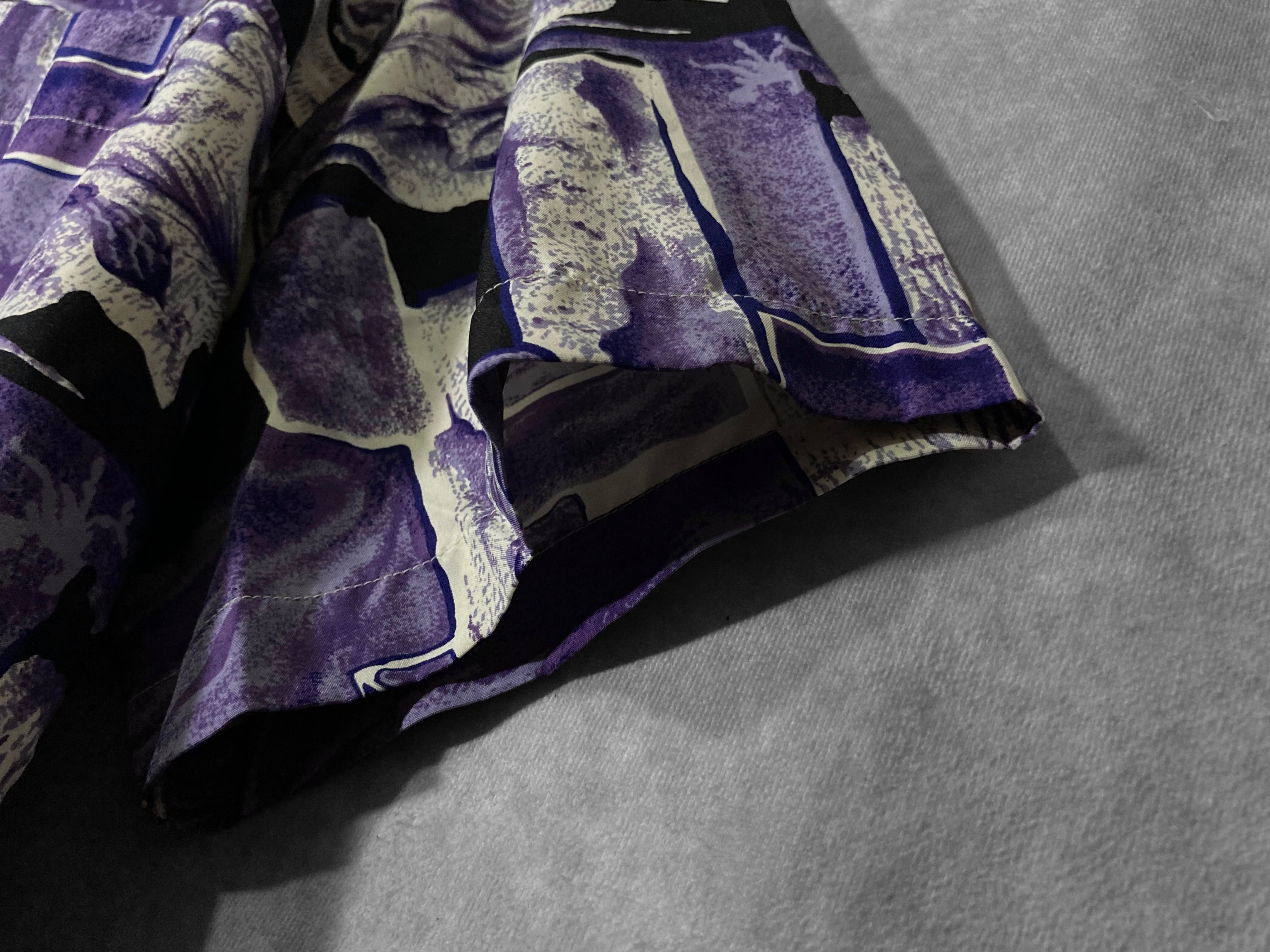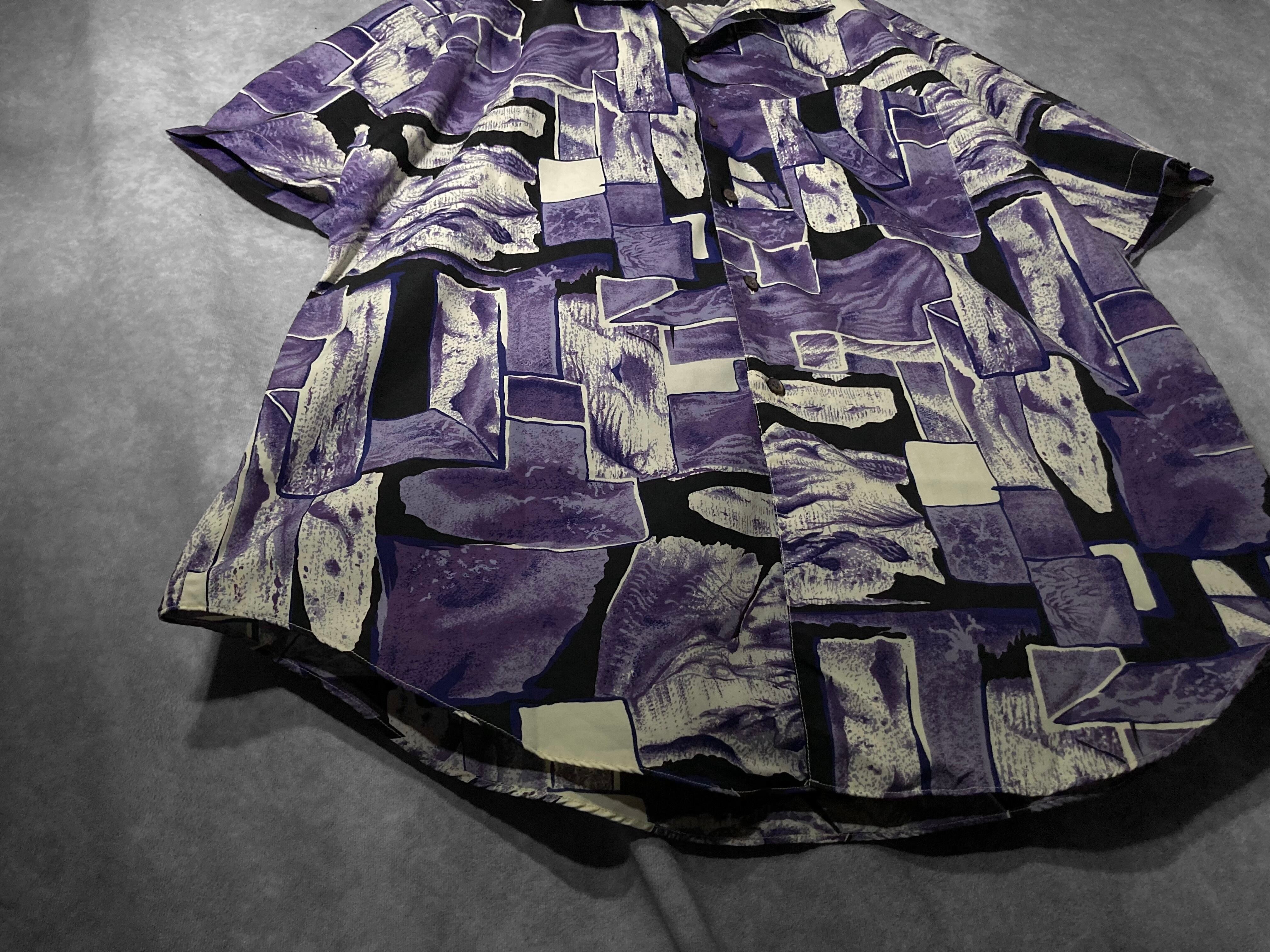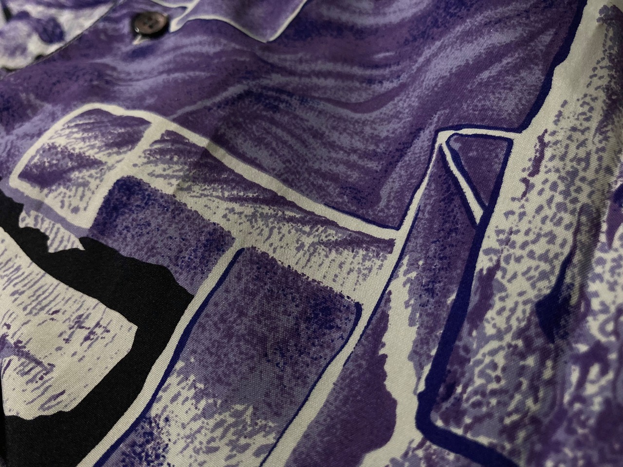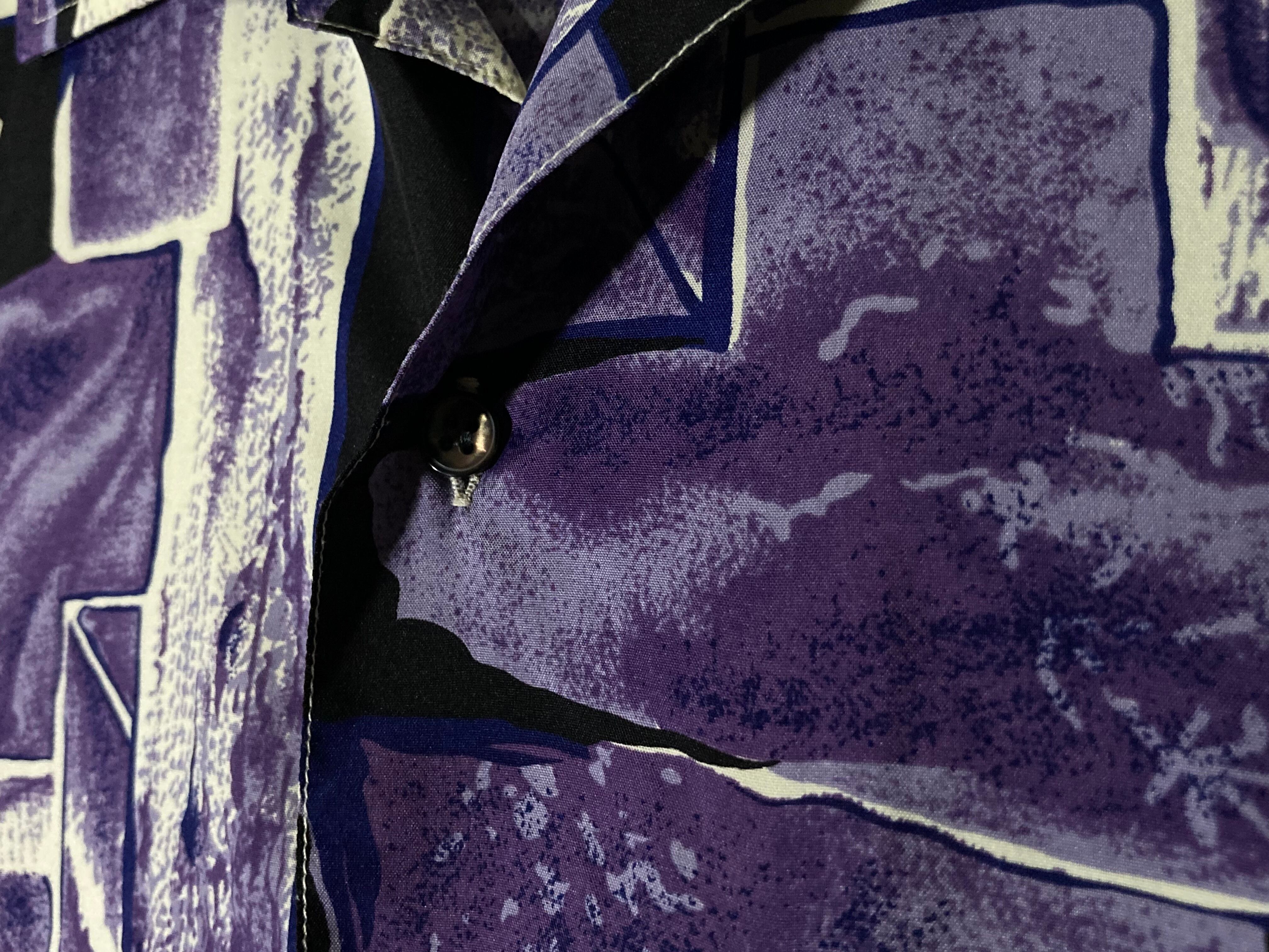 " 微睡み " Purple colored, Slightly-Sleeping printed All-over pattern design Half-sleeves shirt