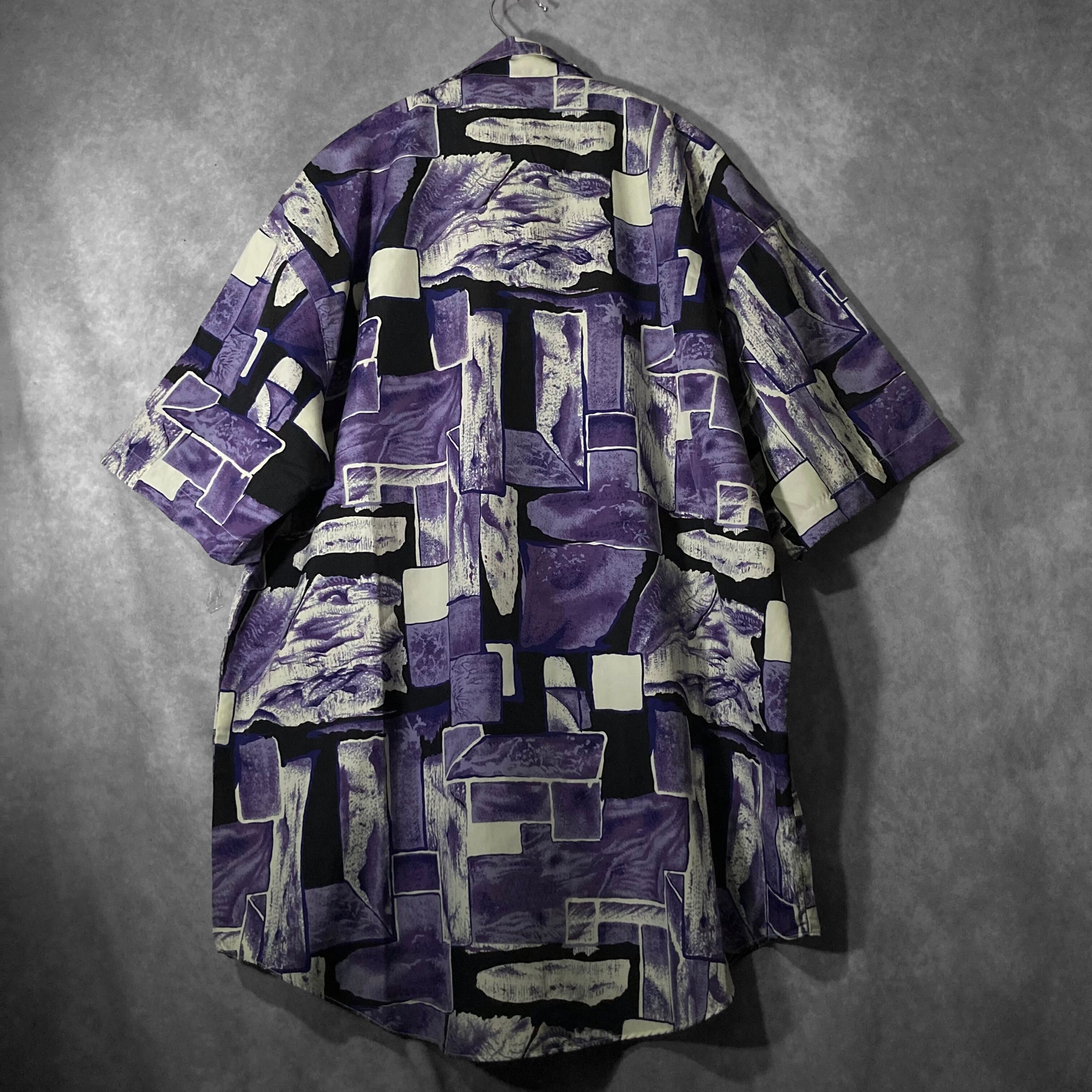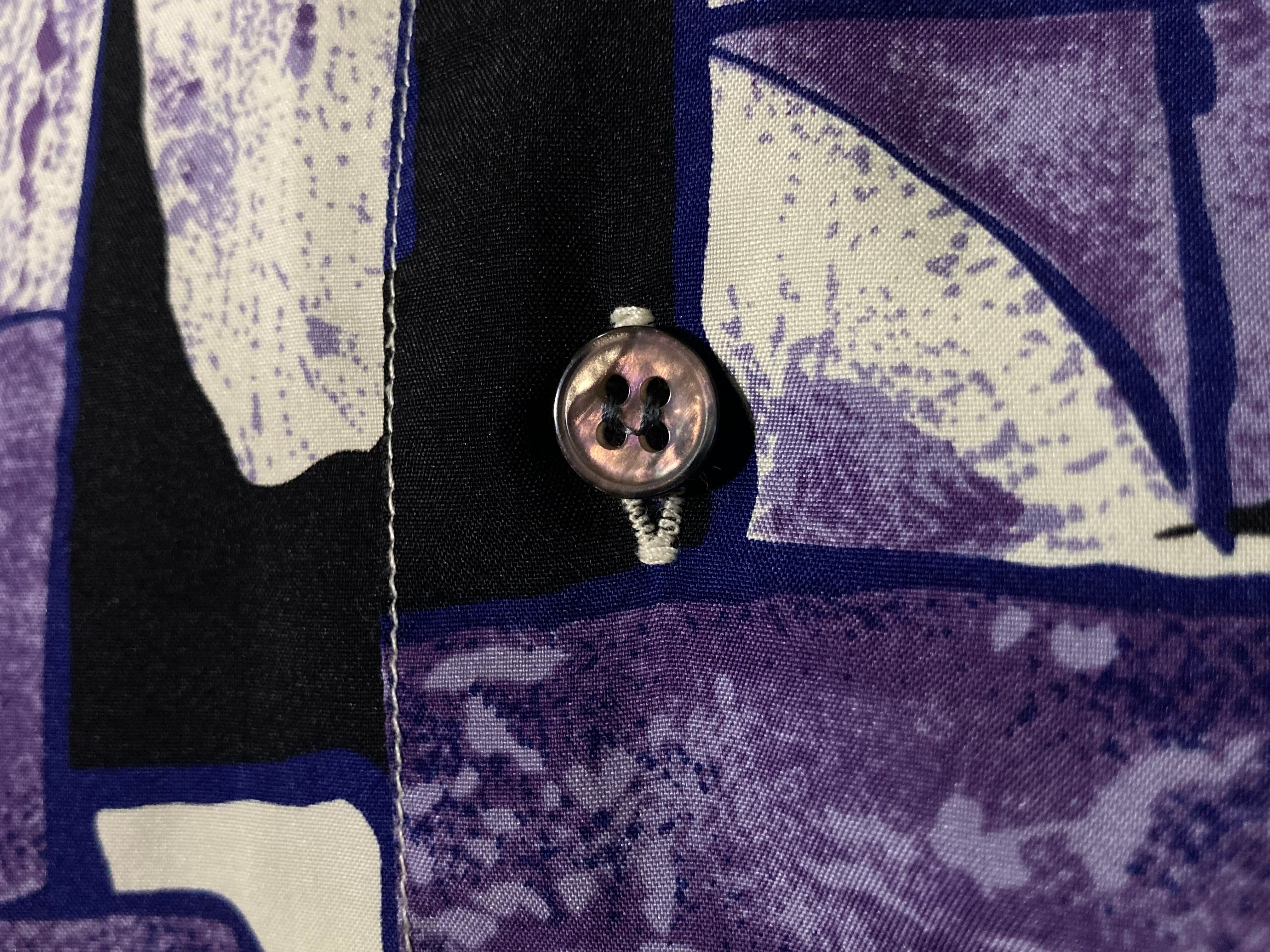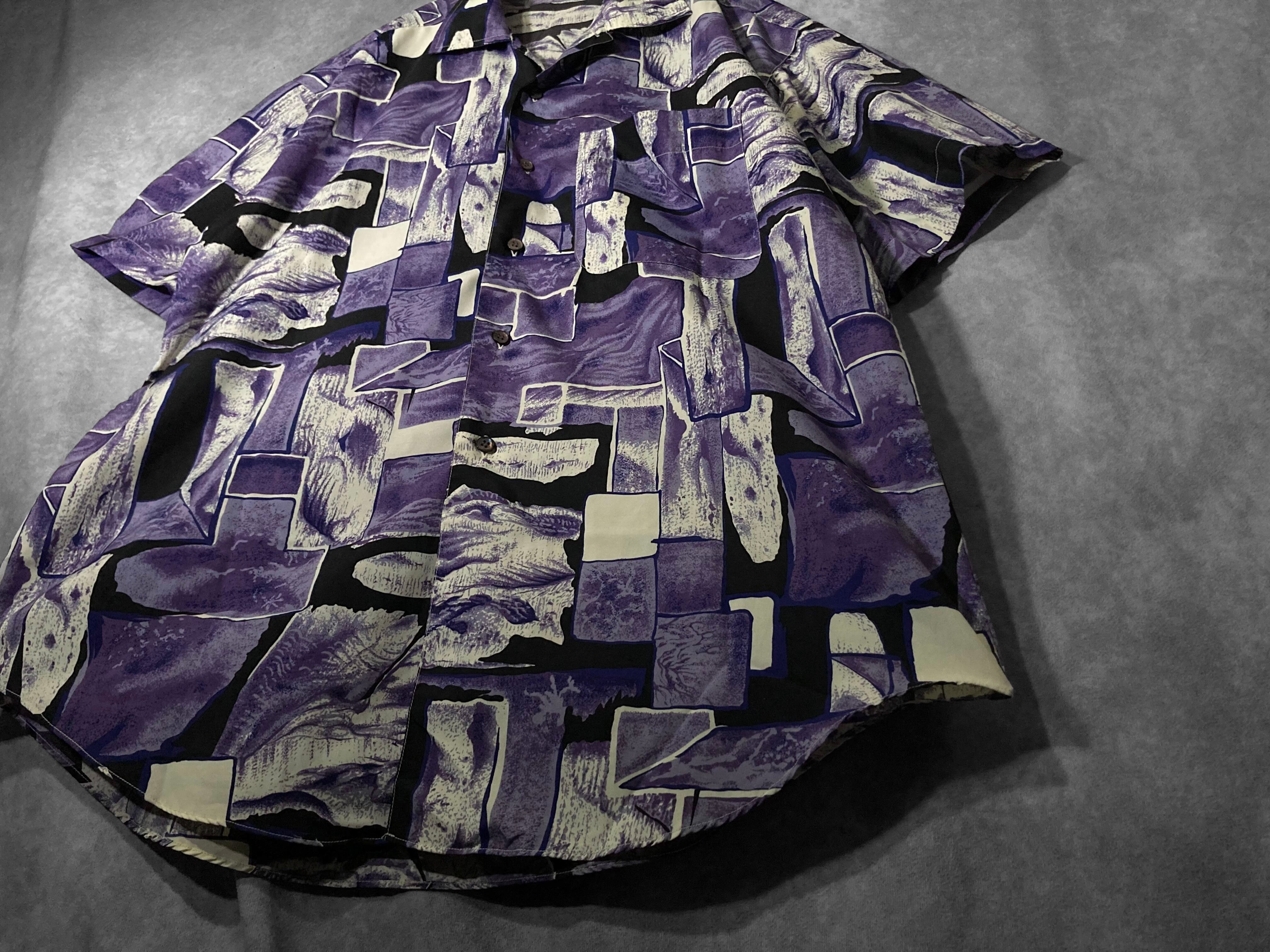 " 微睡み " Purple colored, Slightly-Sleeping printed All-over pattern design Half-sleeves shirt
