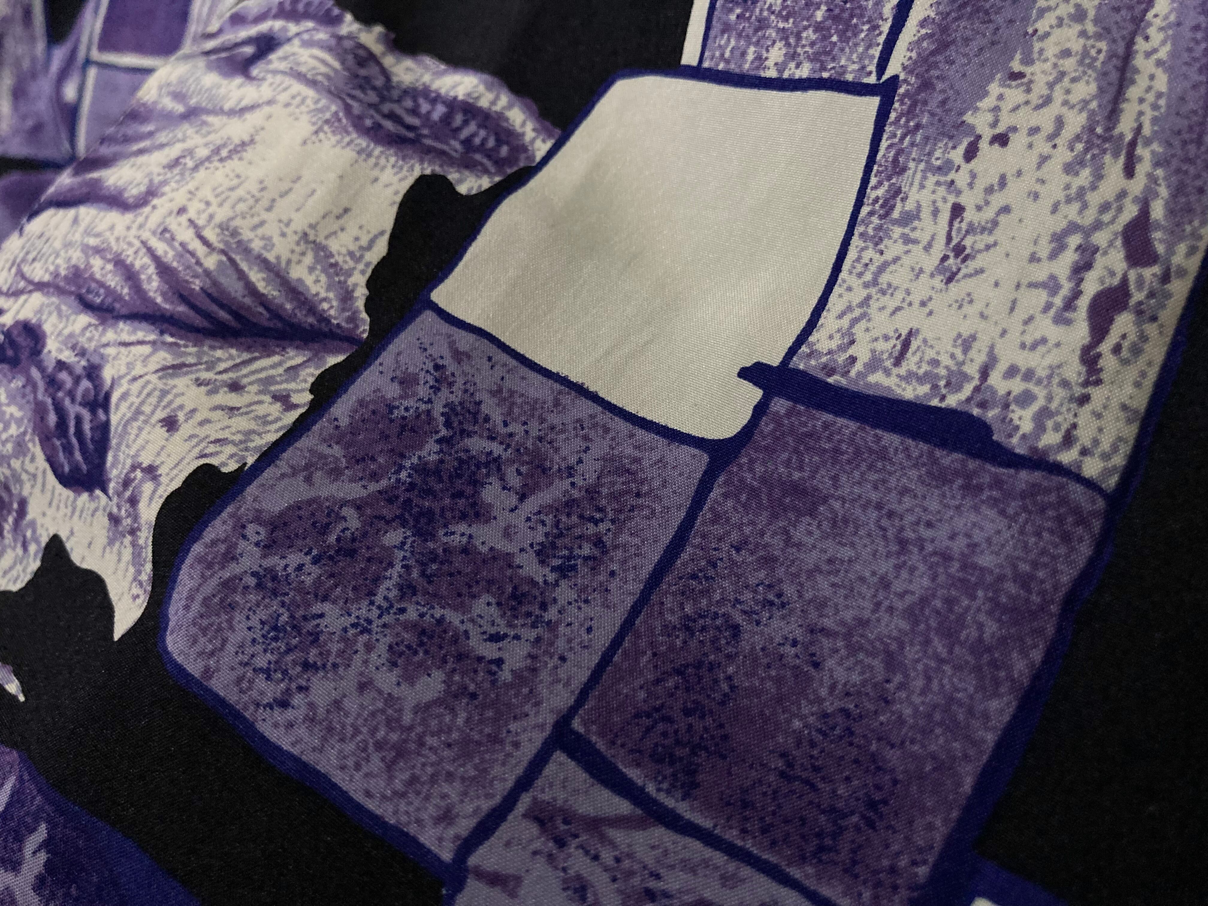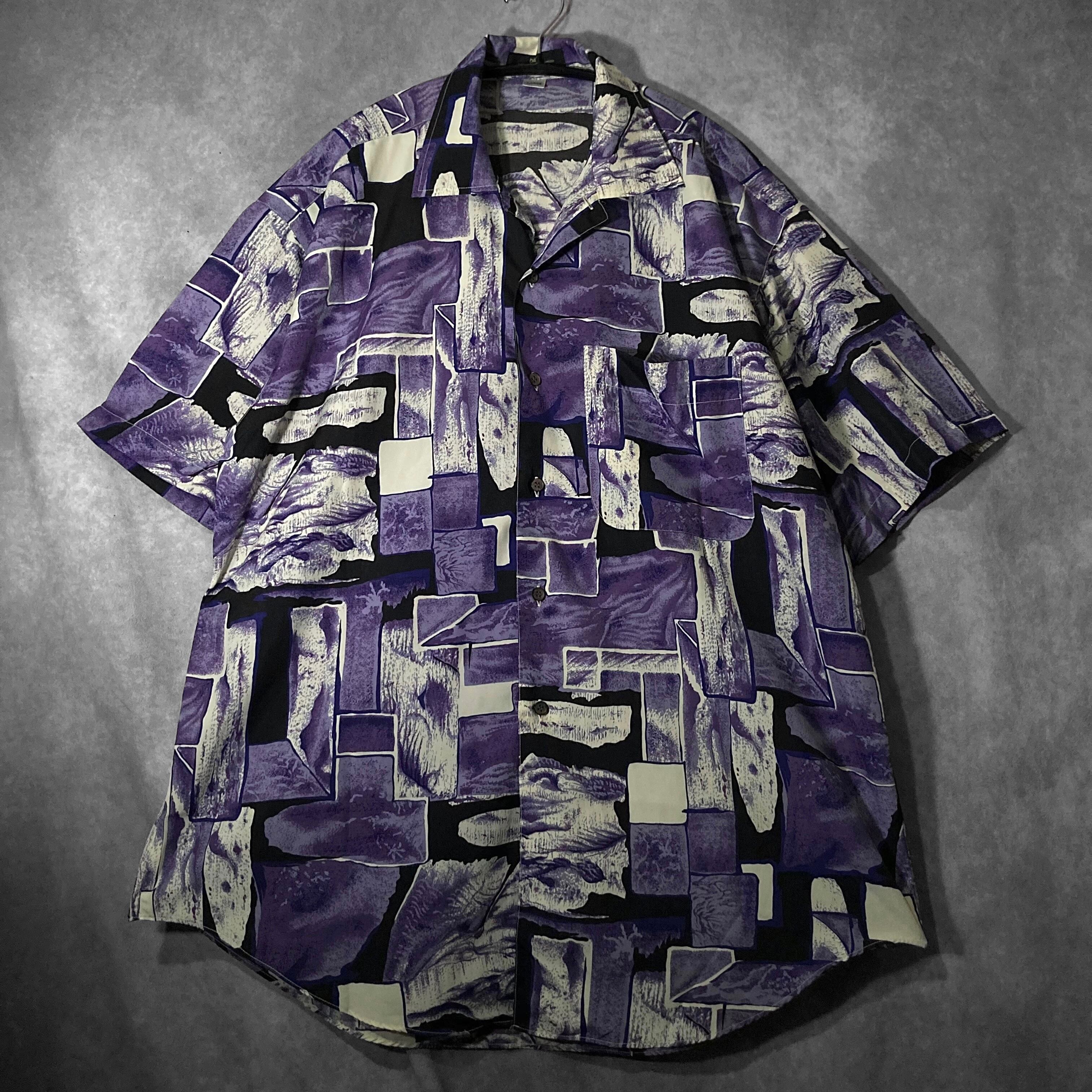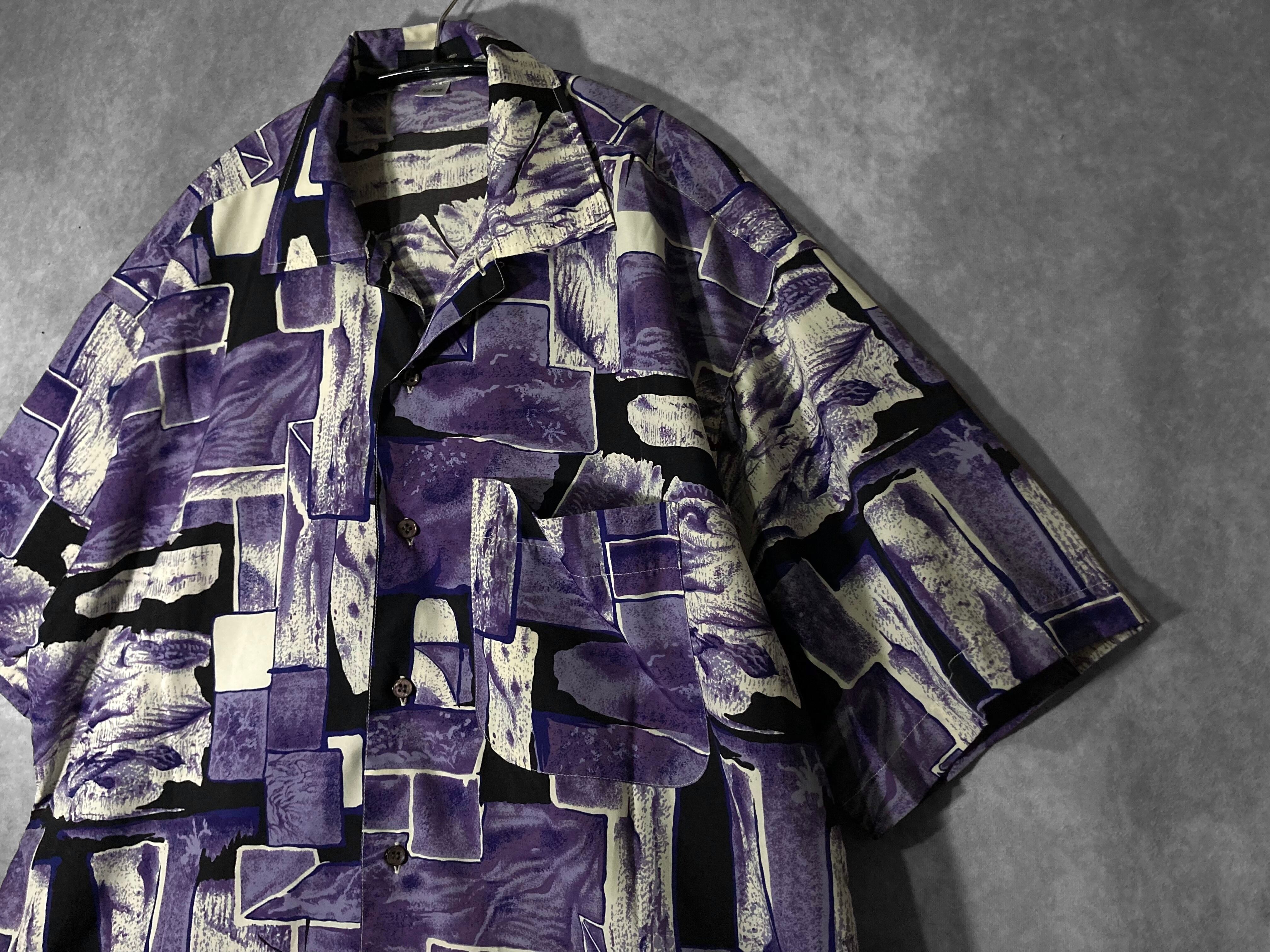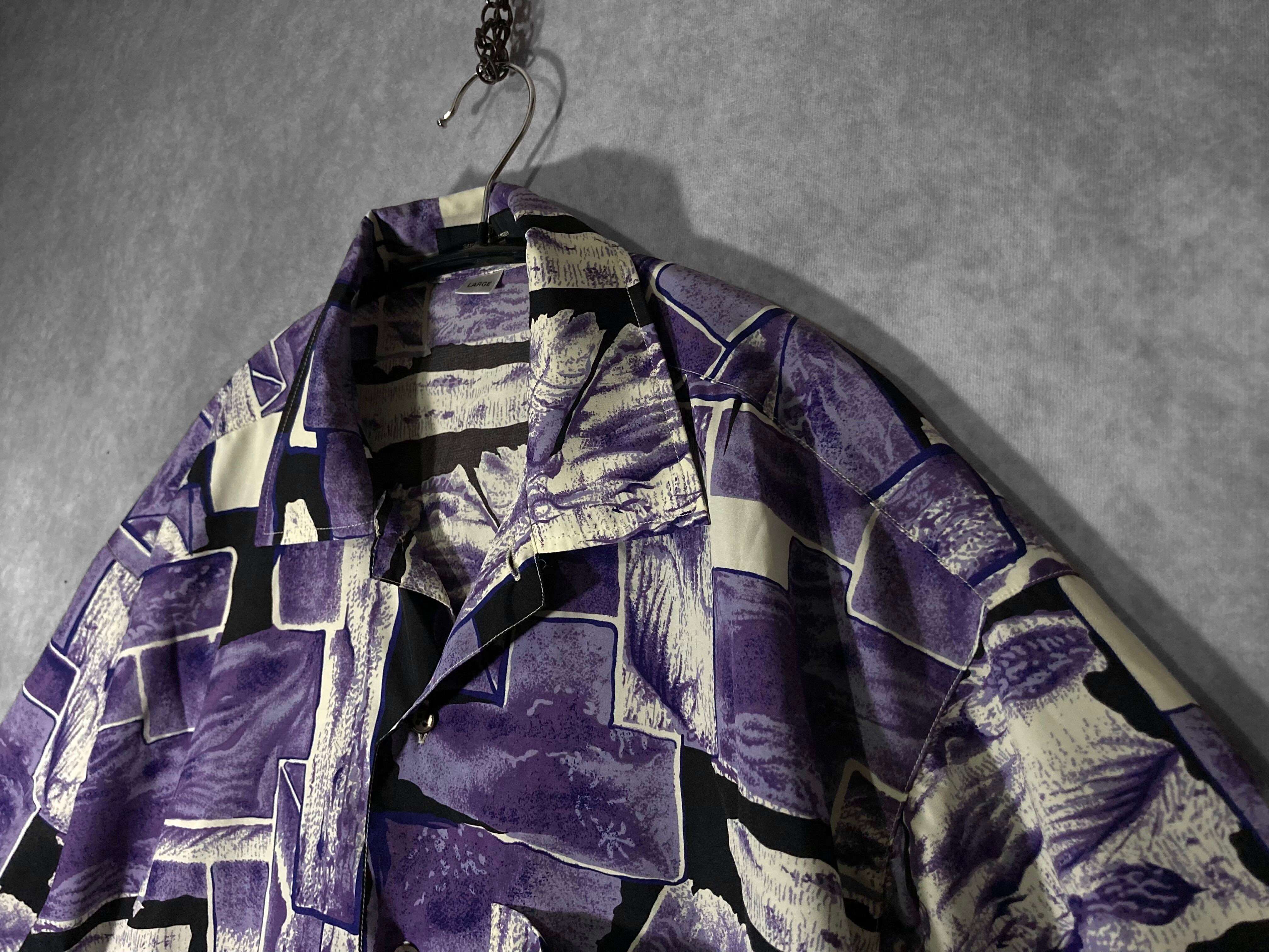 " 微睡み " Purple colored, Slightly-Sleeping printed All-over pattern design Half-sleeves shirt