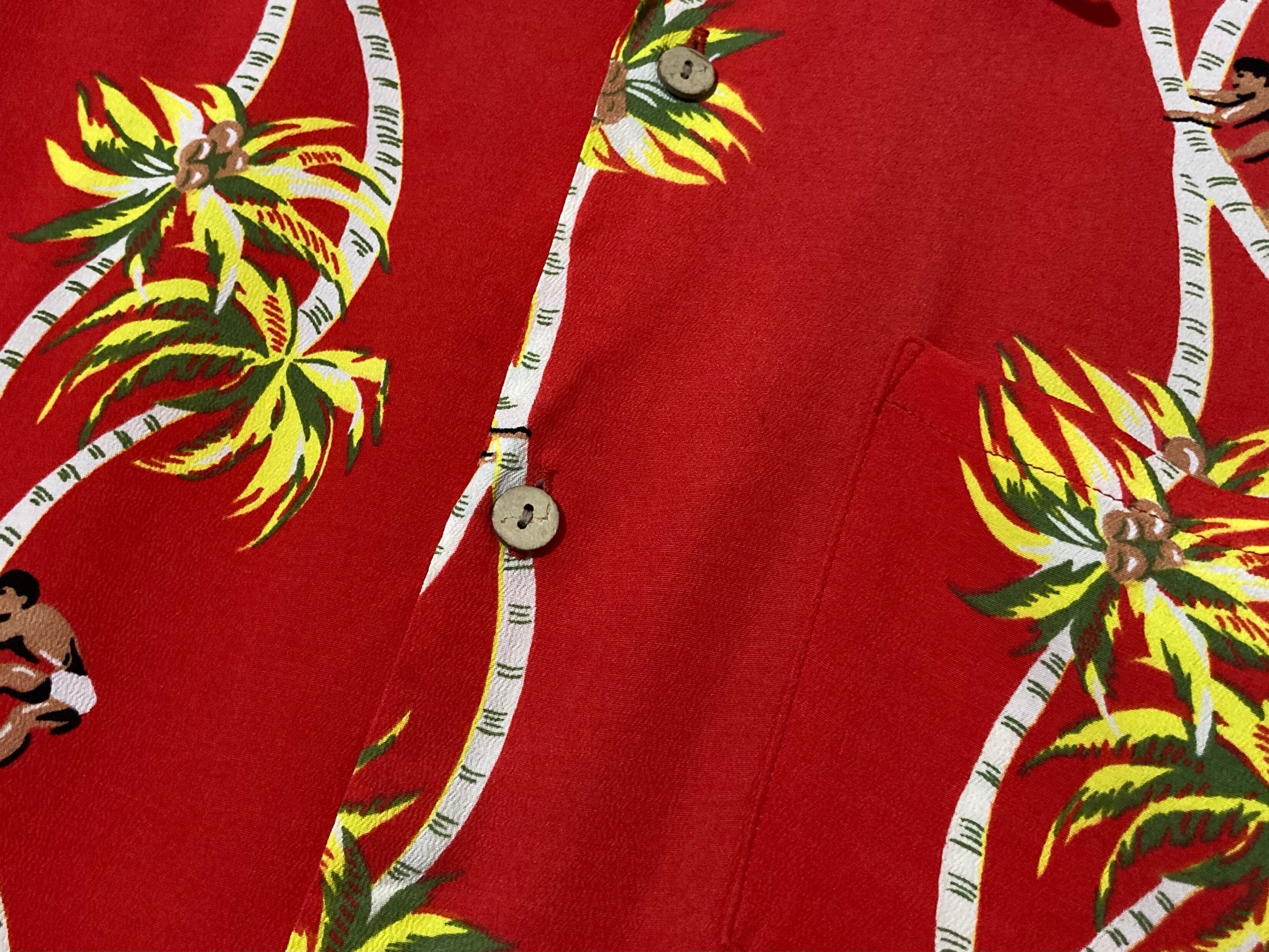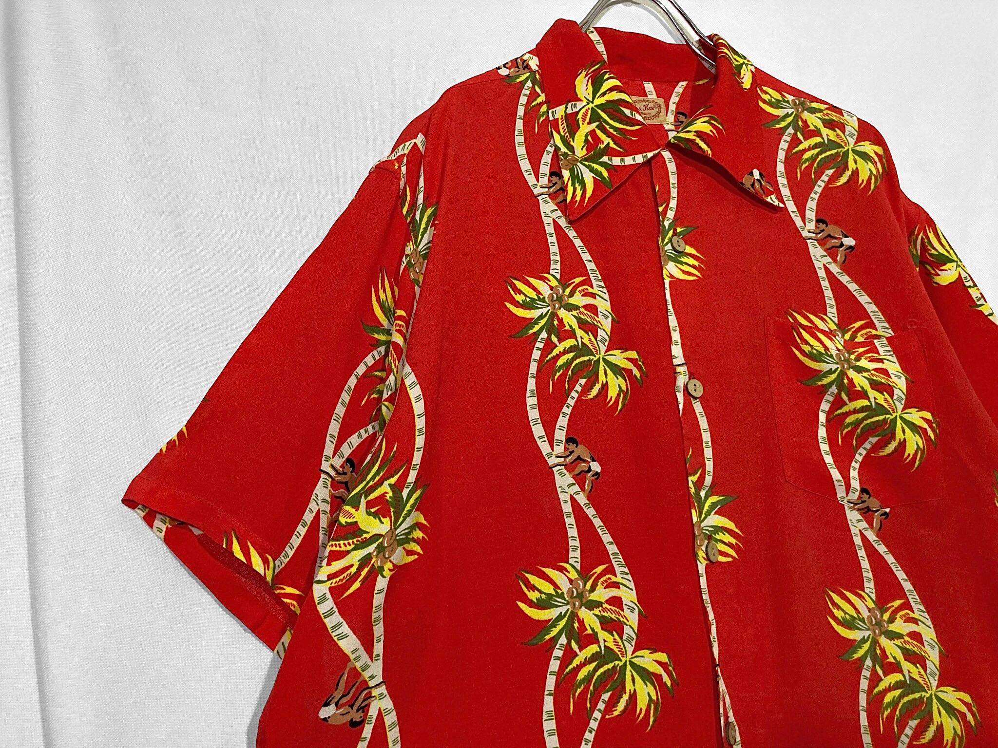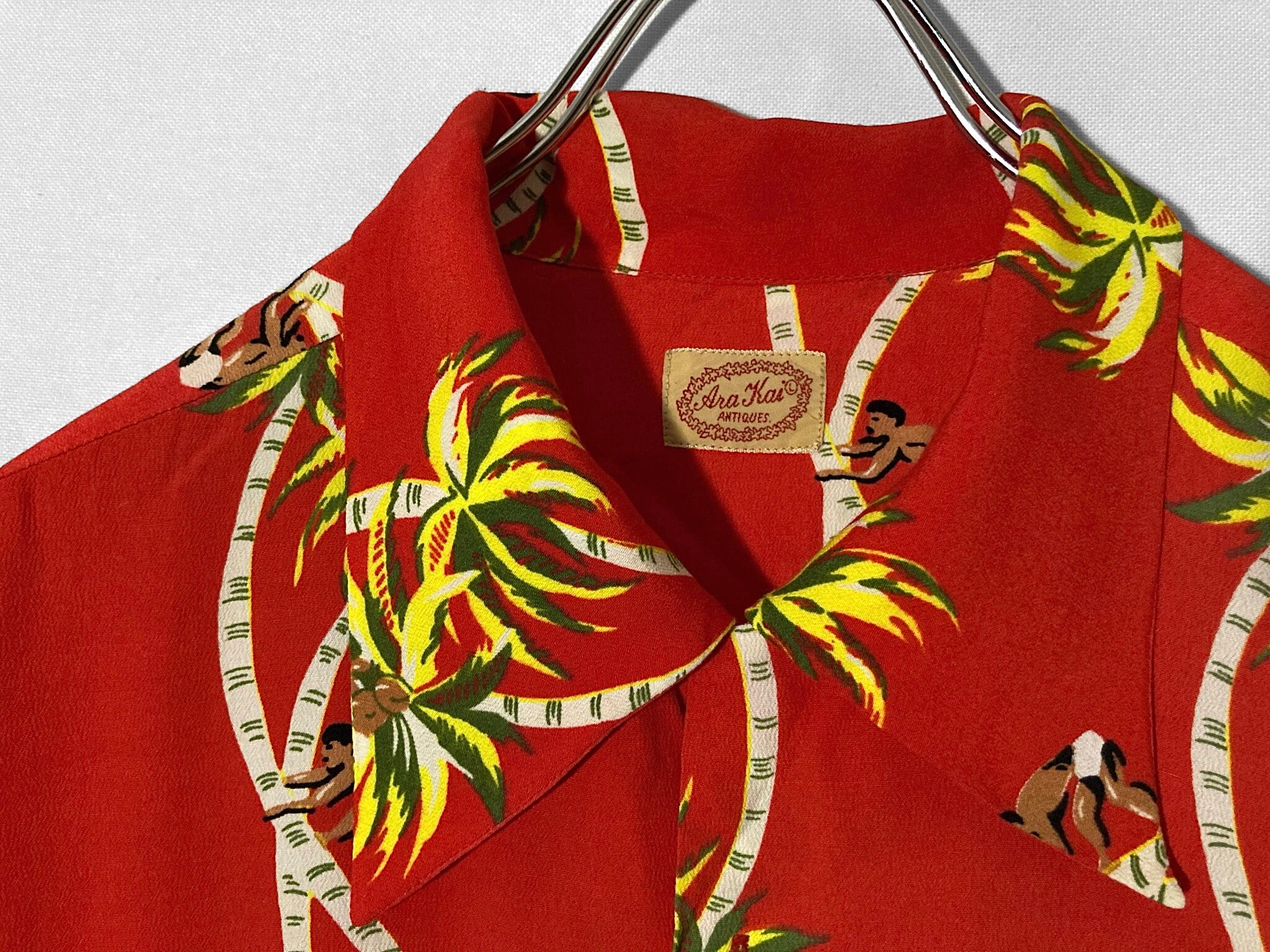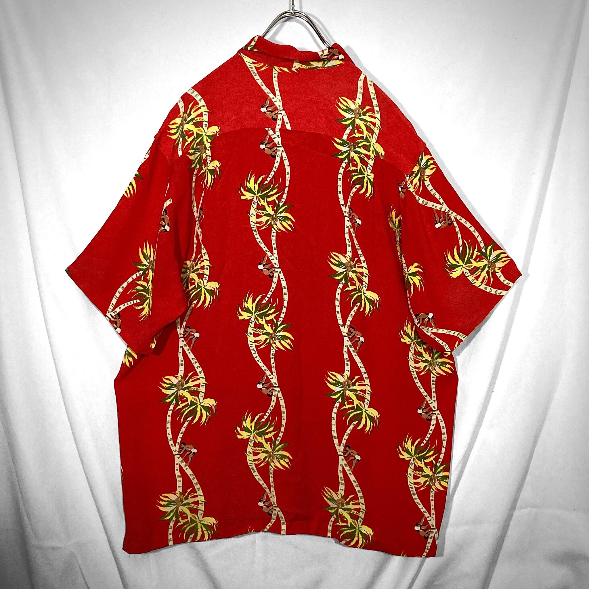 開襟 80-90s Palm-Tree All-over pattern design Open-collar Half-sleeves shirt