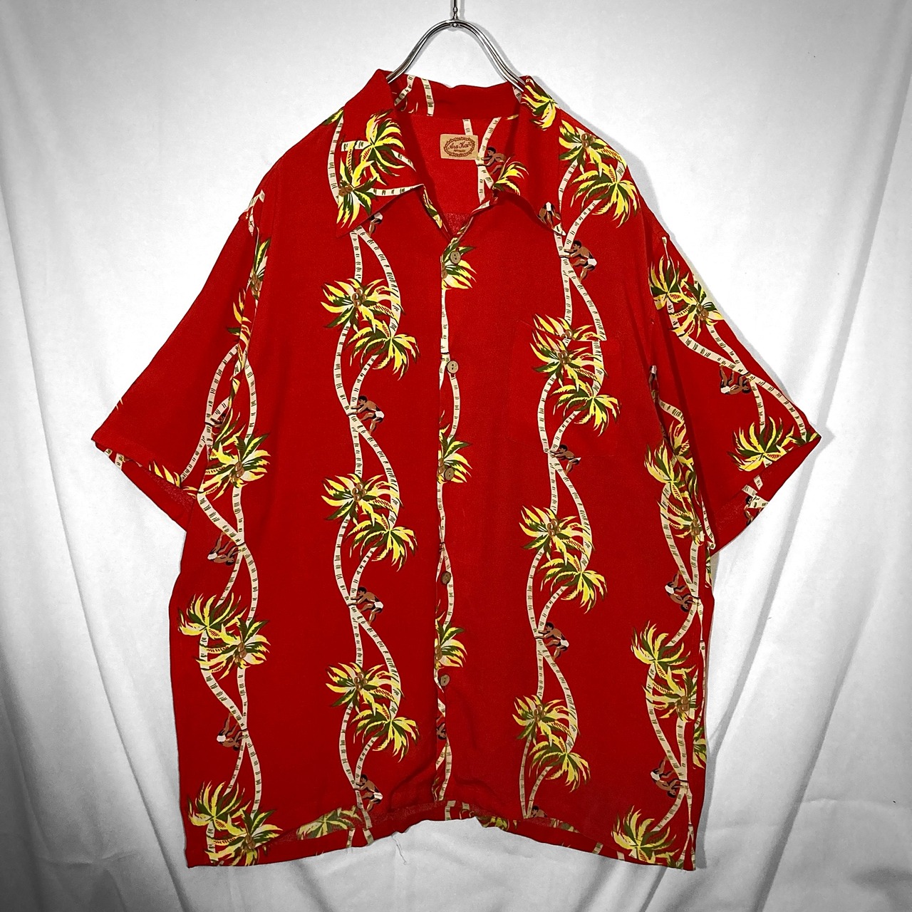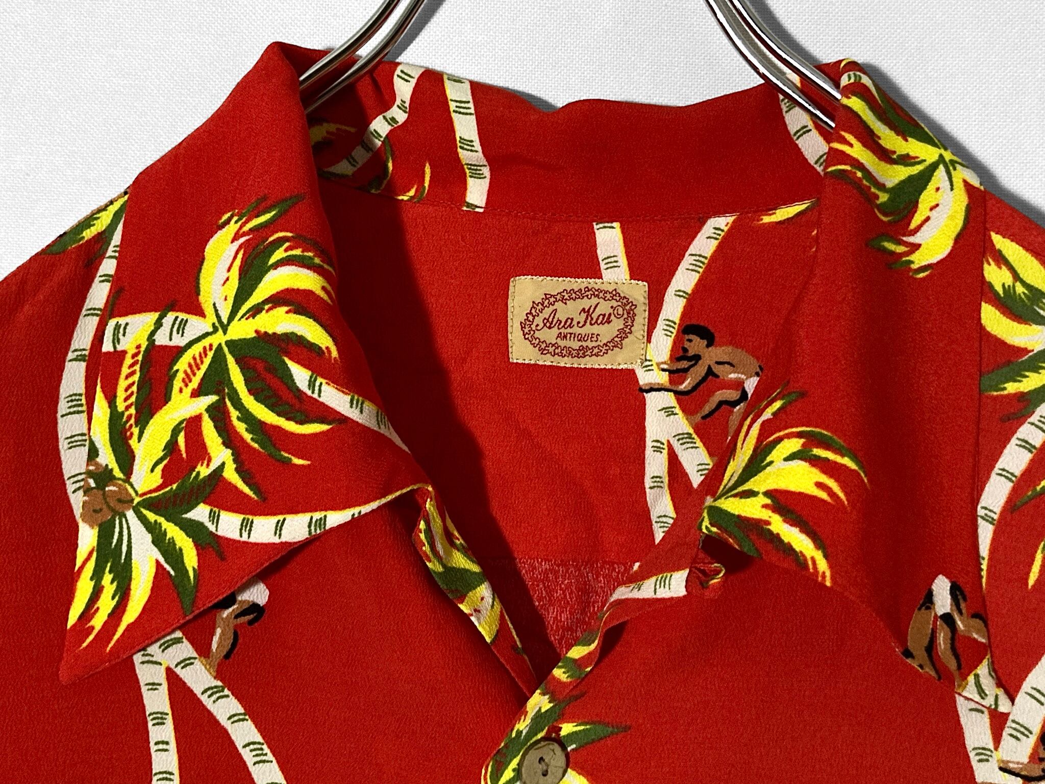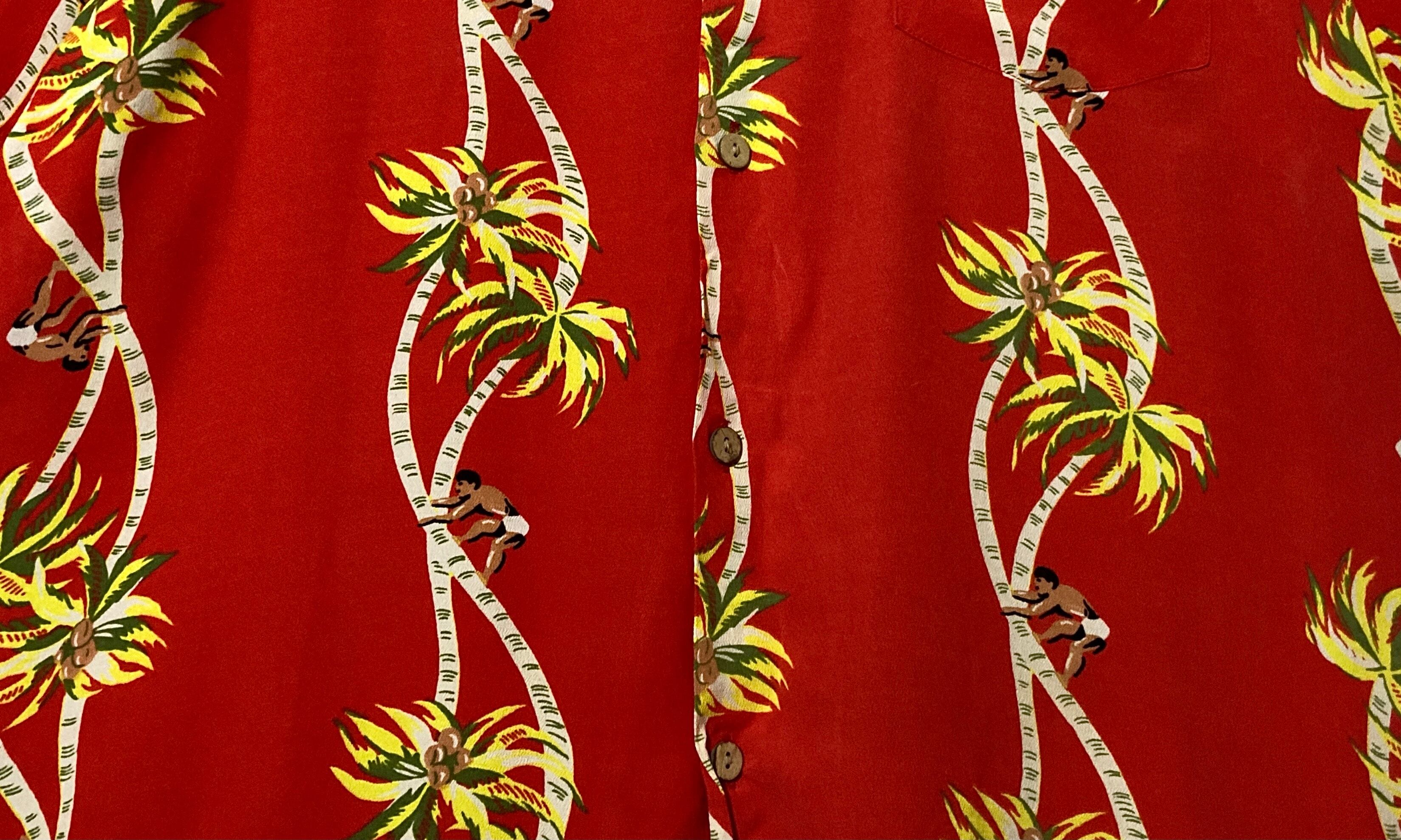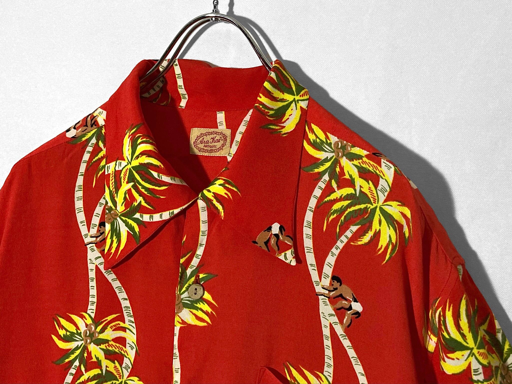 開襟 80-90s Palm-Tree All-over pattern design Open-collar Half-sleeves shirt