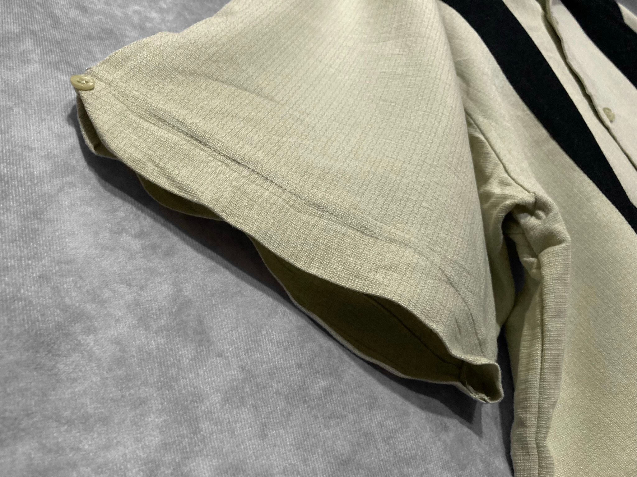 生成りカラーと黒のコントラストが印象的な開襟シャツの入荷です。