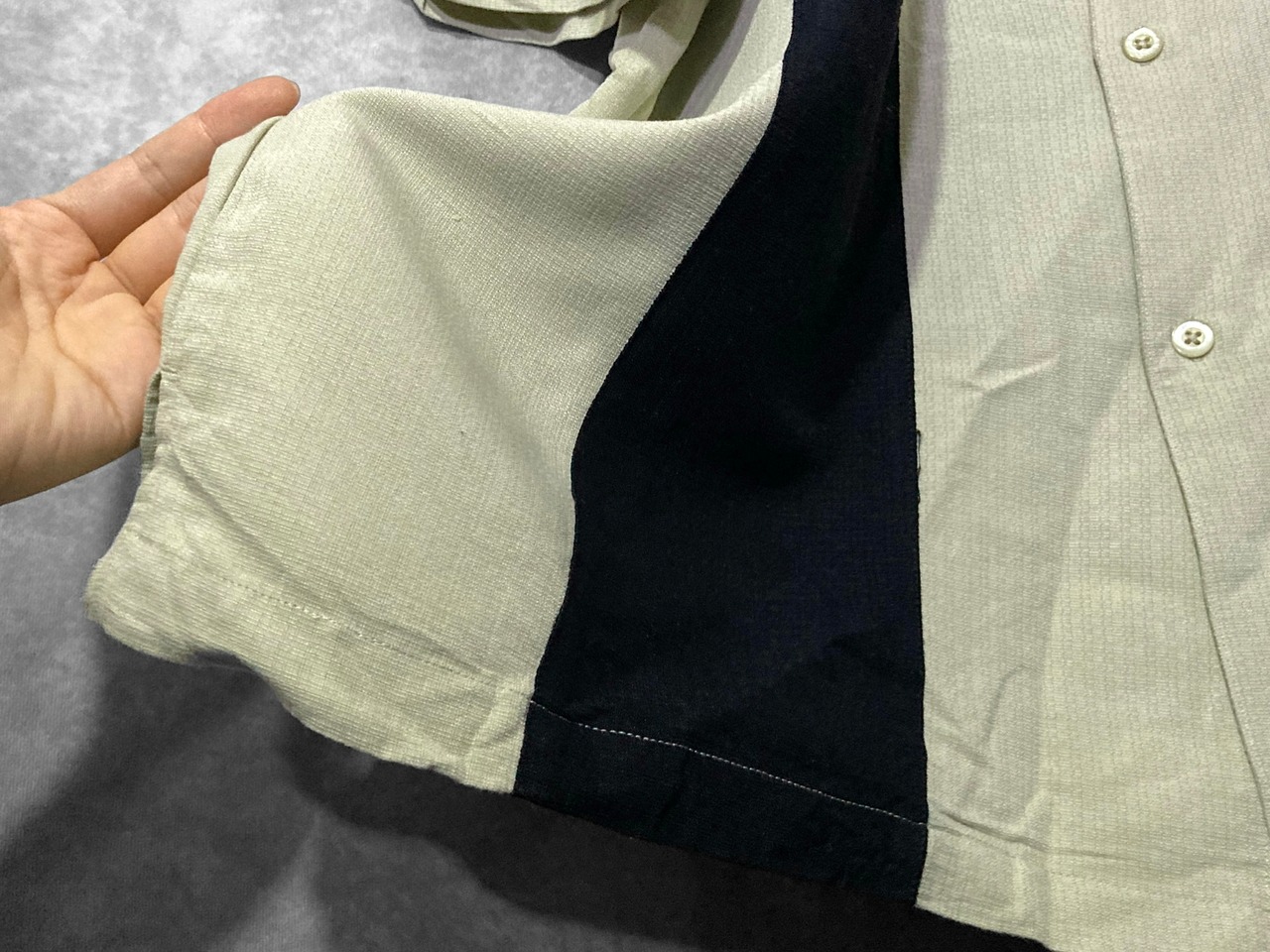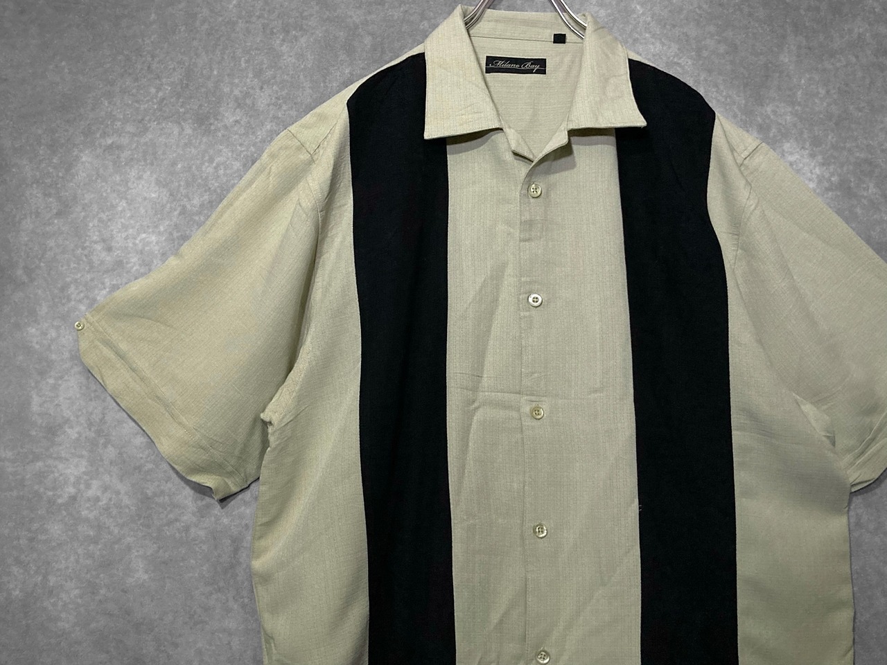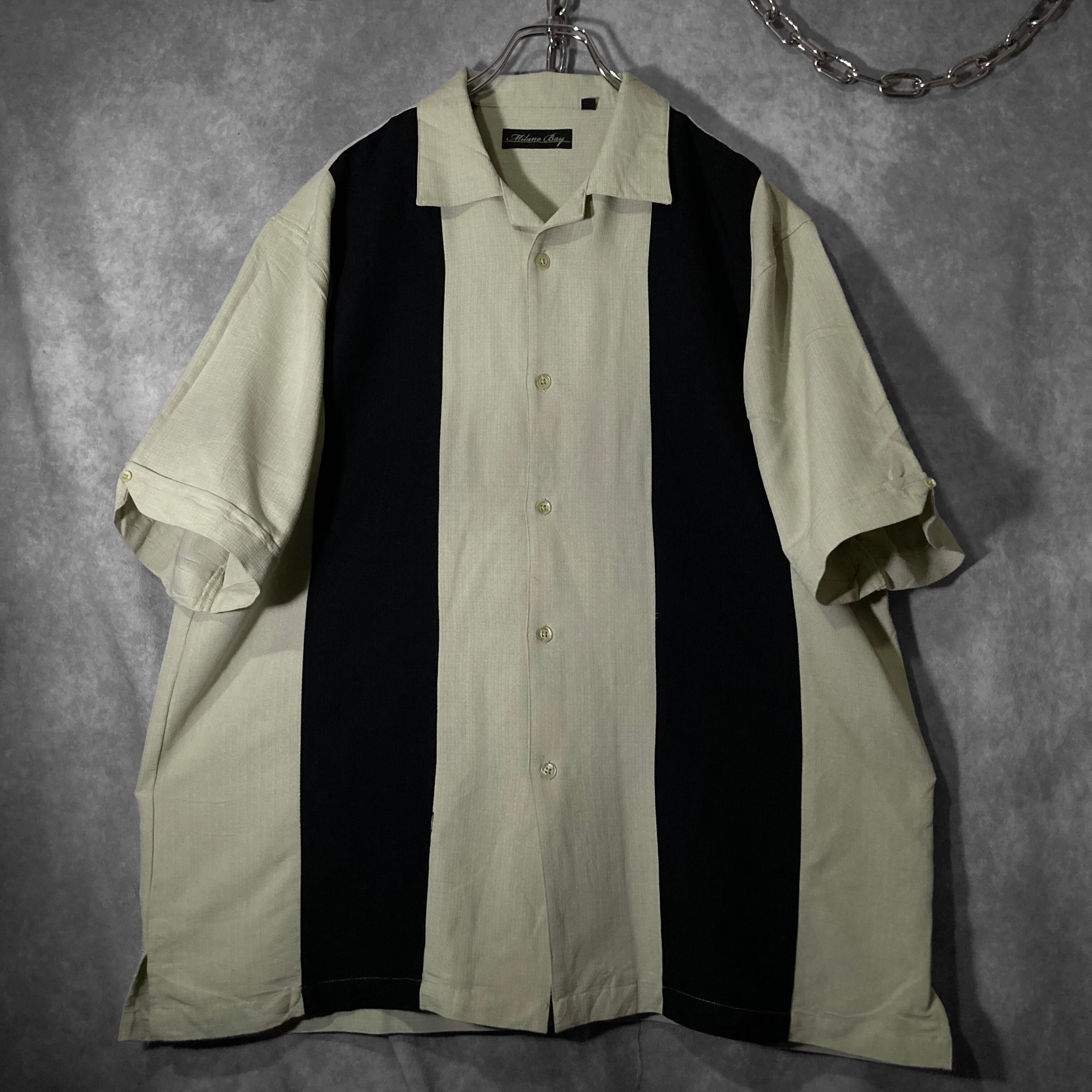 XXL 開襟 Kinari × Black color Switching design Open-Collar S/S shirt