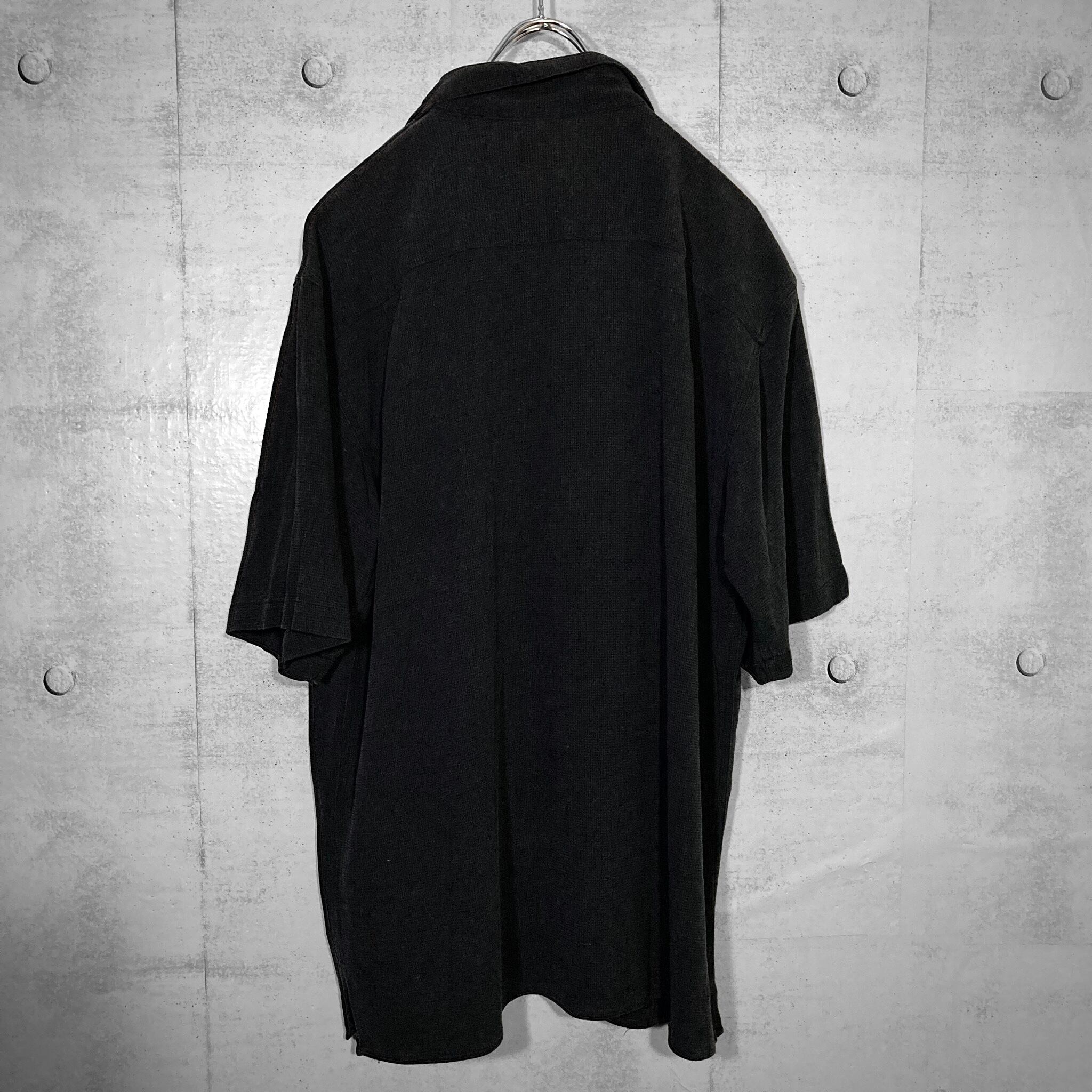 開襟 Black colored Texture design 2way Half-sleeves shirt