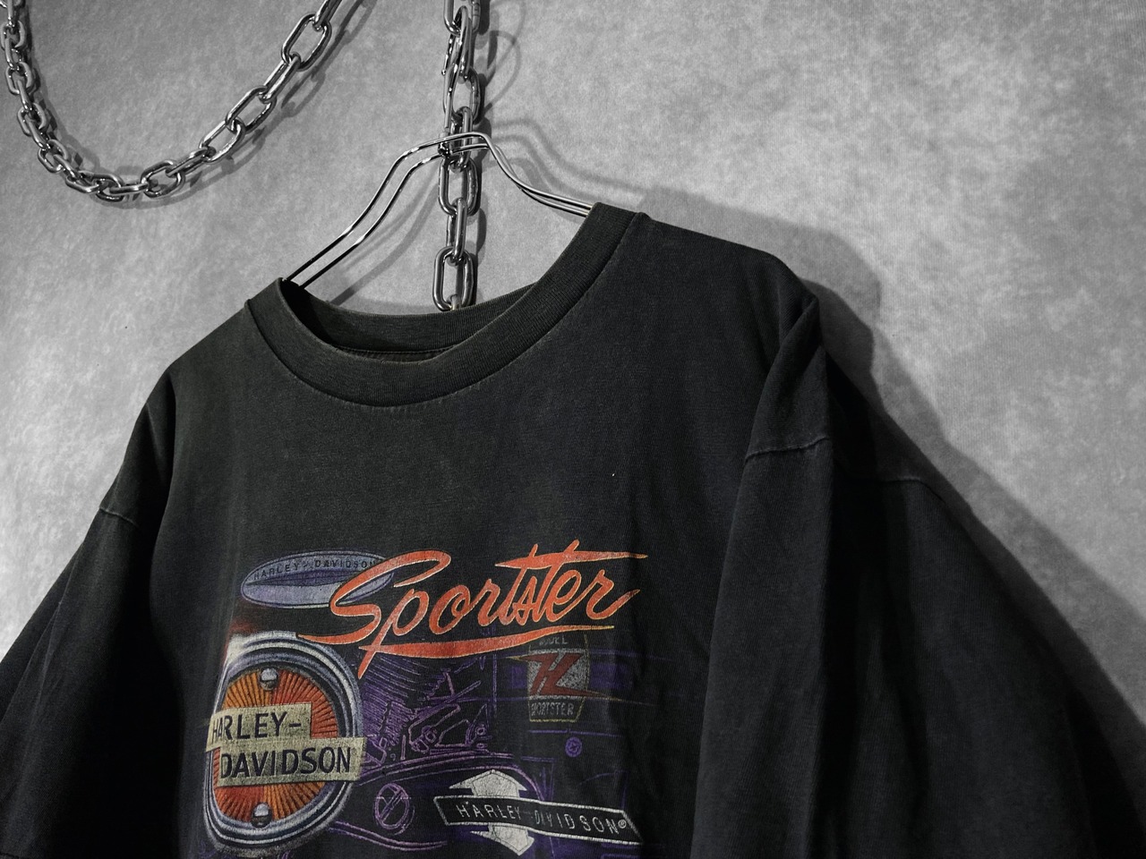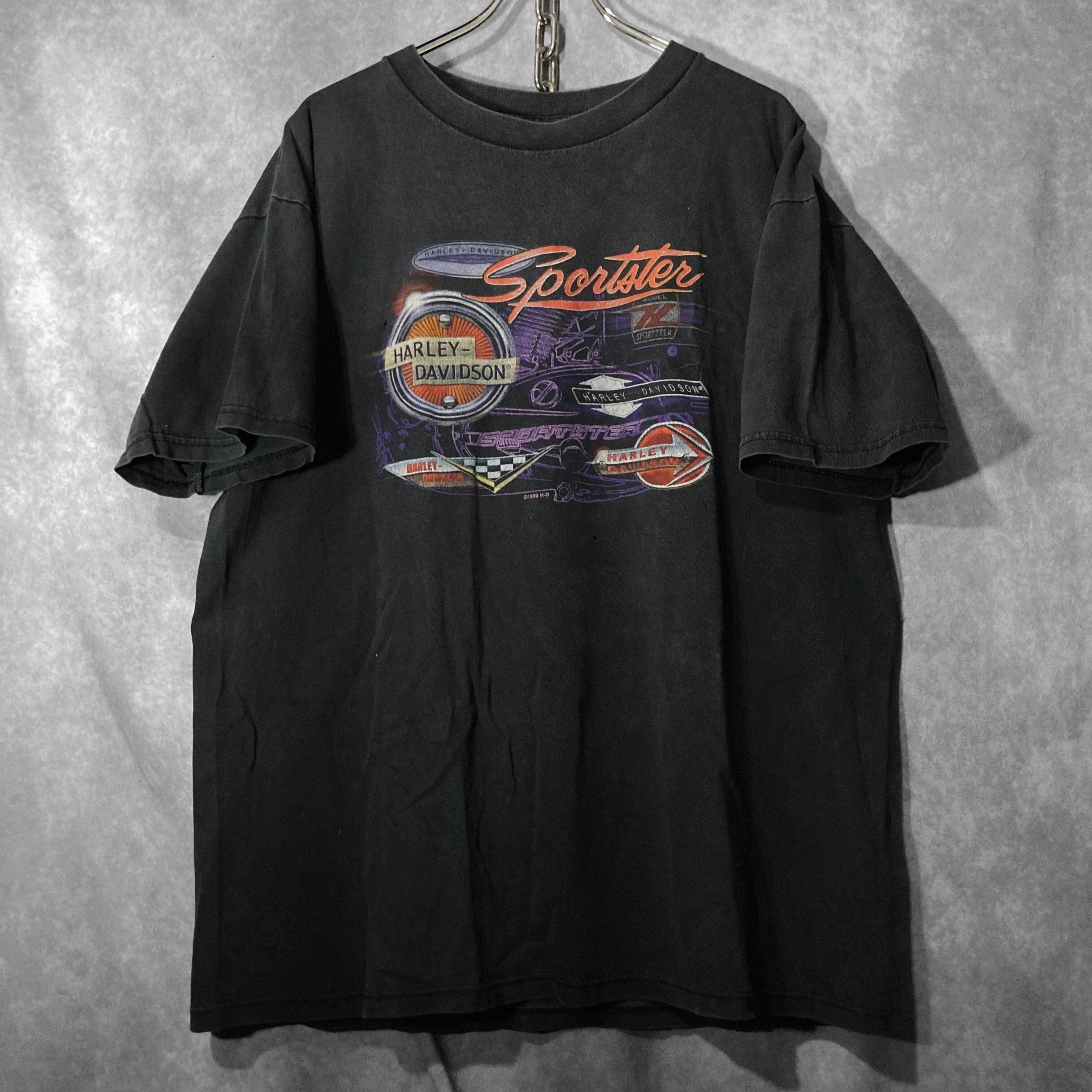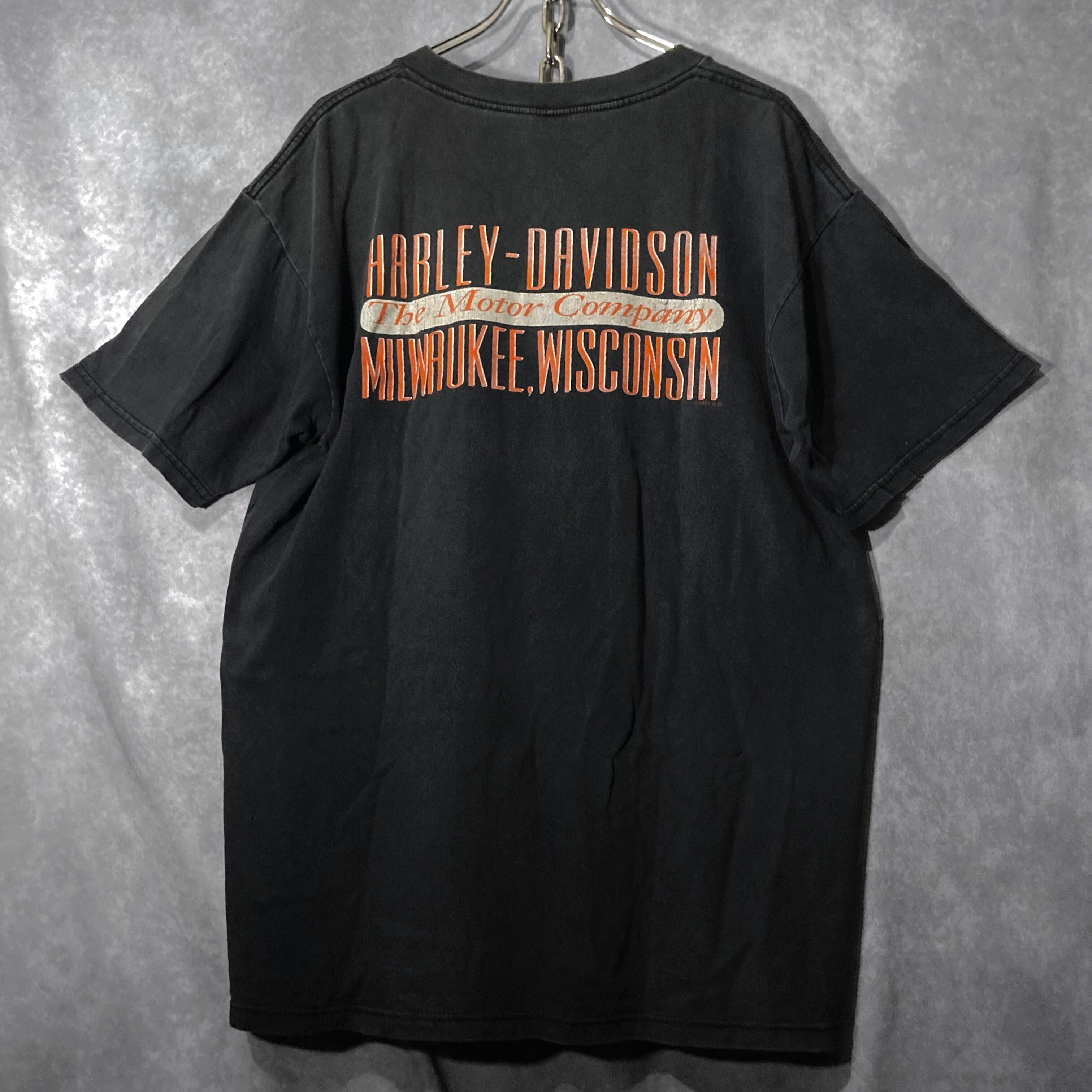 Harley-Davidson 1990s XL size, print design fade Half-sleeves Tee