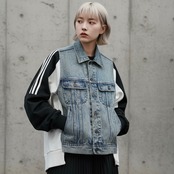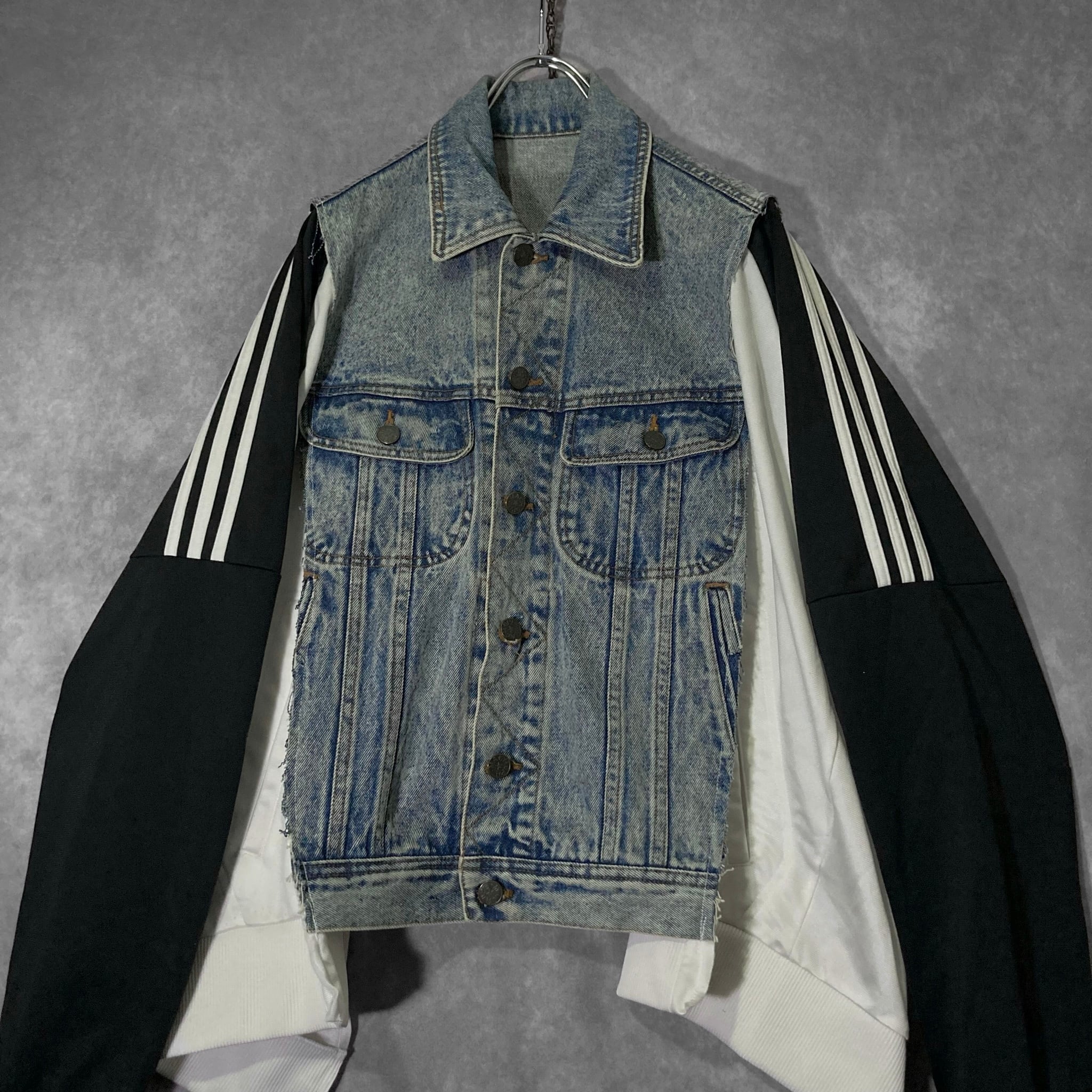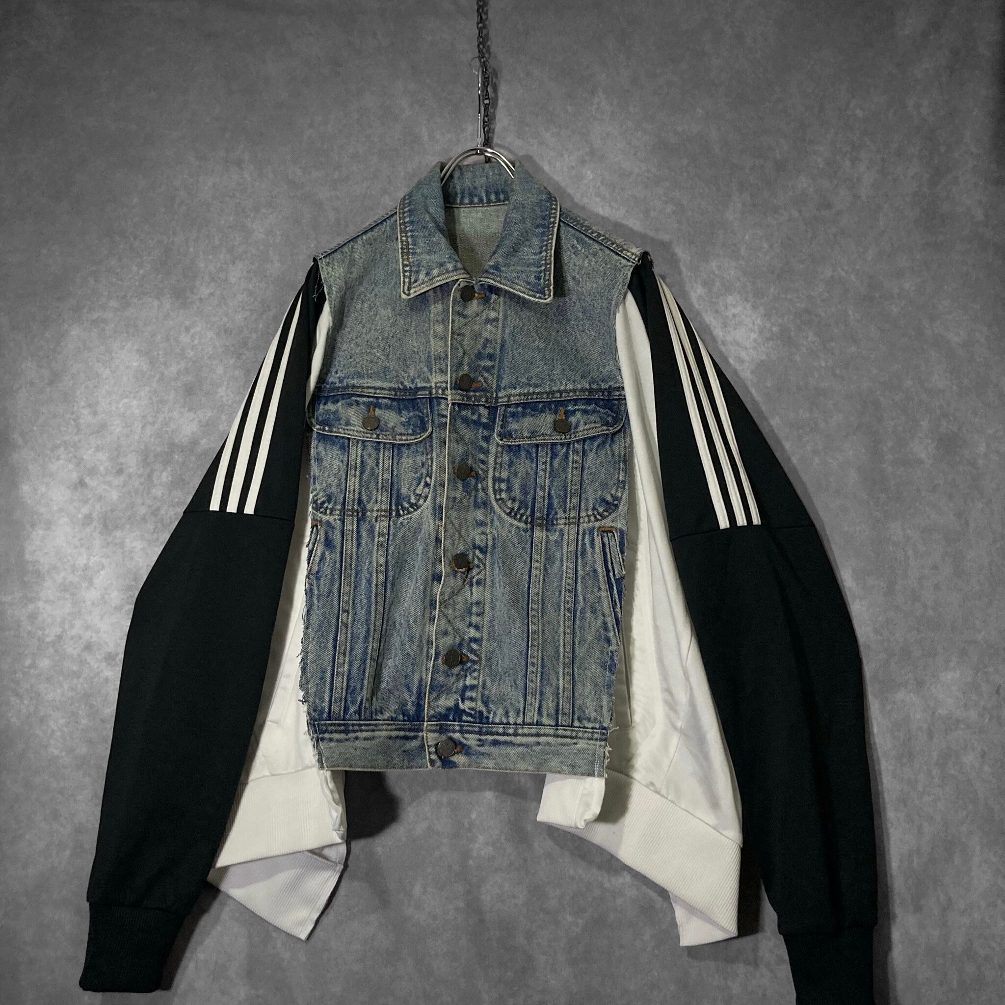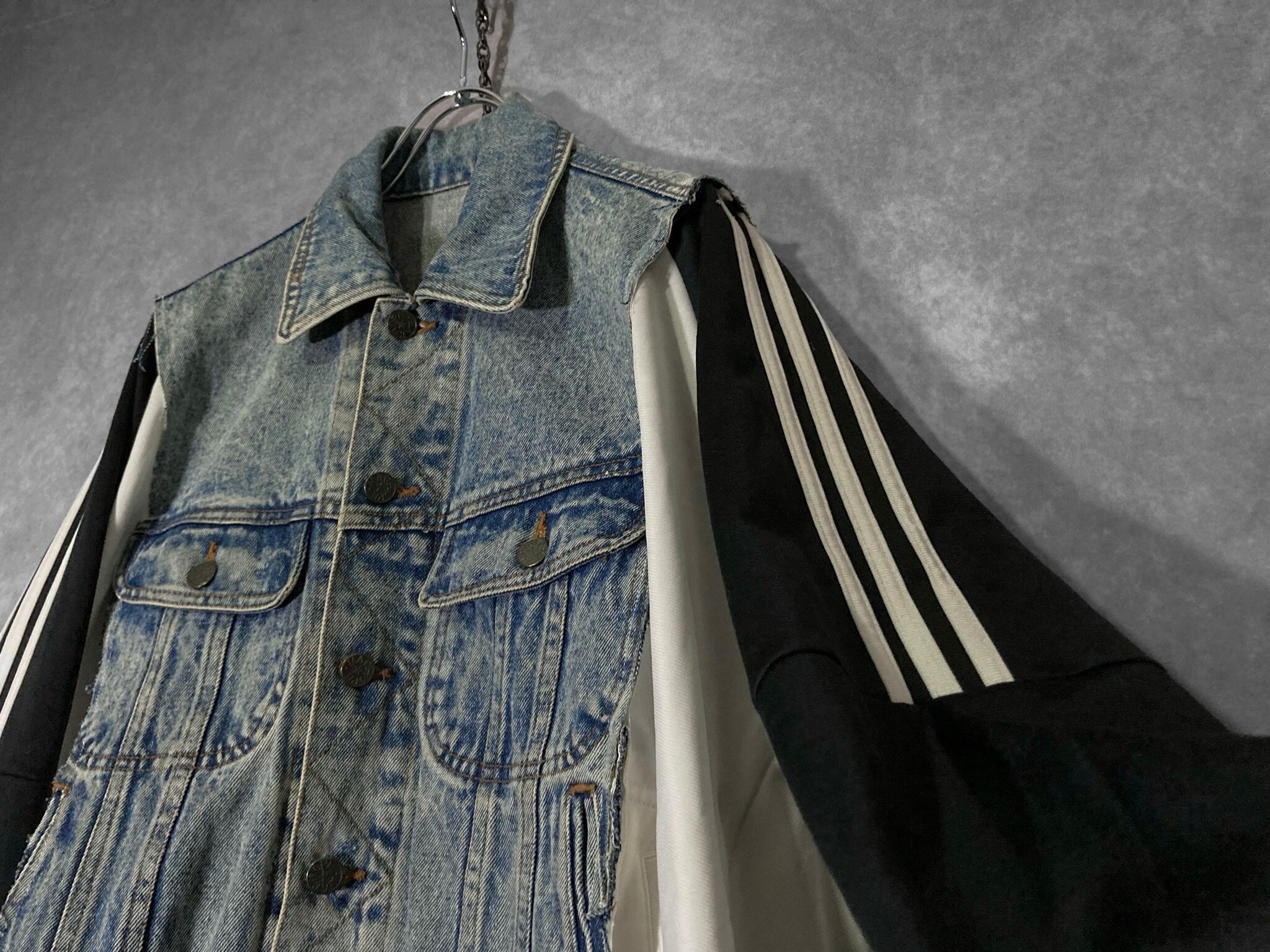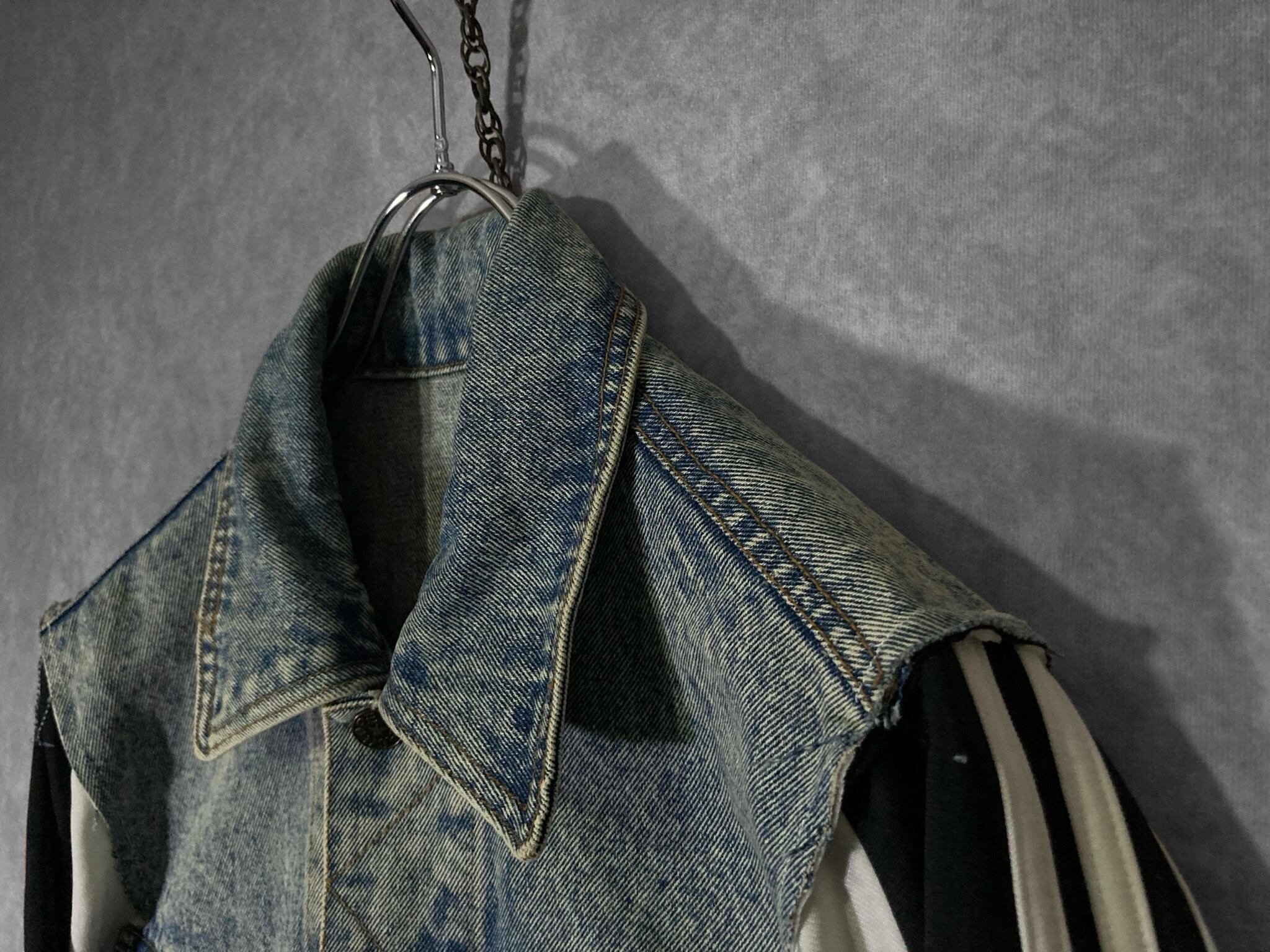 再構築 Three stripe line Track jersey × Denim docking design jacket