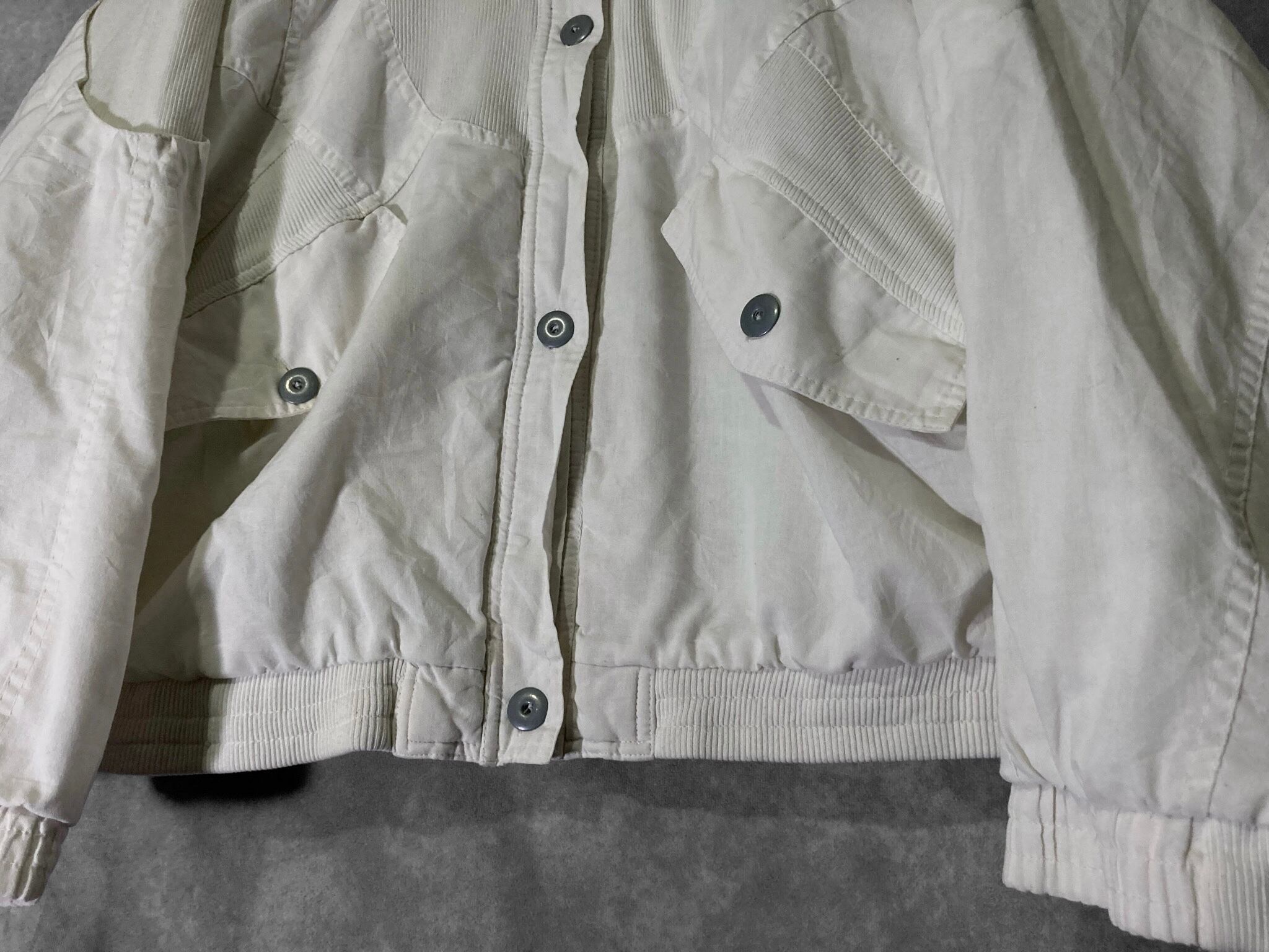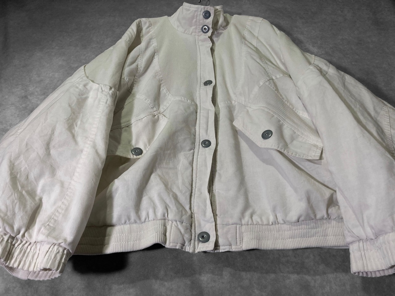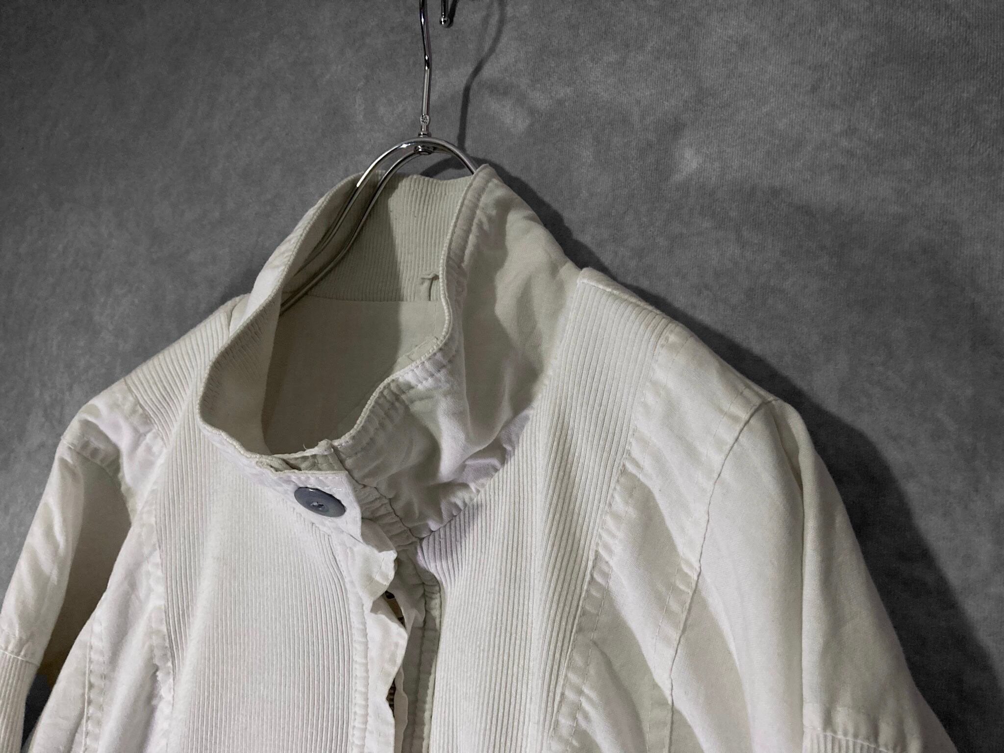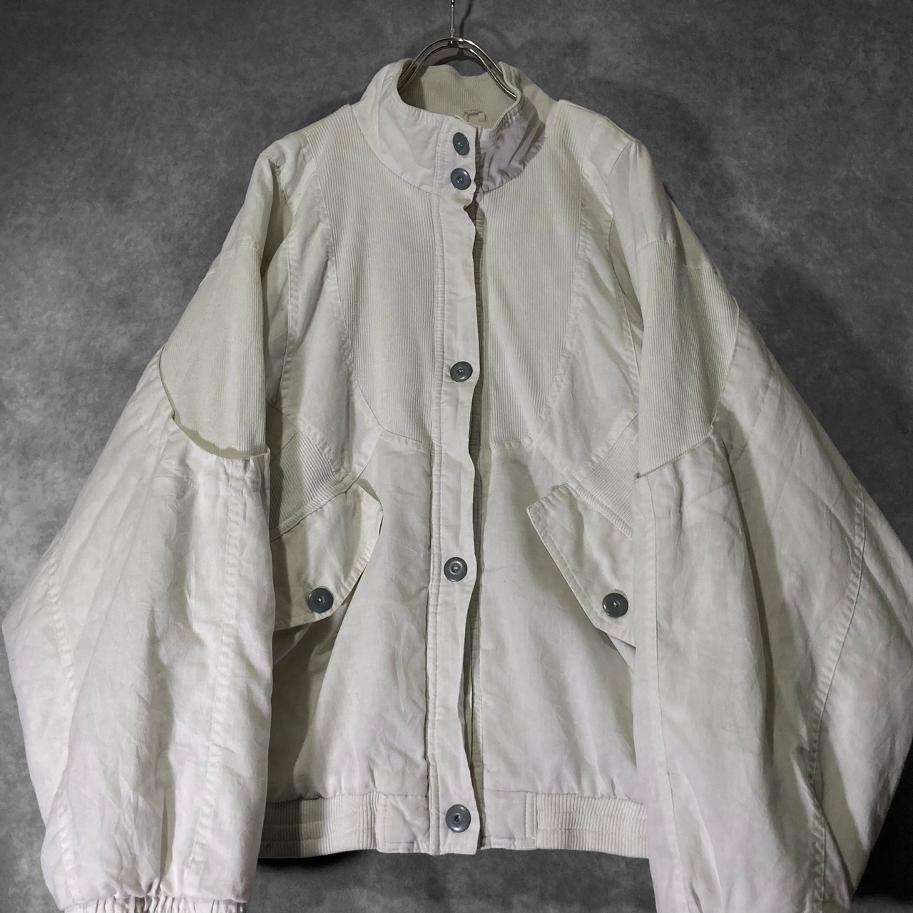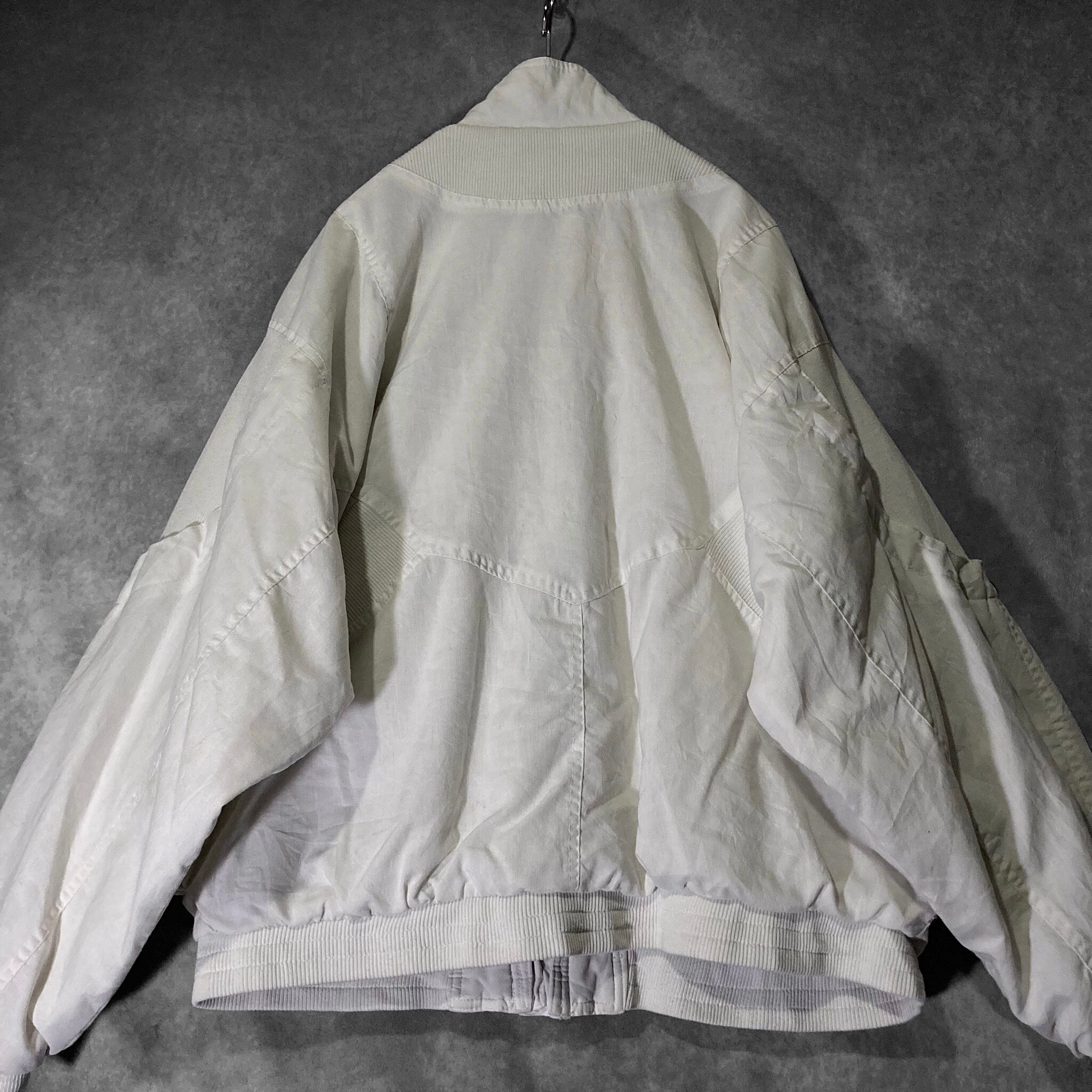 Double gaze and Technical knit fabric white colored switching vintage full-zip blouson