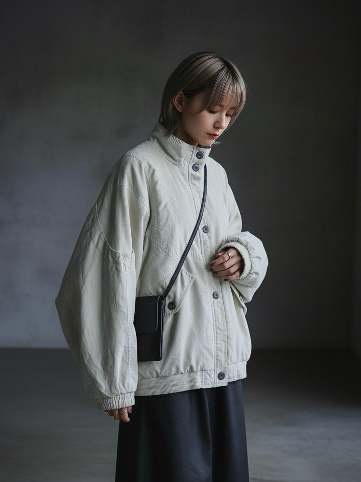 ダブルガーゼ × ニット切替ブルゾン