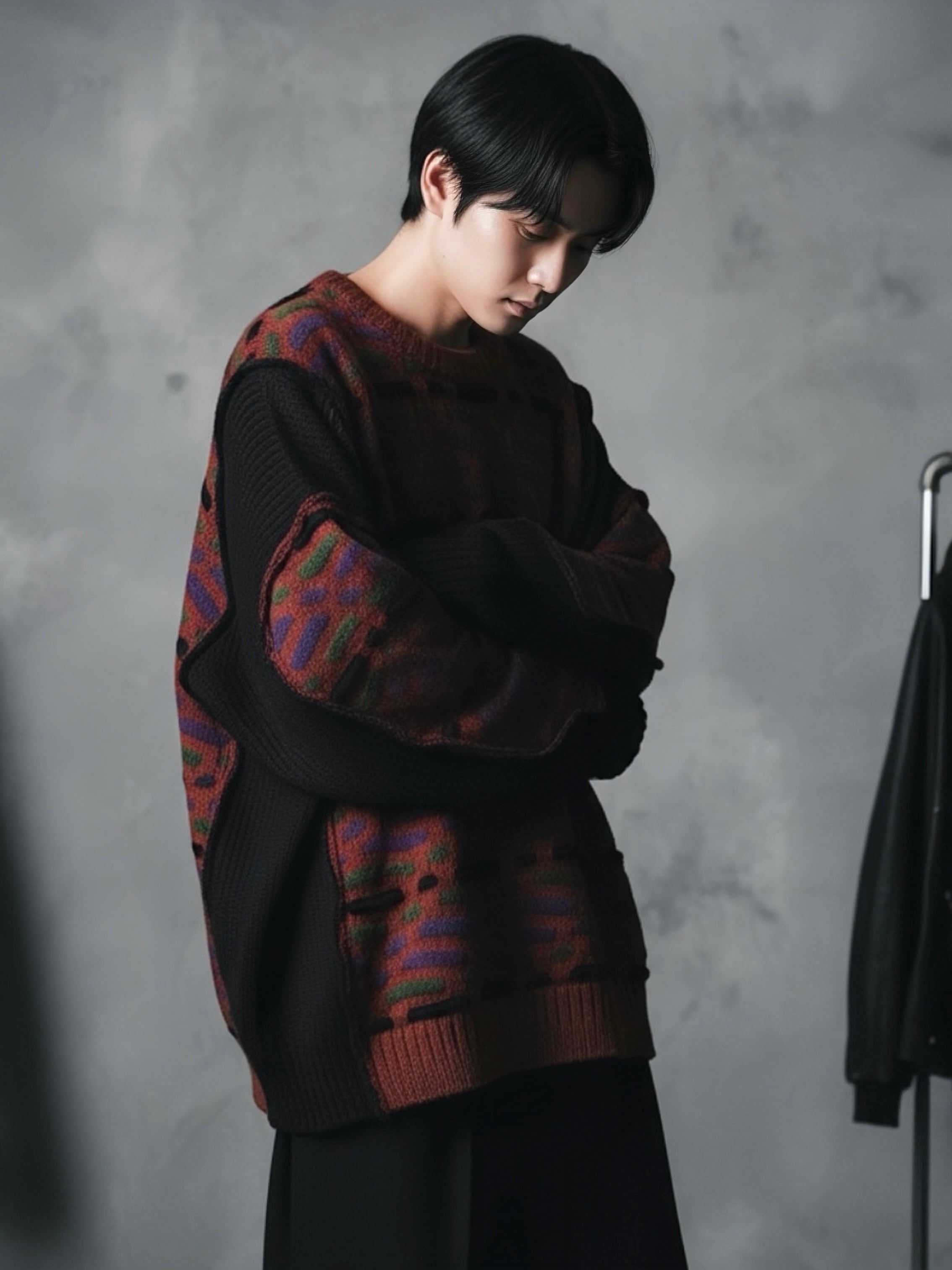 " 再構築 " Rebuilding, draping × Dolman sleeve Loose silhouette design knit sweater