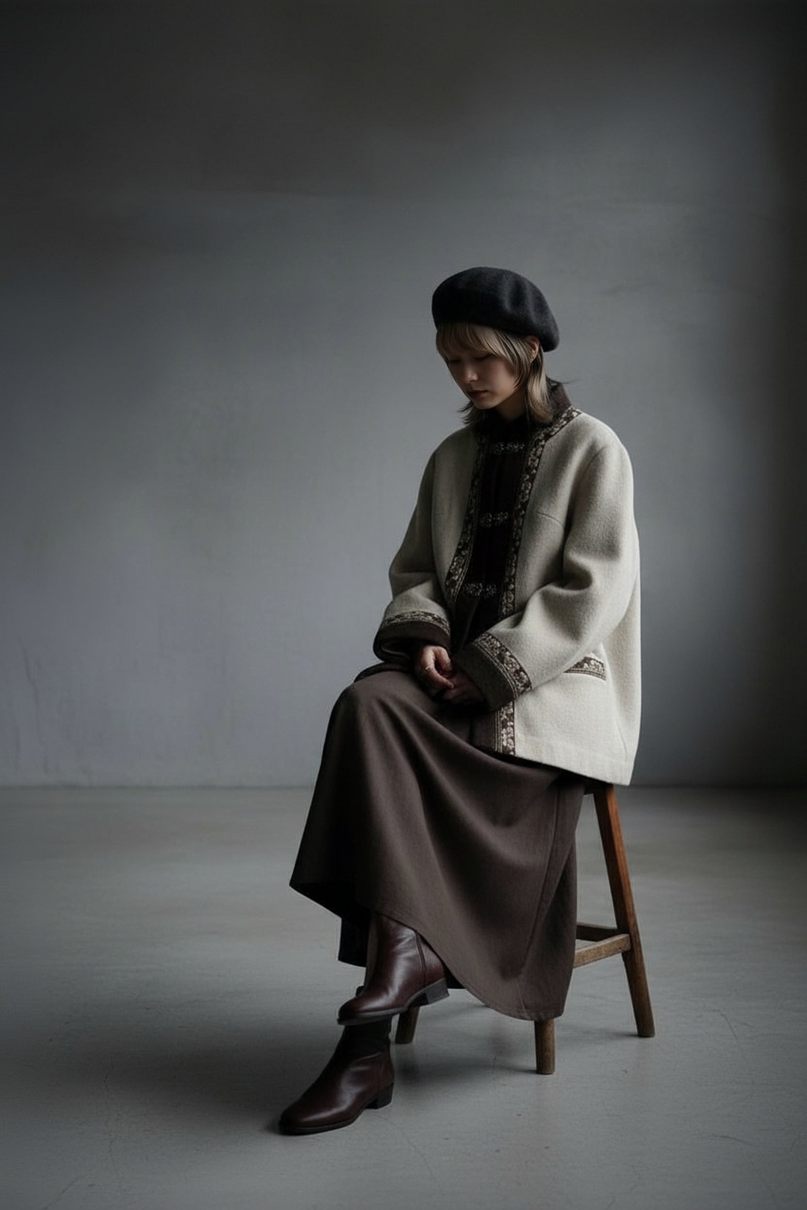 色モノのベレー帽やレザー小物とも相性がよく、ヴィンテージとの組み合わせによって個性的なスタイリングが楽しめます。
