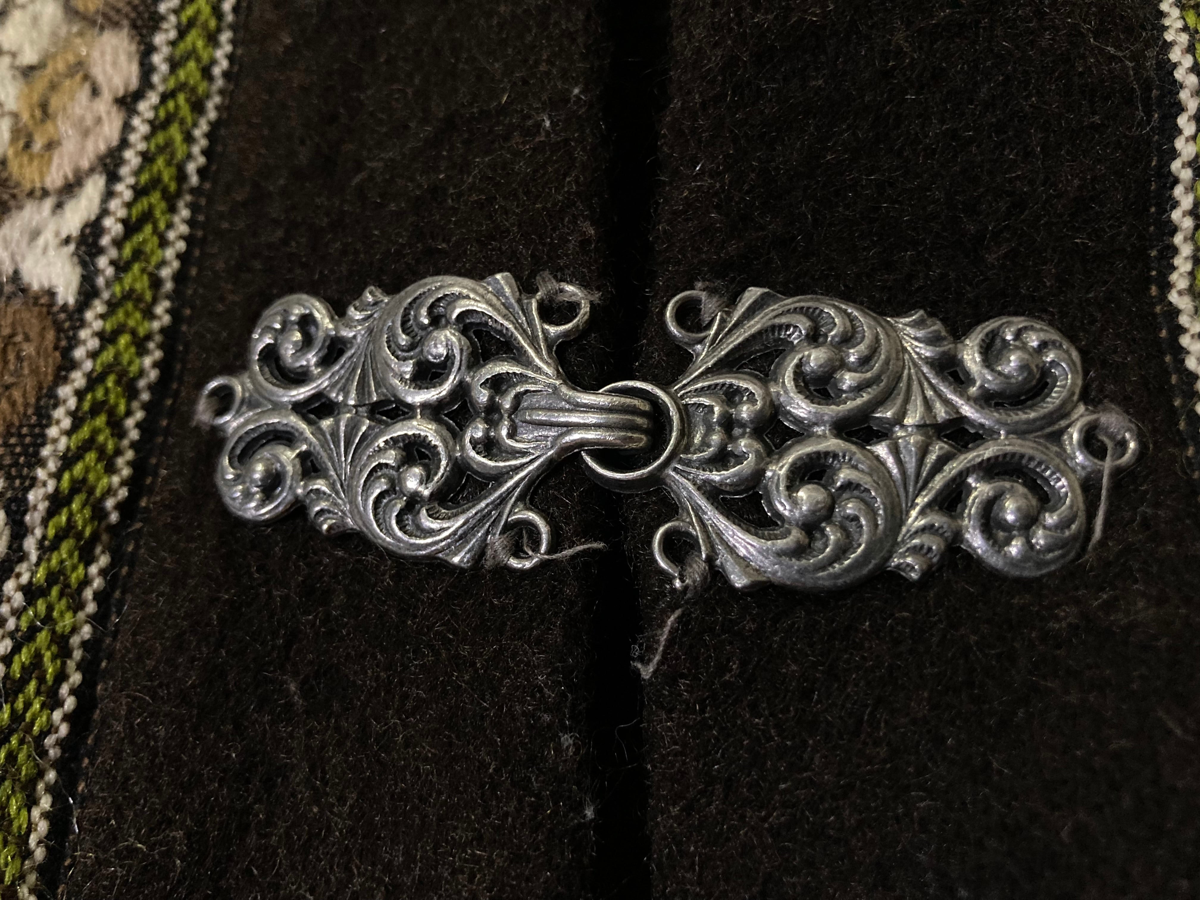 ダッフルコートのトグルボタンを思わせる細部にまで作り込まれたフロントのシルバーのアンティークボタンが可愛らしさの詰まった1着。