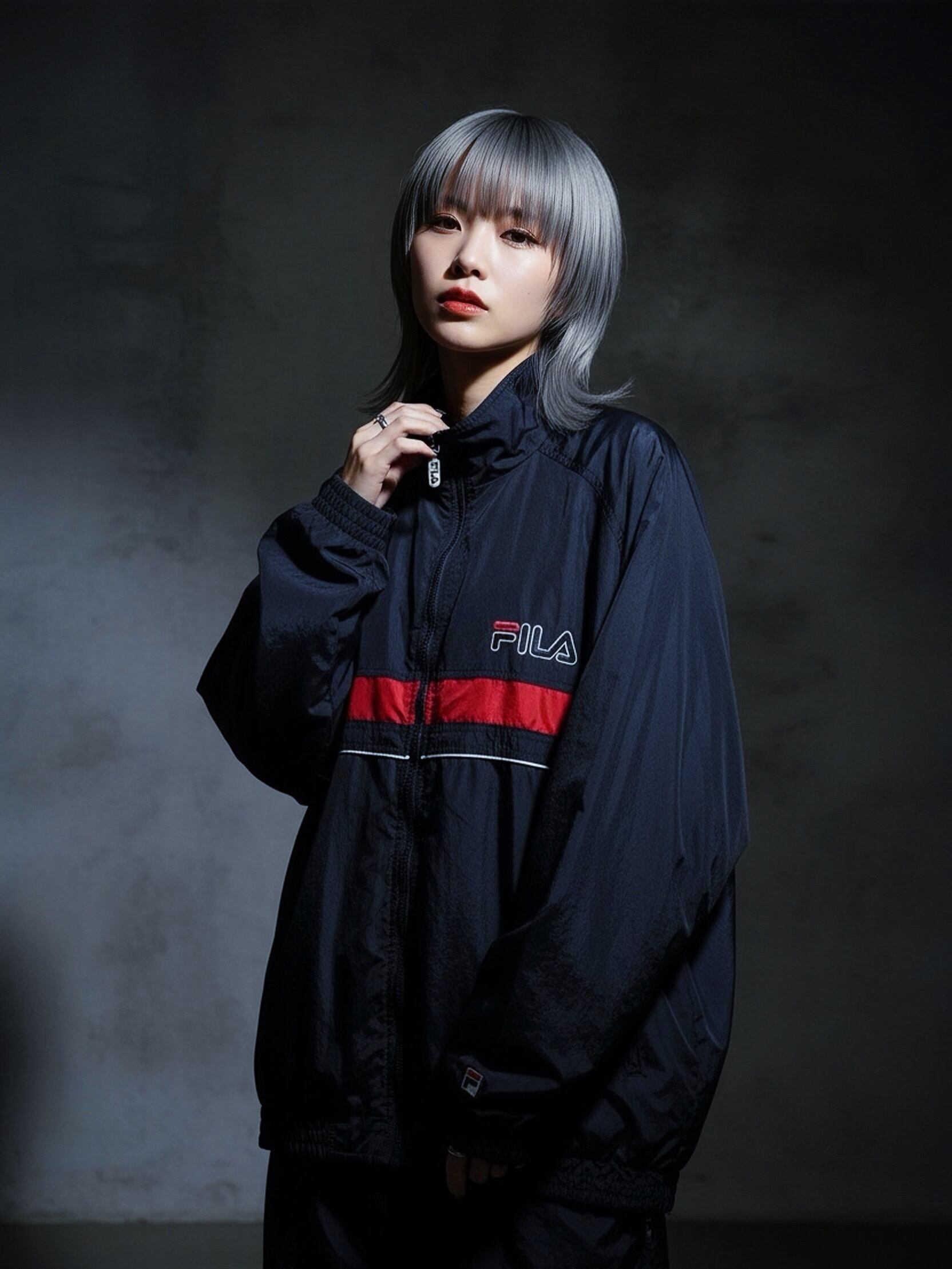 FILA 90's XXL Logo embroidery design Over-size Nylon jacket
