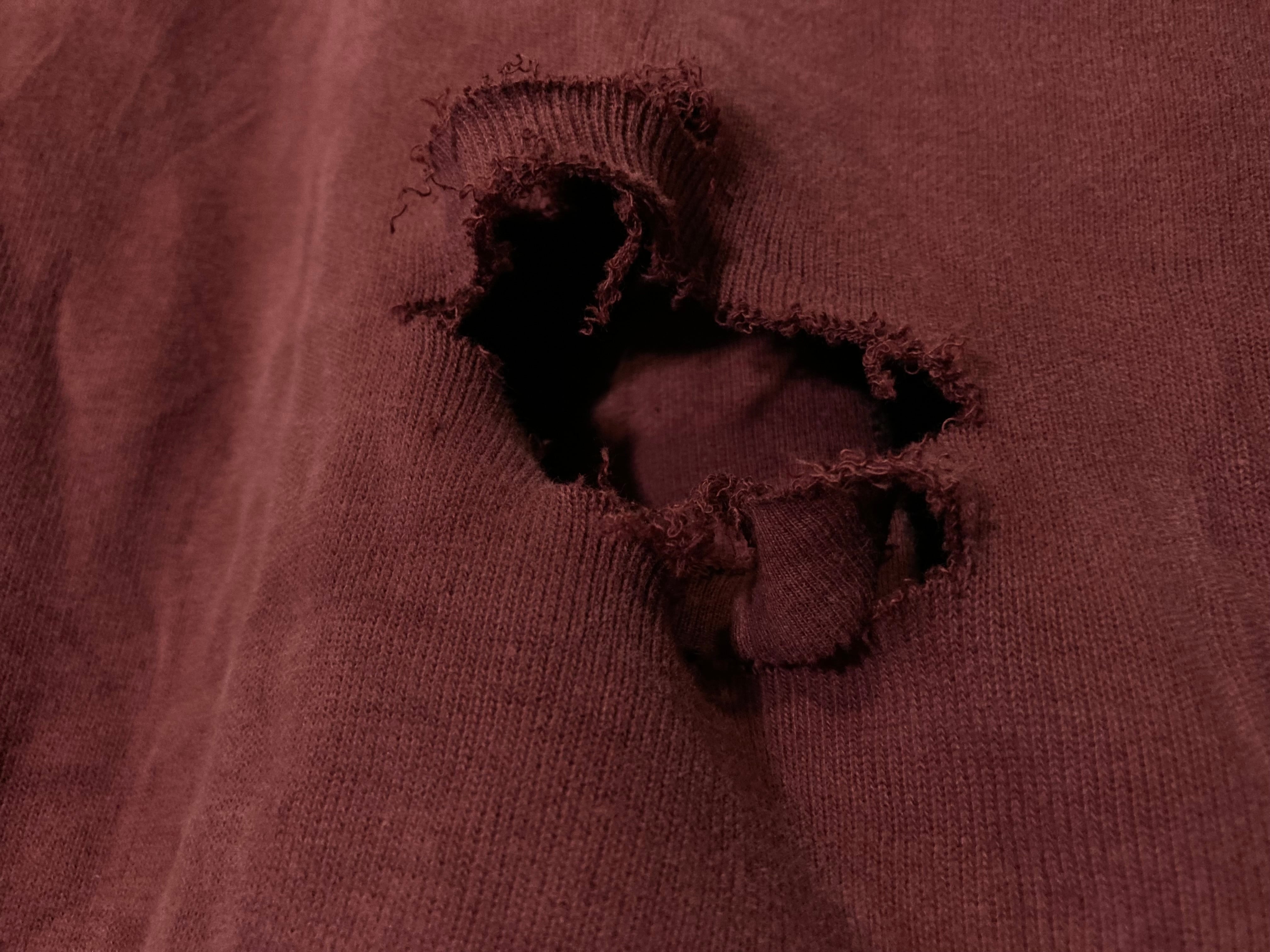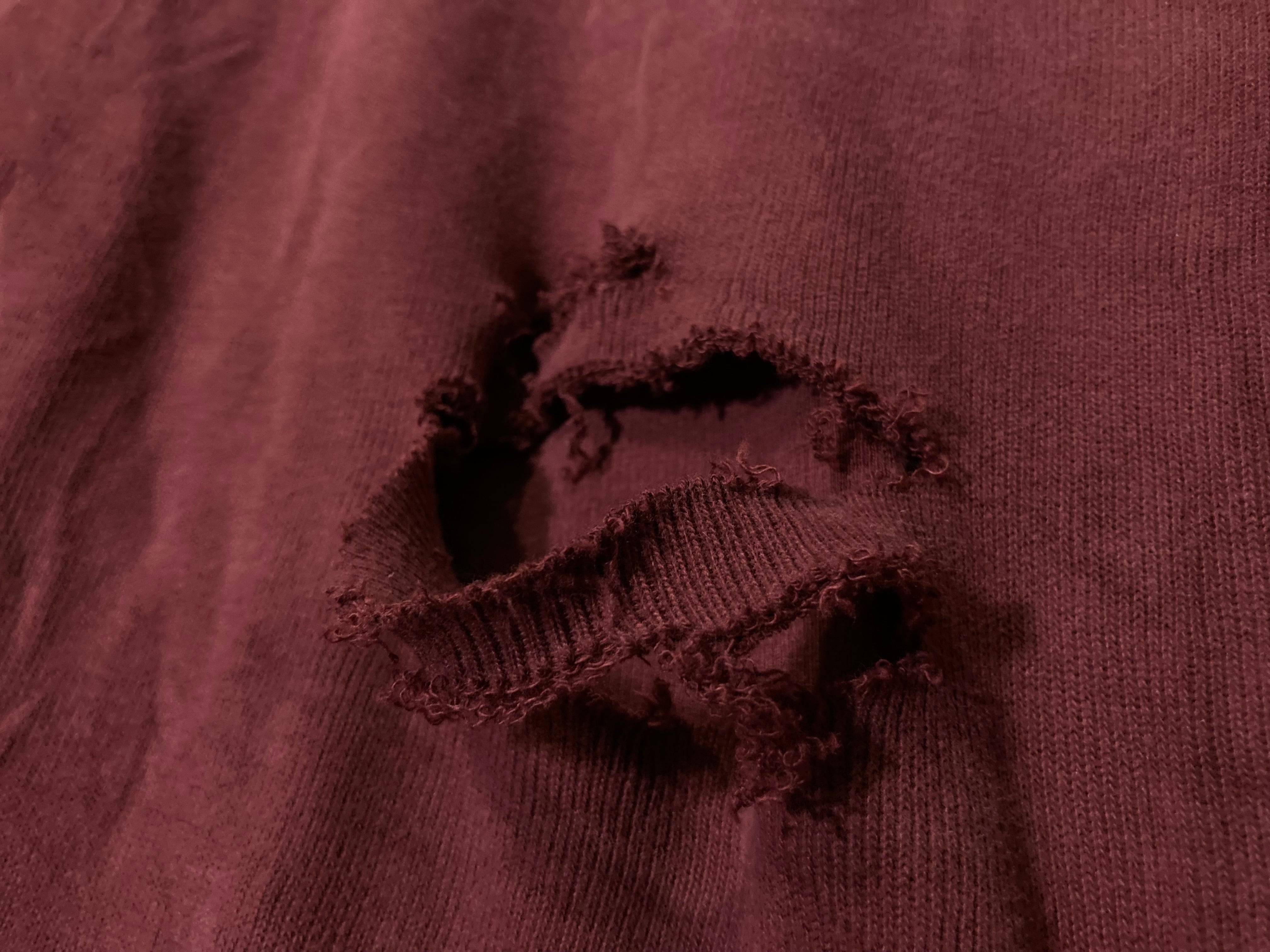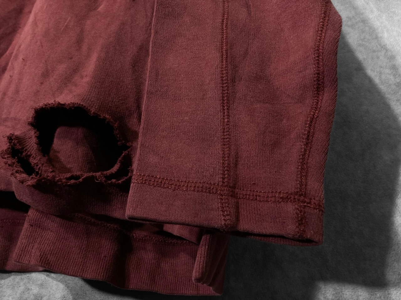 アームのバックから伸びたステッチライン、フロント・バックのダメージや裾に入ったスリット、USコットン特有の風合いなど現行品には出せない経年変化がディテールにこれでもかと詰め込まれています。