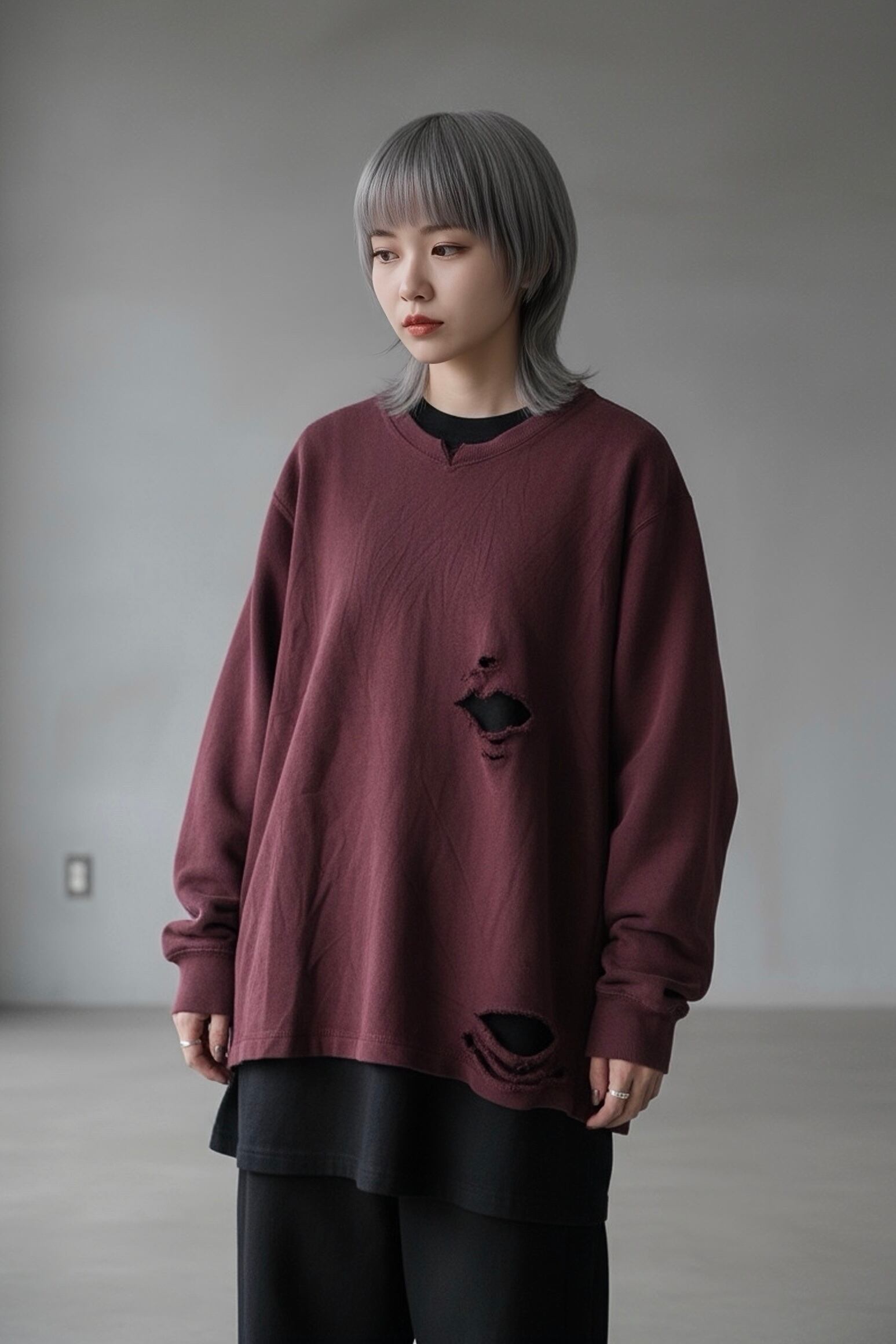 襤褸 Eddie Bouwer Crash damage " BORO " design Loose silhouette Sweat shirt