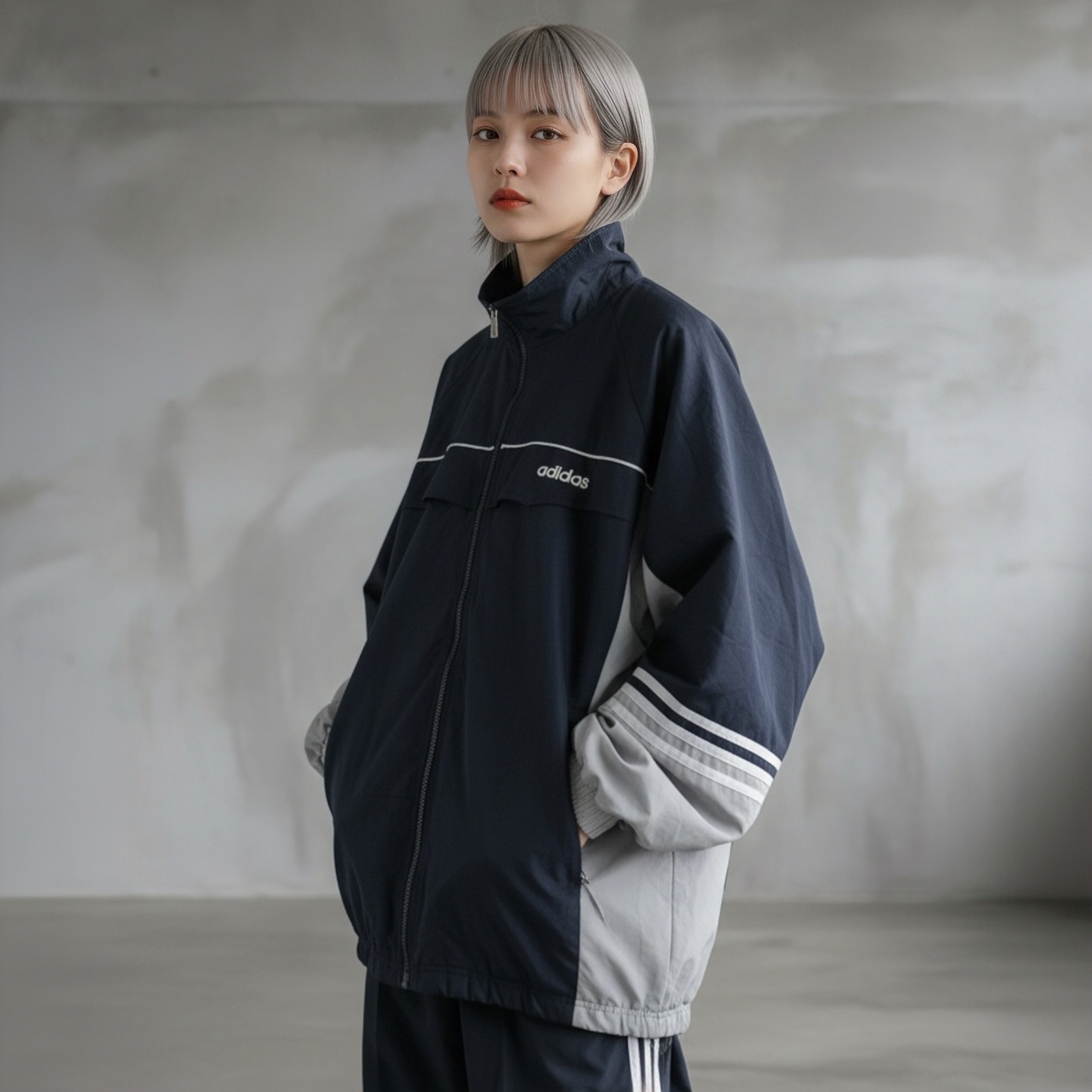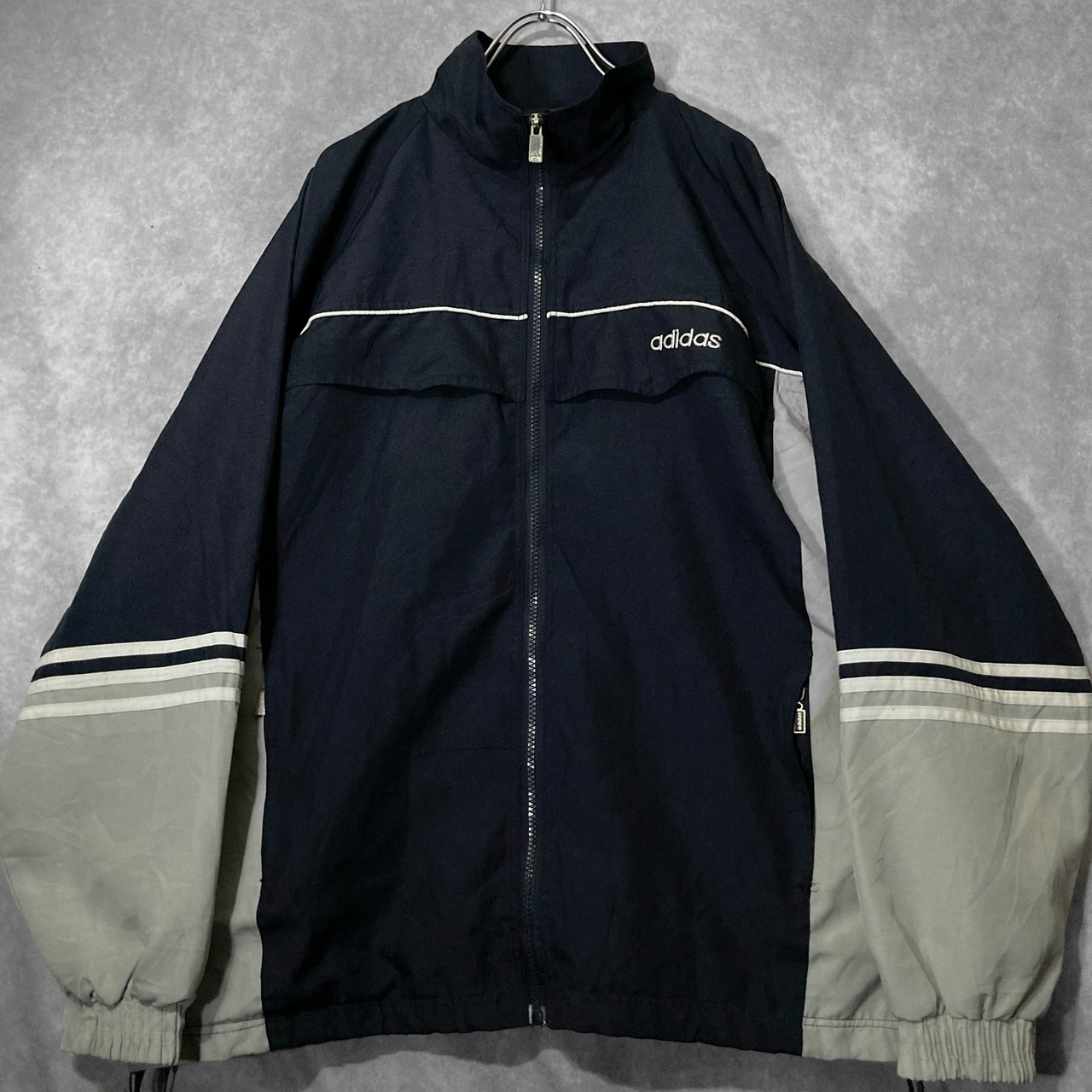 adidas 90s Navy × Gray colored and Logo embroidery design full-zip Track jacket