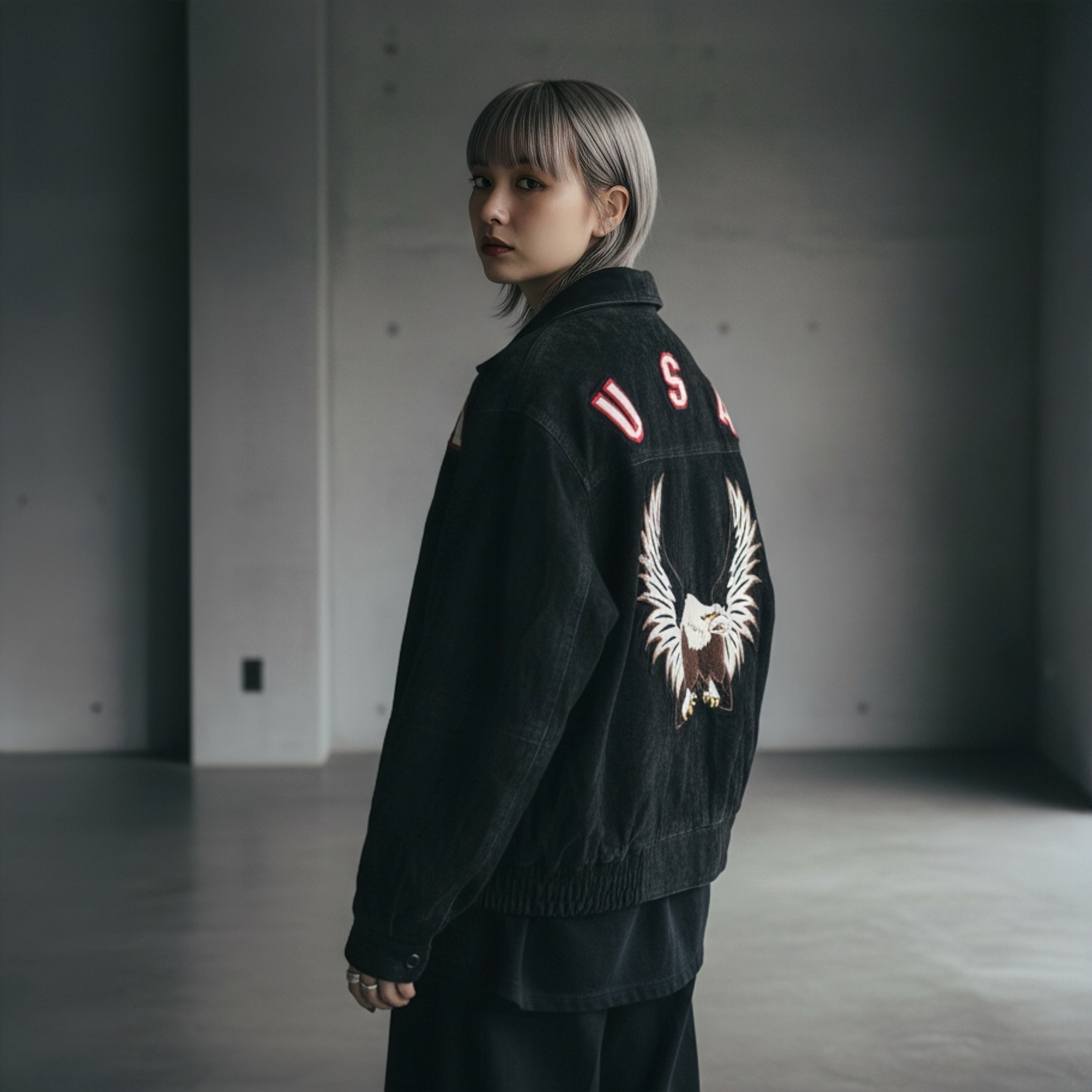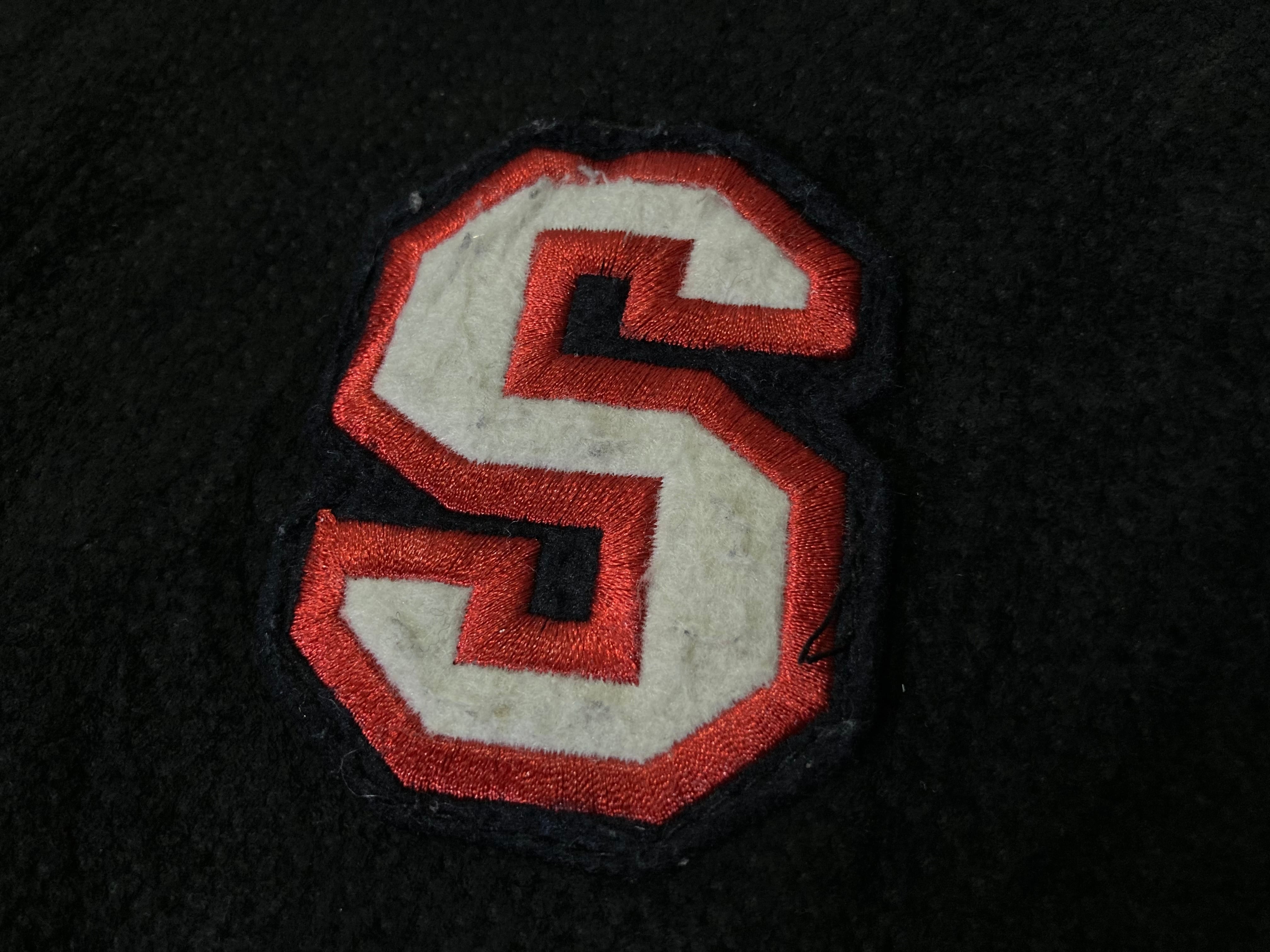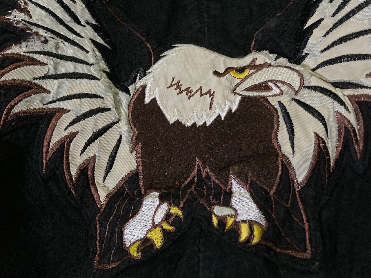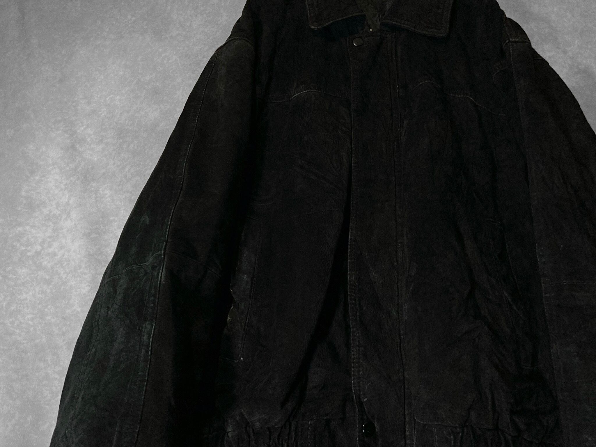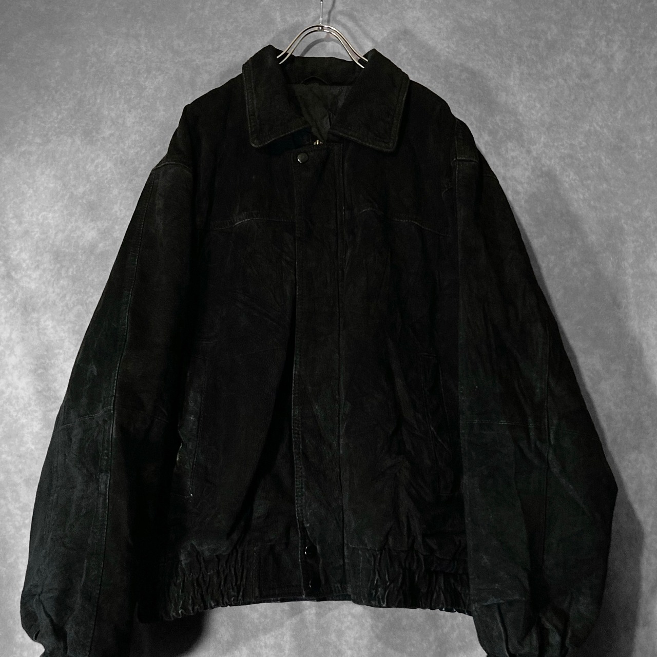 XL 80-90's pig skin leather fabric Falcon and USA logo emboss letter design vintage full-zip jacket
