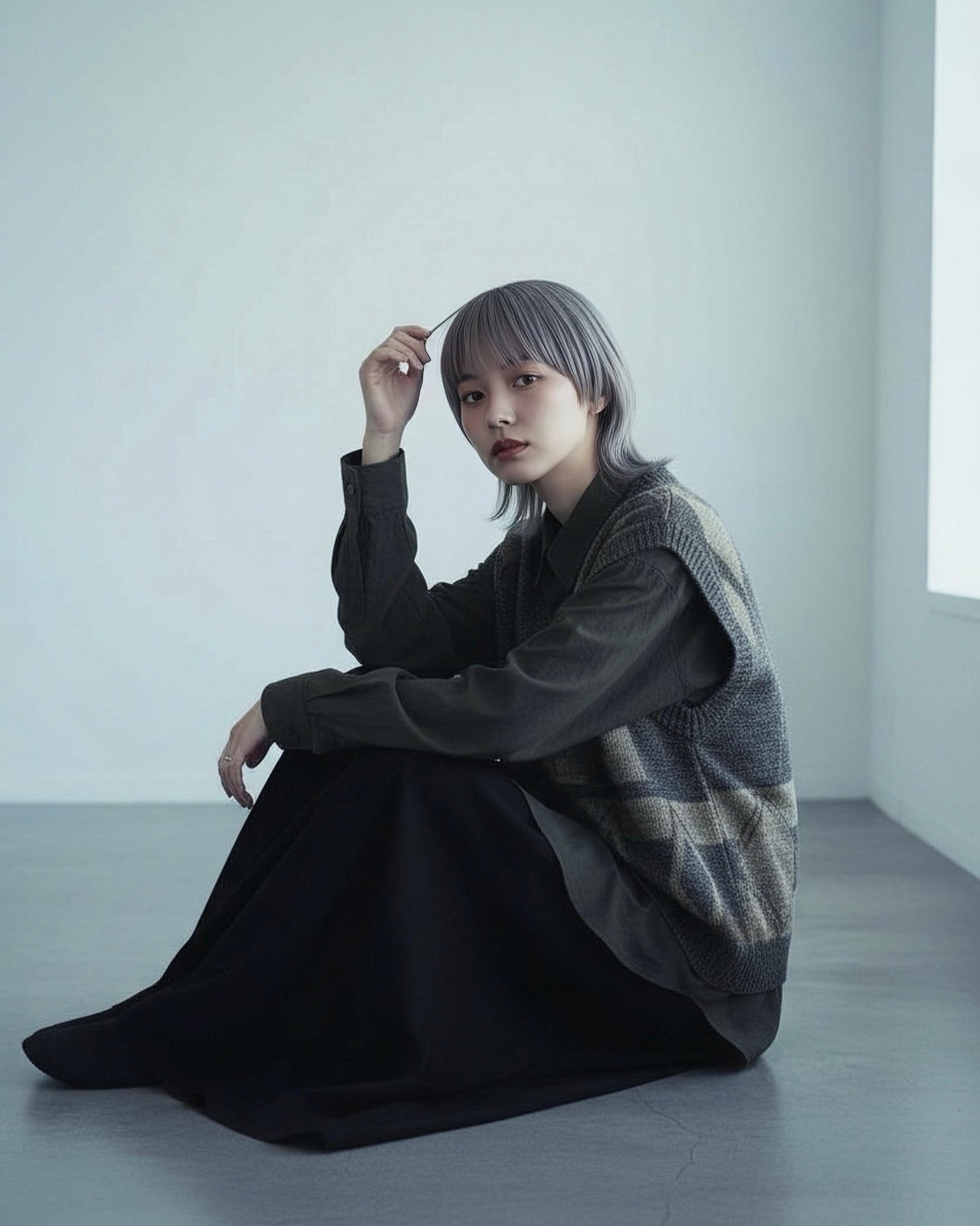 Asymmetrical geometric pattern design Knit vest