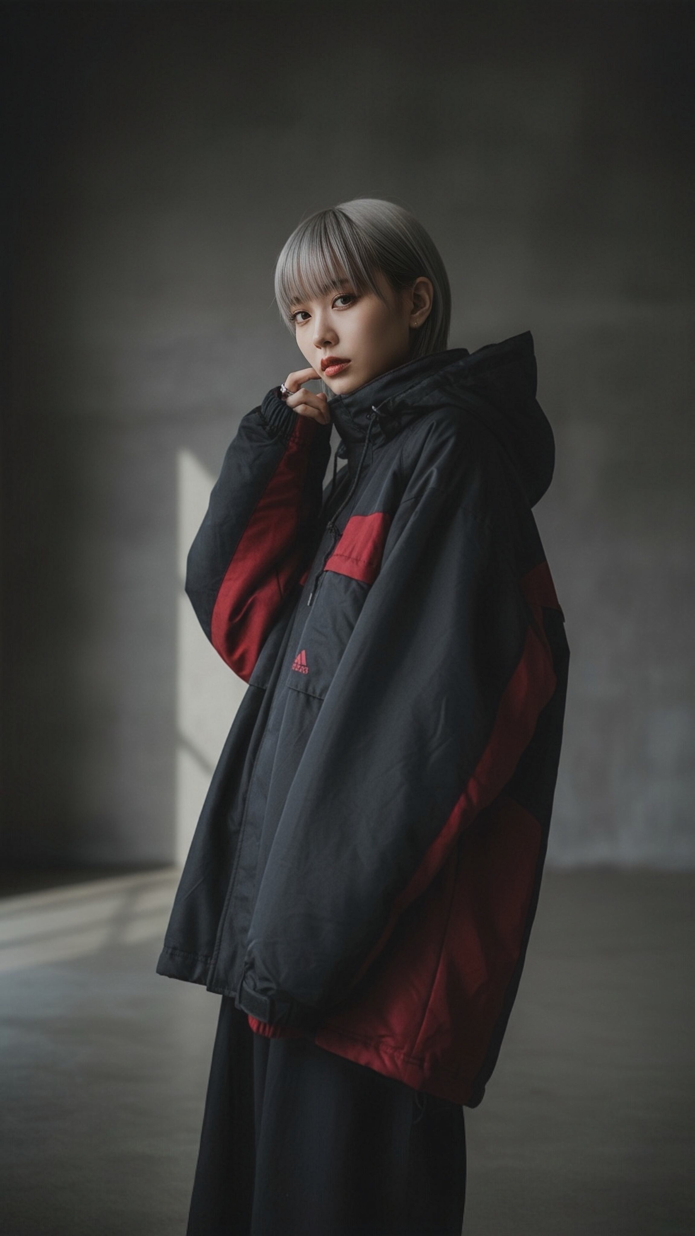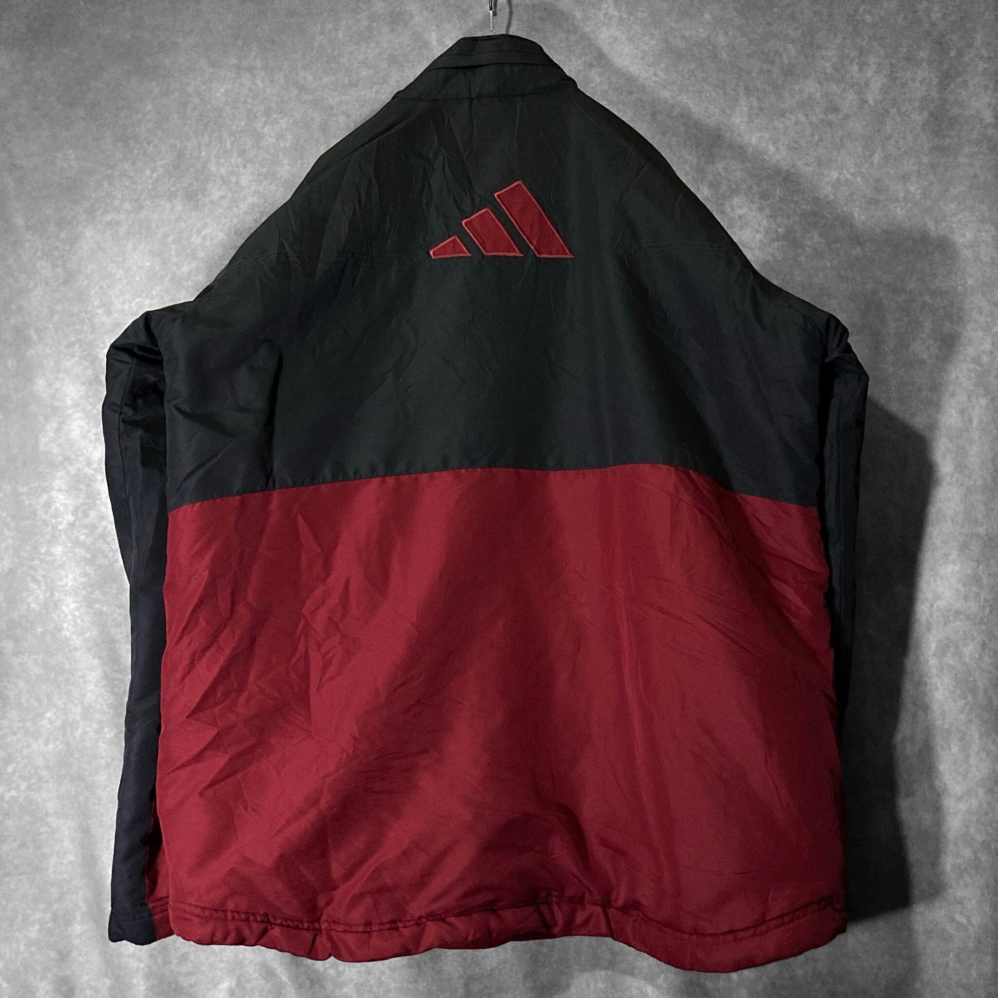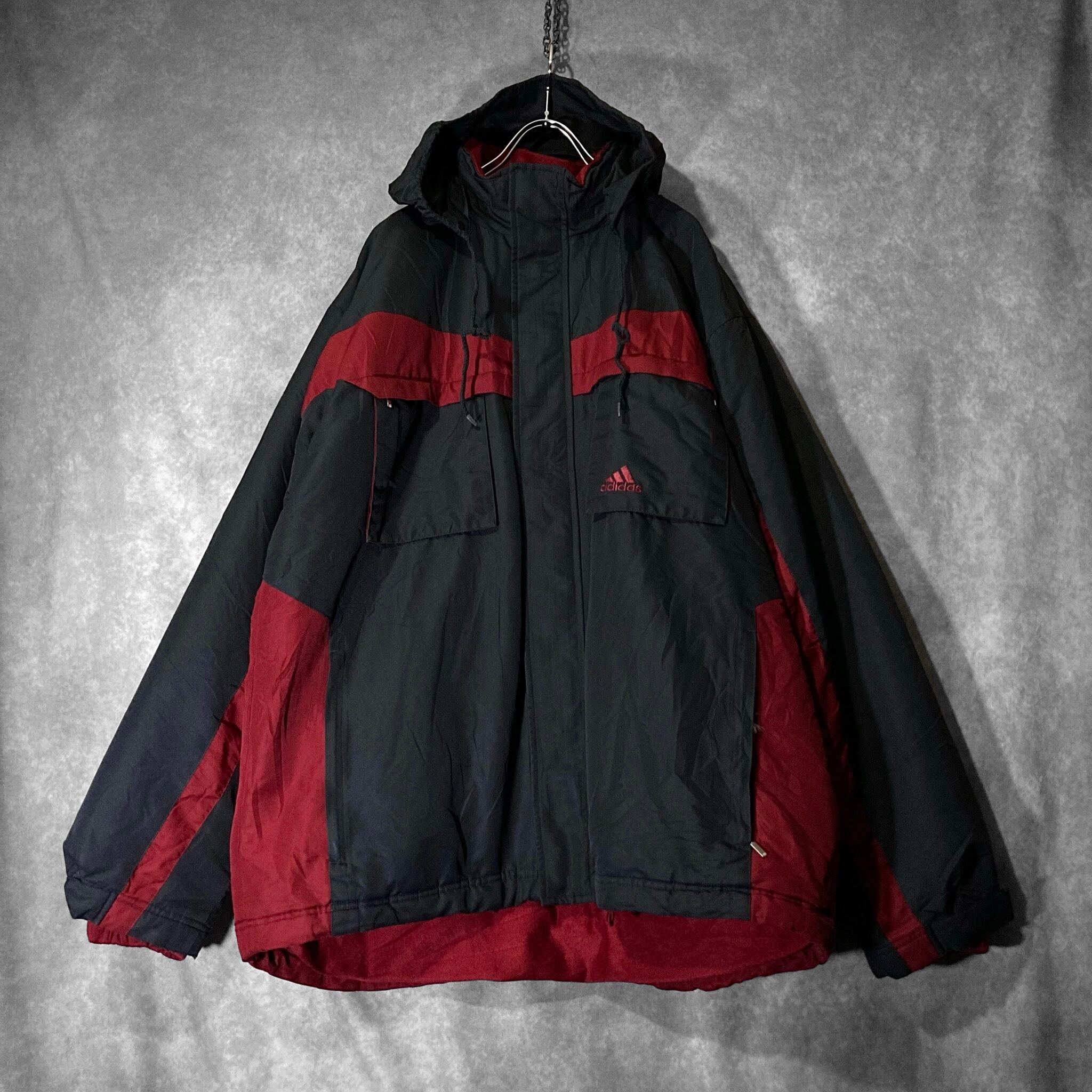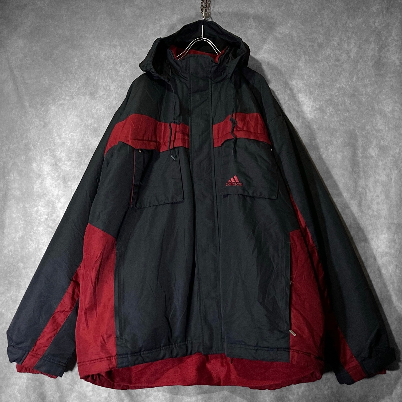 adidas 90-00's XL vivid red × Dark gray color contrast switching and Back logo embroidery design full-zip Hooded blouson