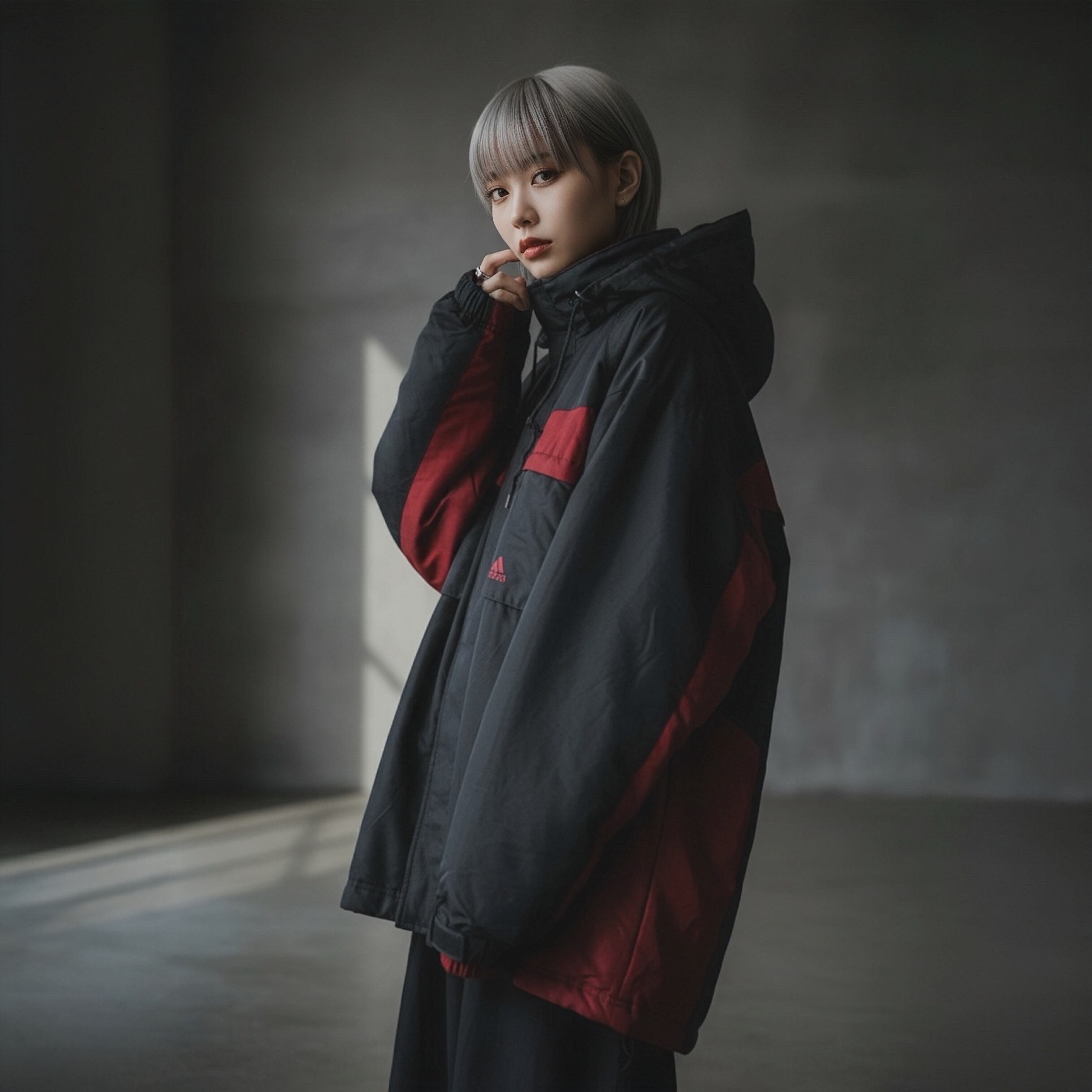 古着の中でも年々希少価値が高くなっている人気のスポーツウェアブランド・adidasより、ビビッドな赤とダークグレーのコントラストが一際目をひくフーデッドブルゾンのご紹介です。