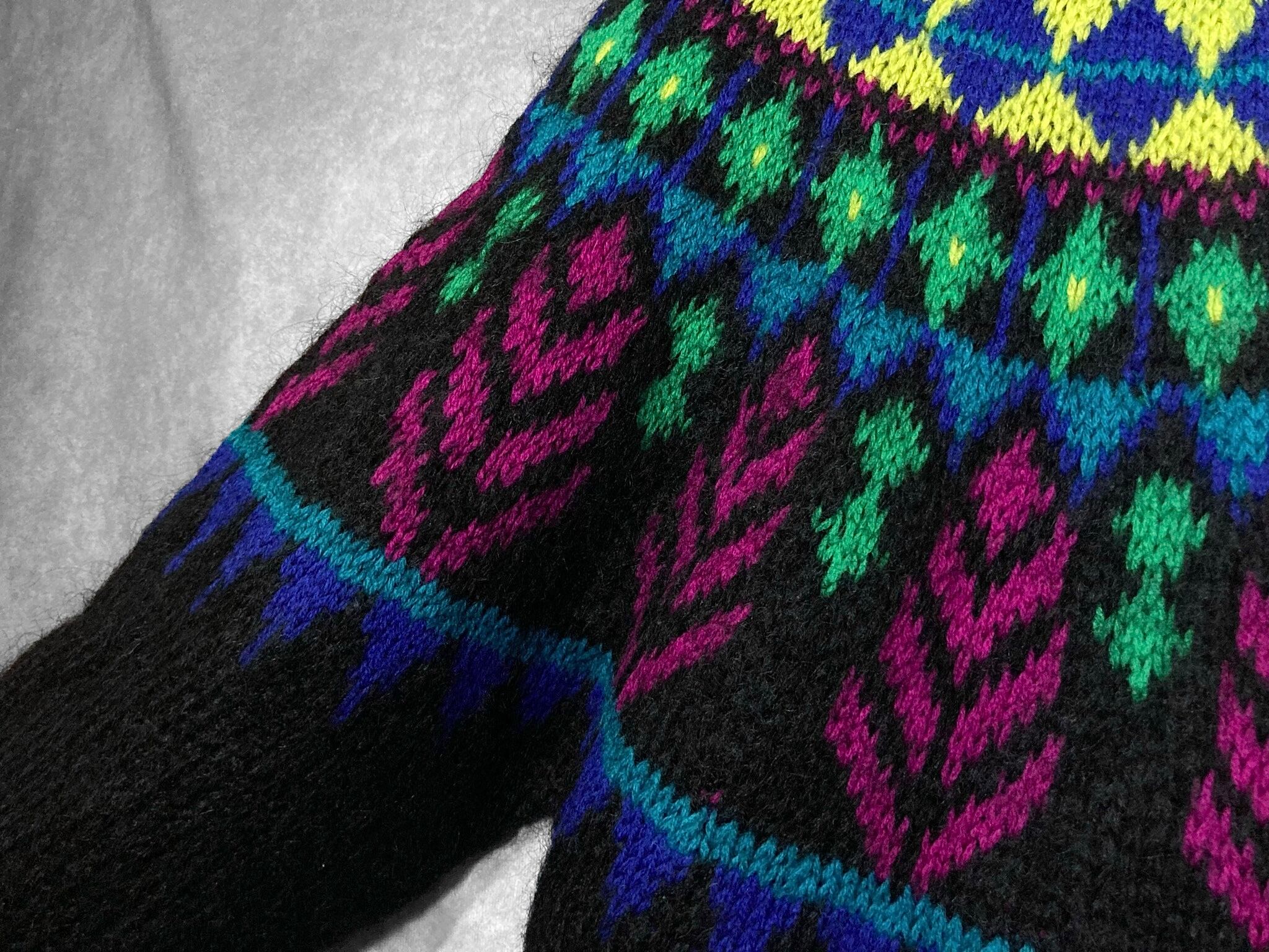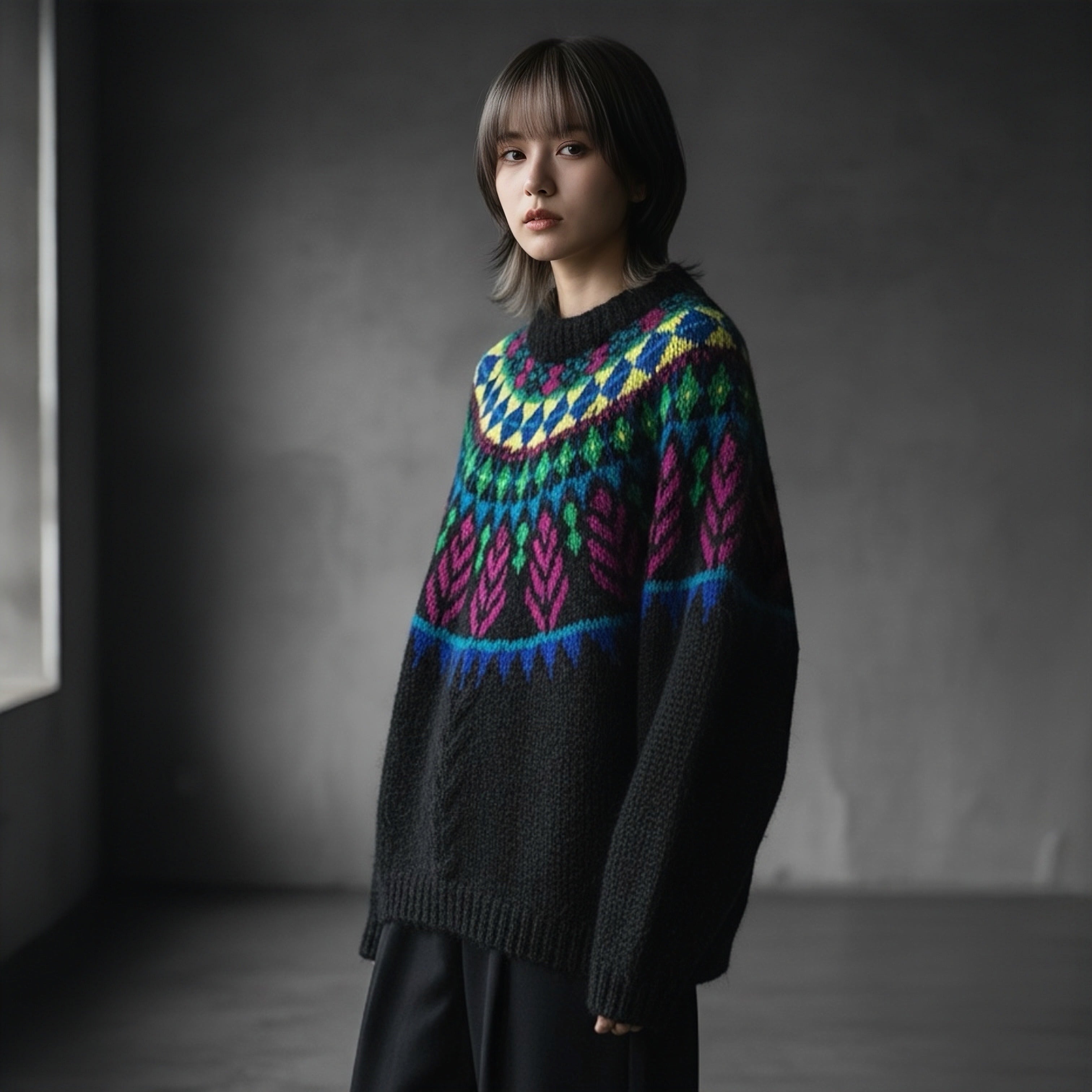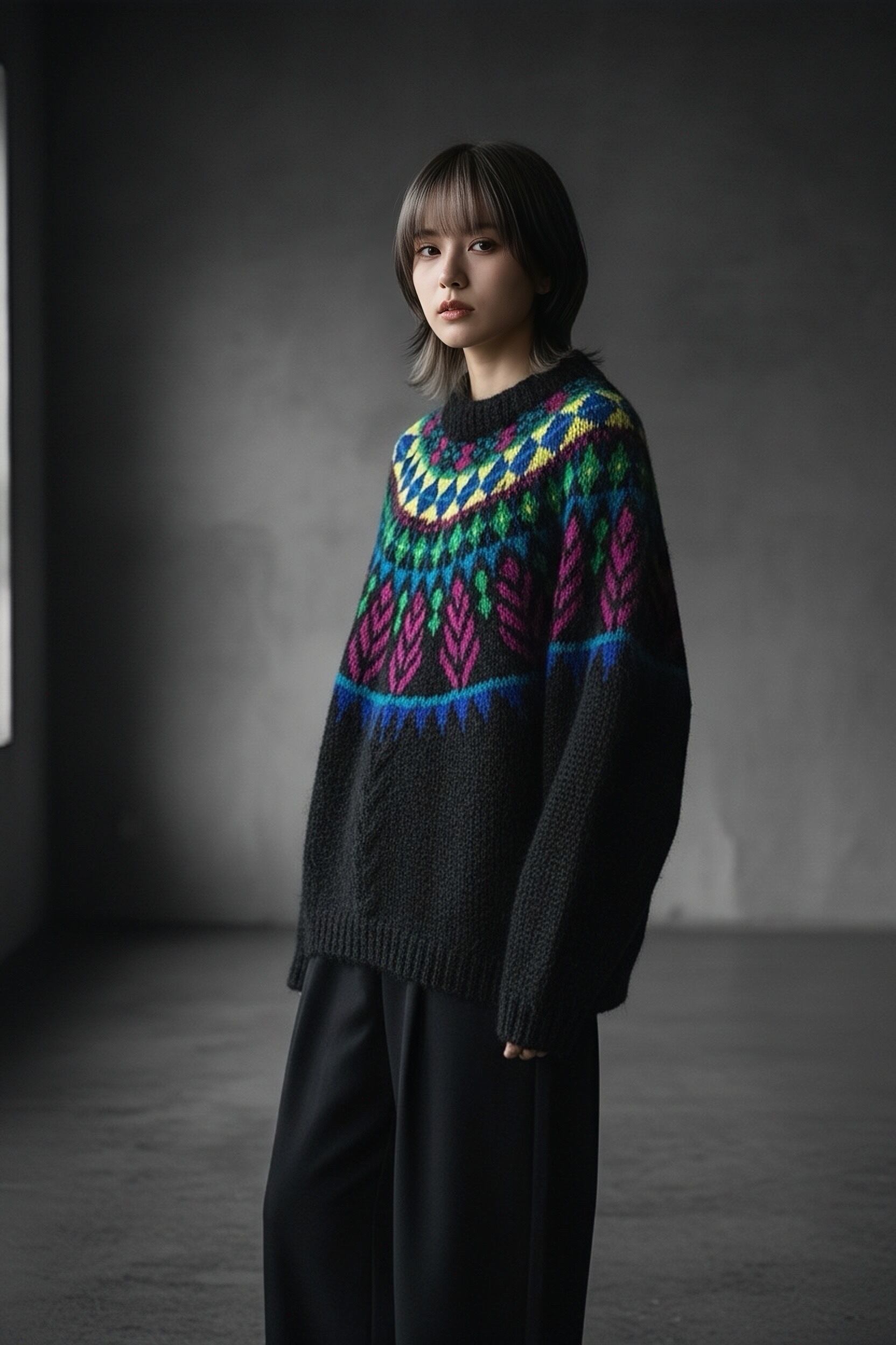 洋館の煌びやかなステンドガラスのようなパターンが可愛いデザインニットが入荷しました。