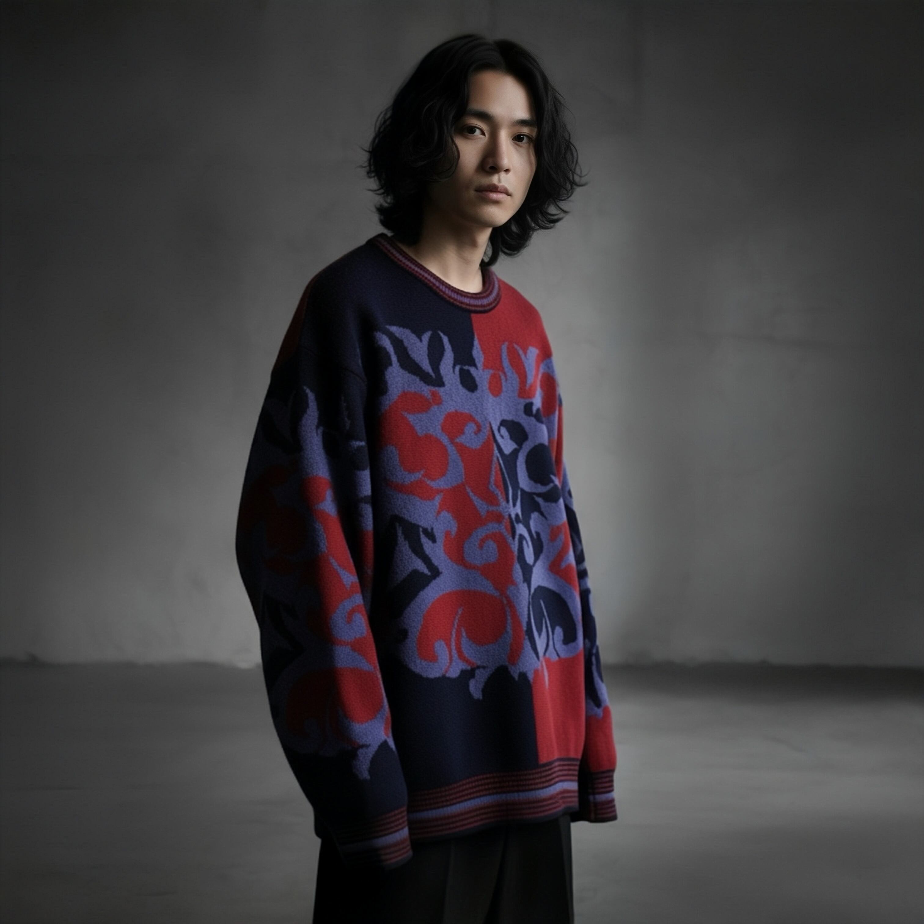 4L 霊魂 King & Knights Ferocious and mystical spirit soul bewitching pattern design King-size knit sweater
