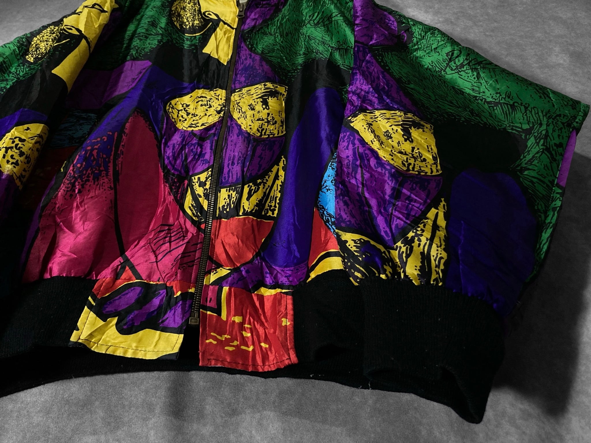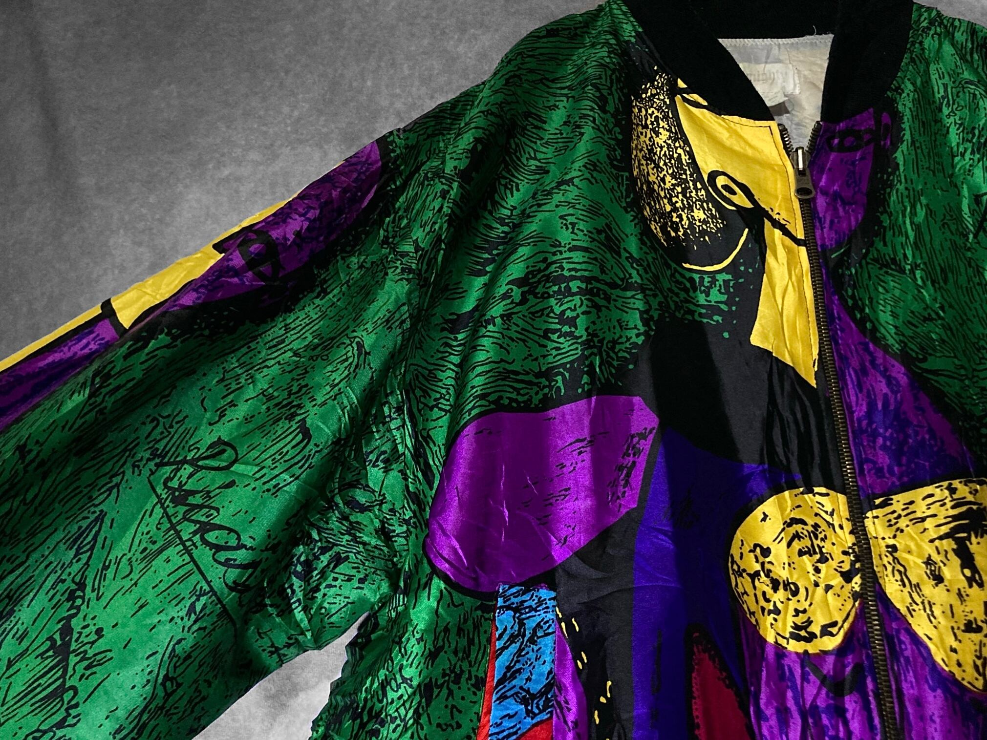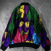 made in Korea Vivid colored picasso art design full-zip blouson