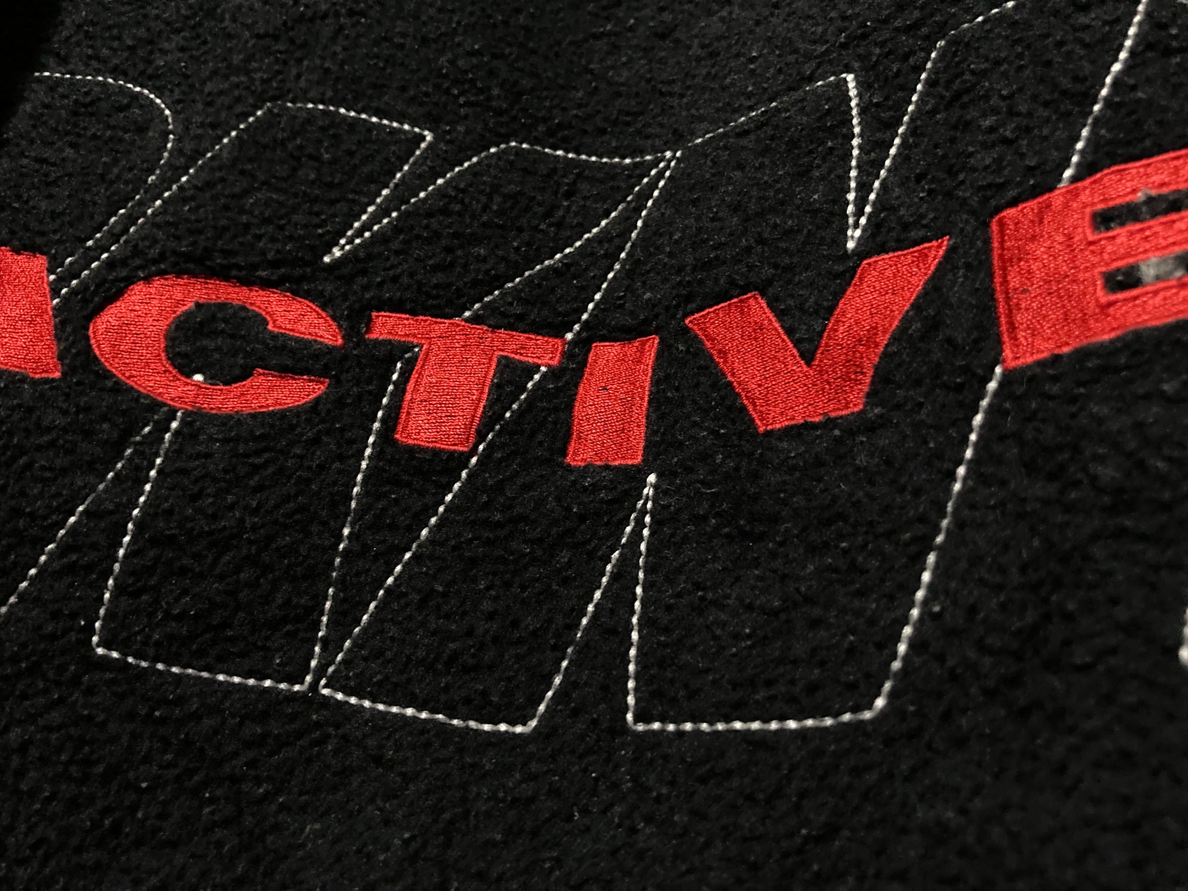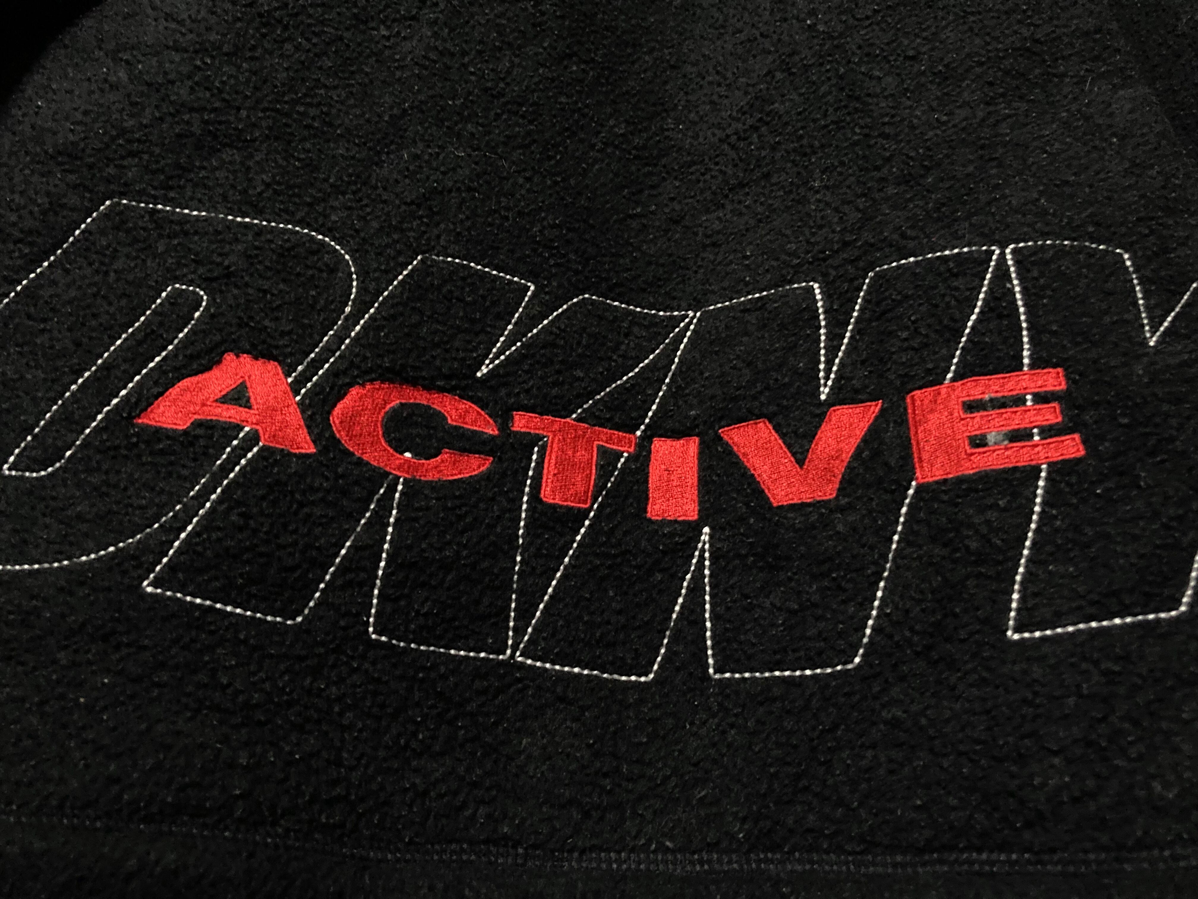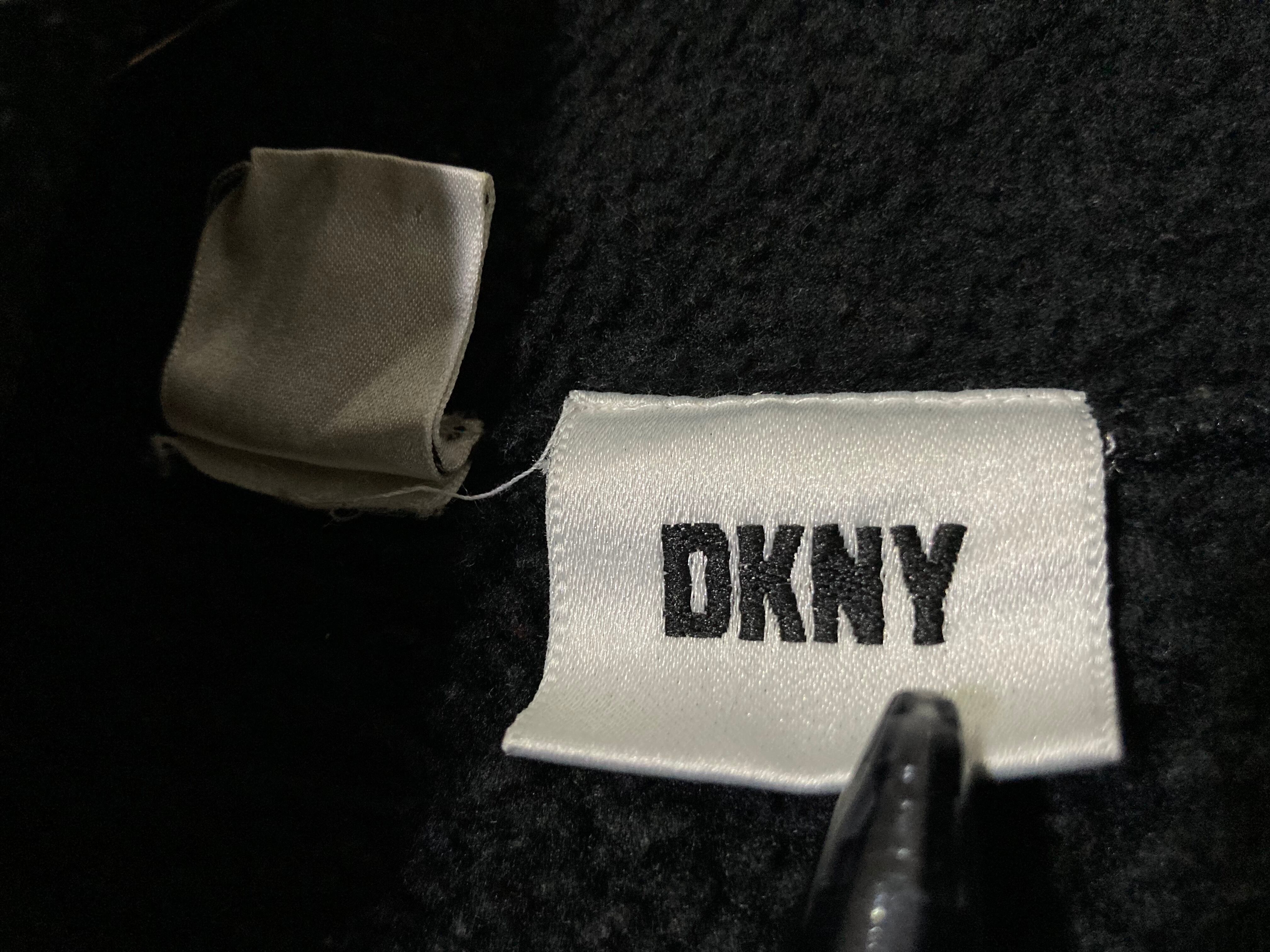 あったかく体をすっぽり包み込むシックなブラックのボアファブリックにアイコニックな「DKNY」のロゴと" ACTIVE " の刺繍が印象的。