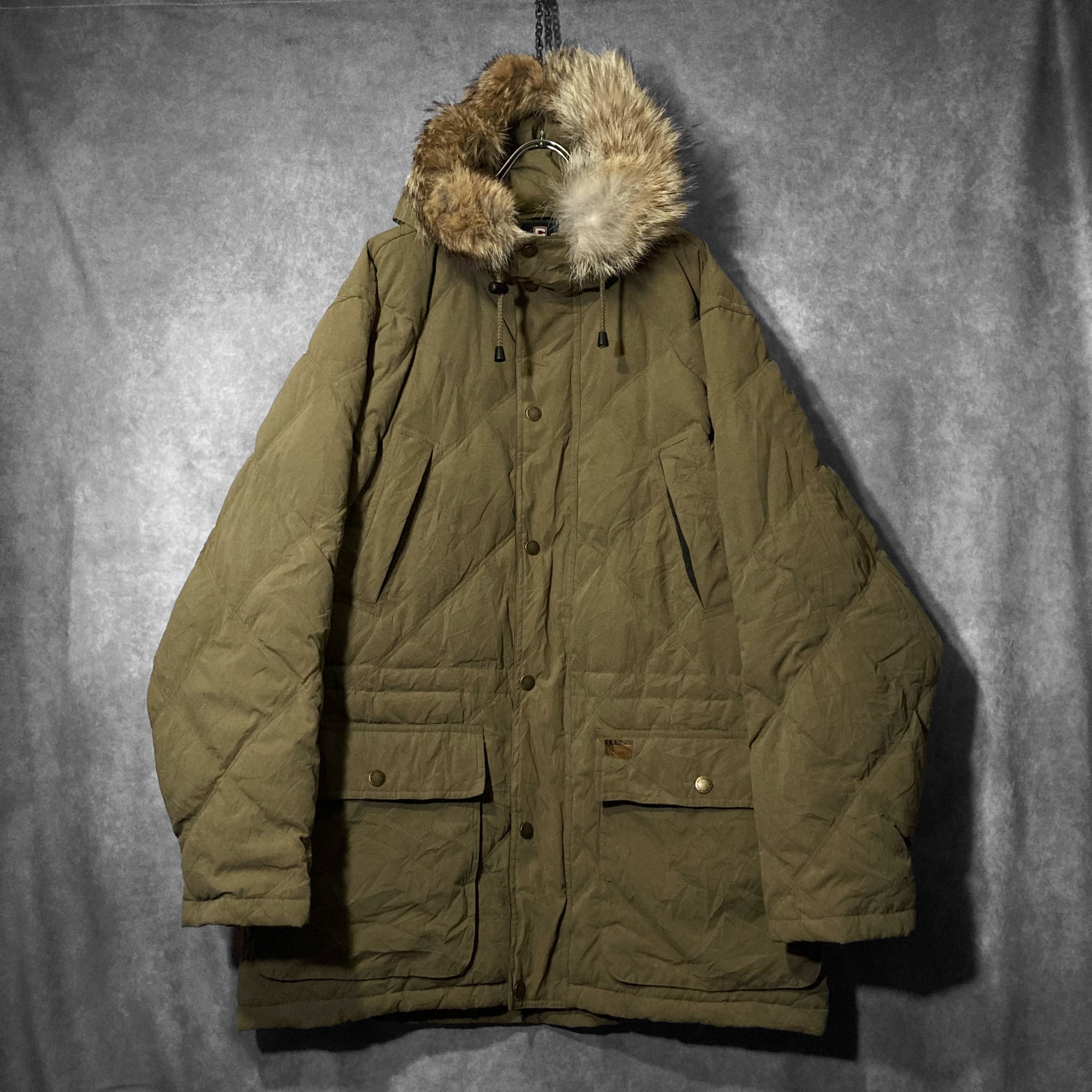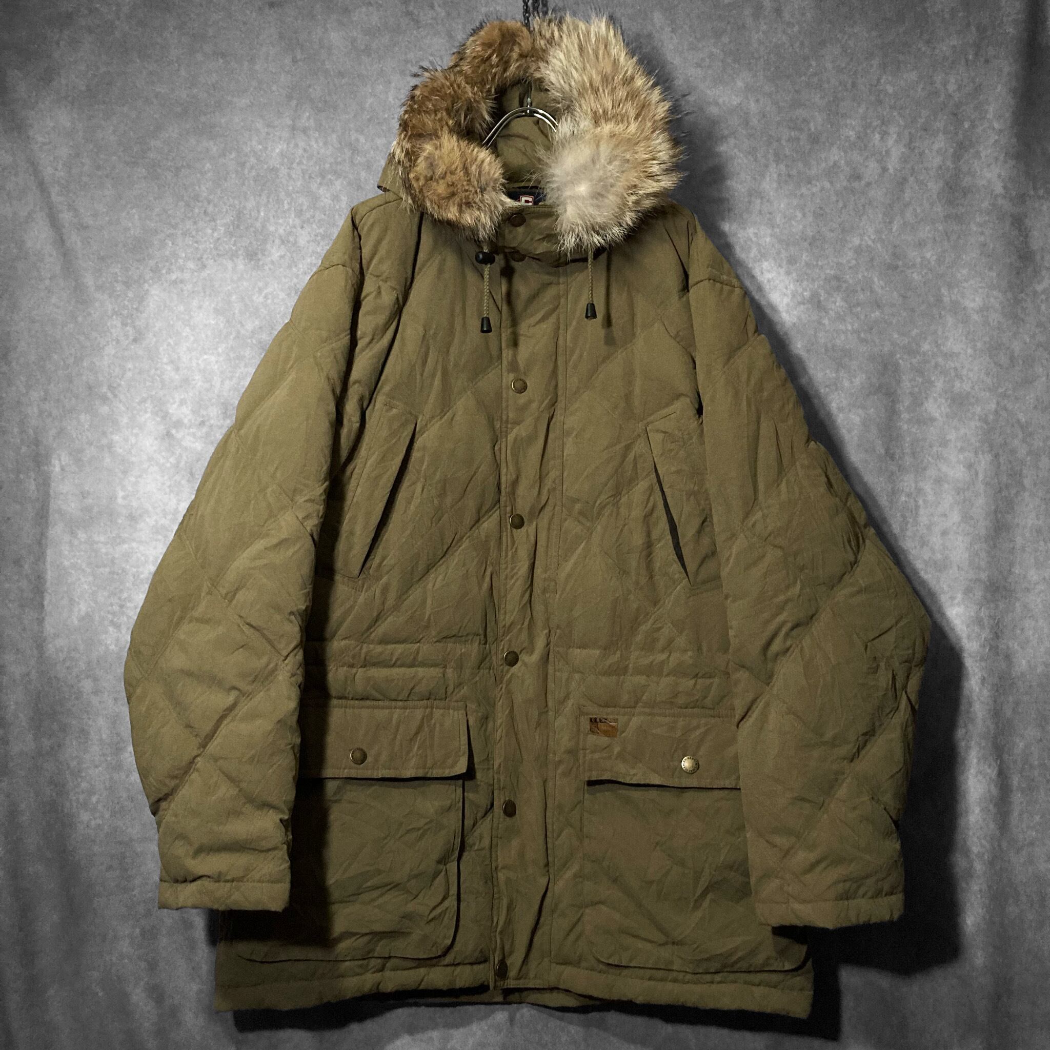 CHAPS Ralph Lauren 90's peach skin fabric raccoon far full-zip hooded jacket
