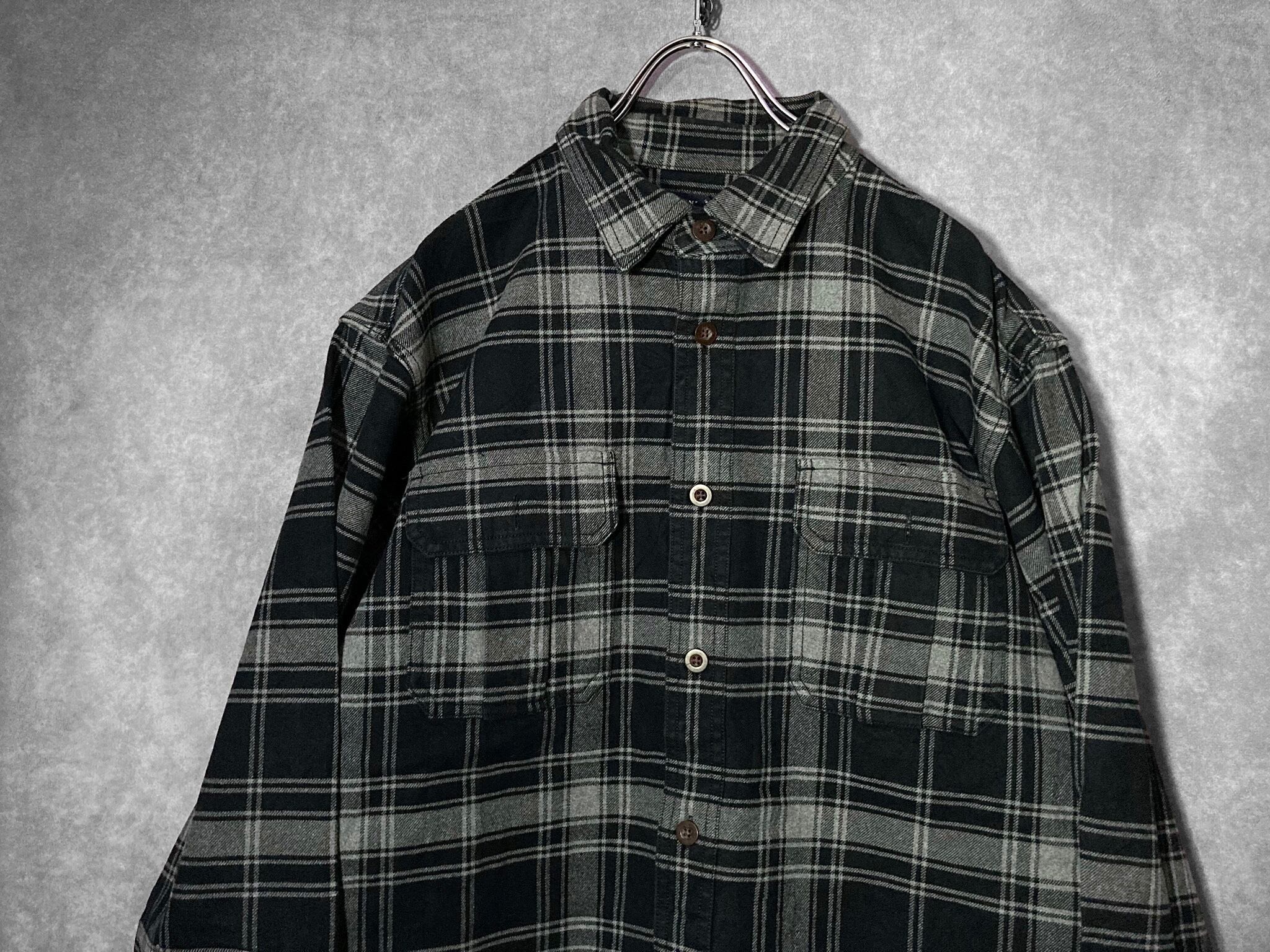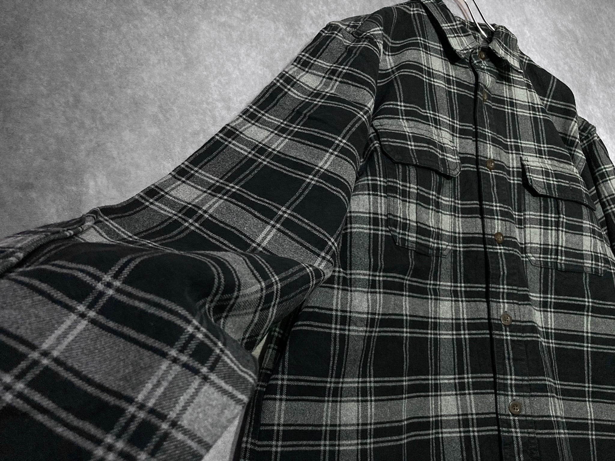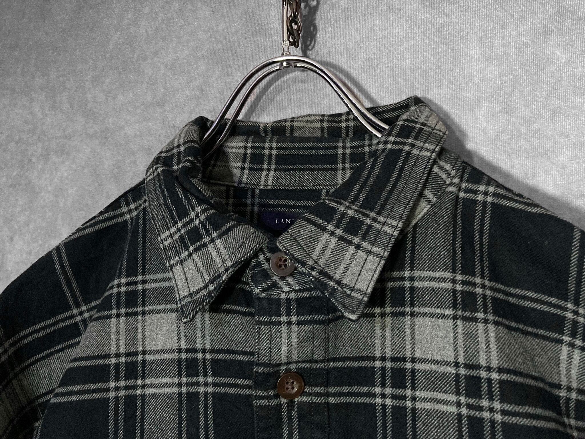 90s LANDS' END XXL Baumwool cotton fabric Monochrome color Check pattern design L/S shirt