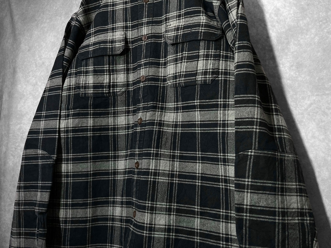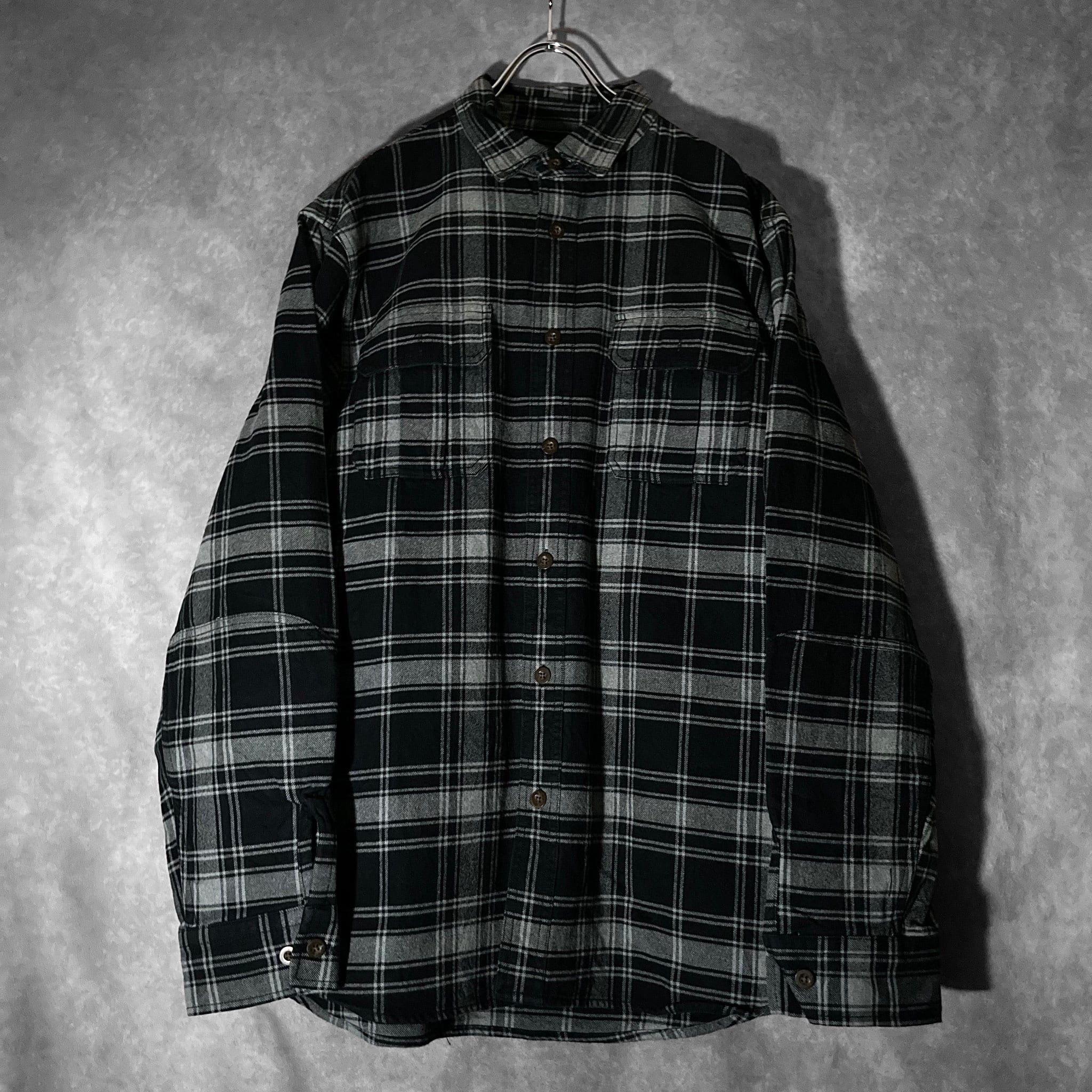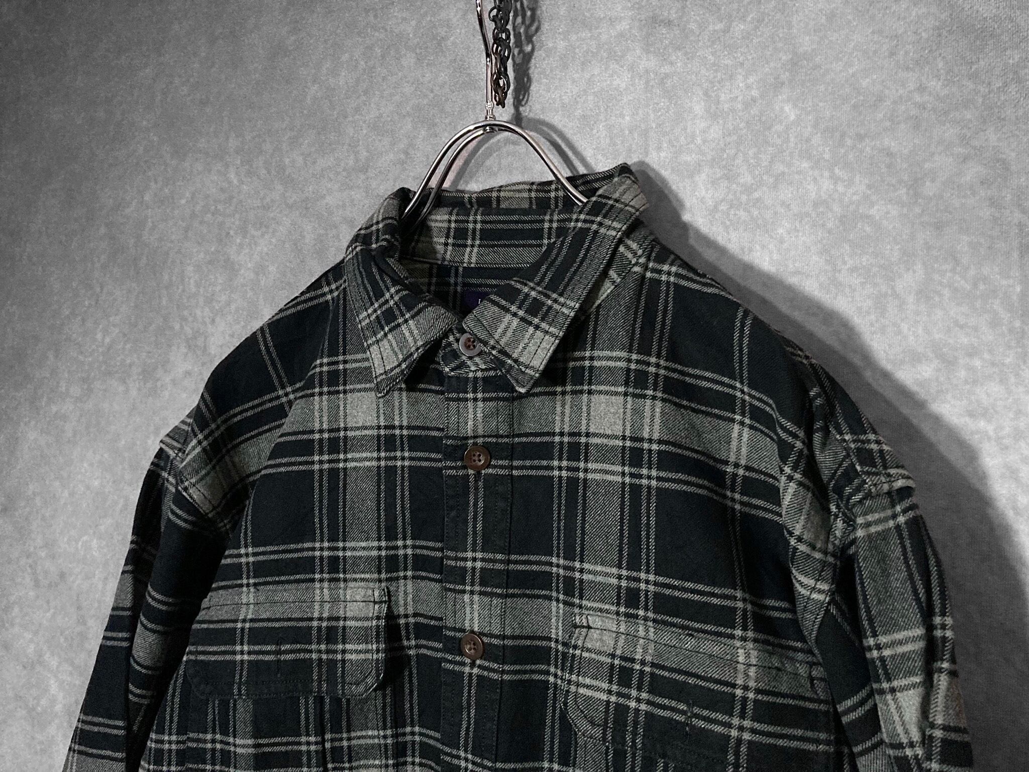 90s LANDS' END XXL Baumwool cotton fabric Monochrome color Check pattern design L/S shirt