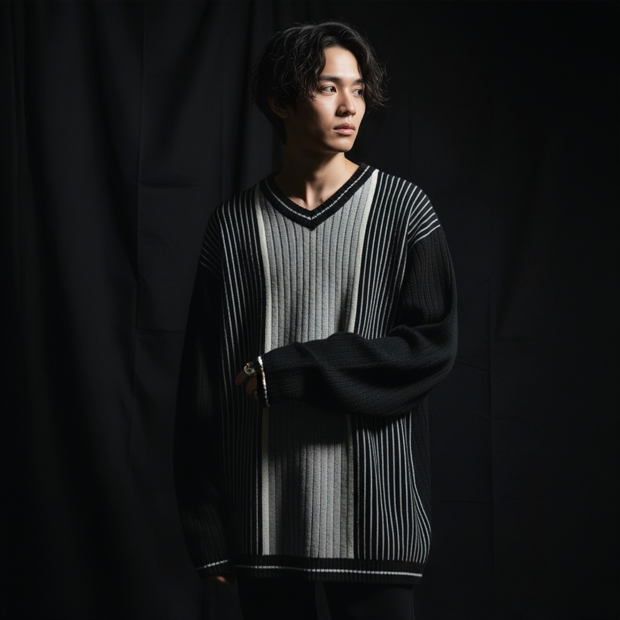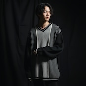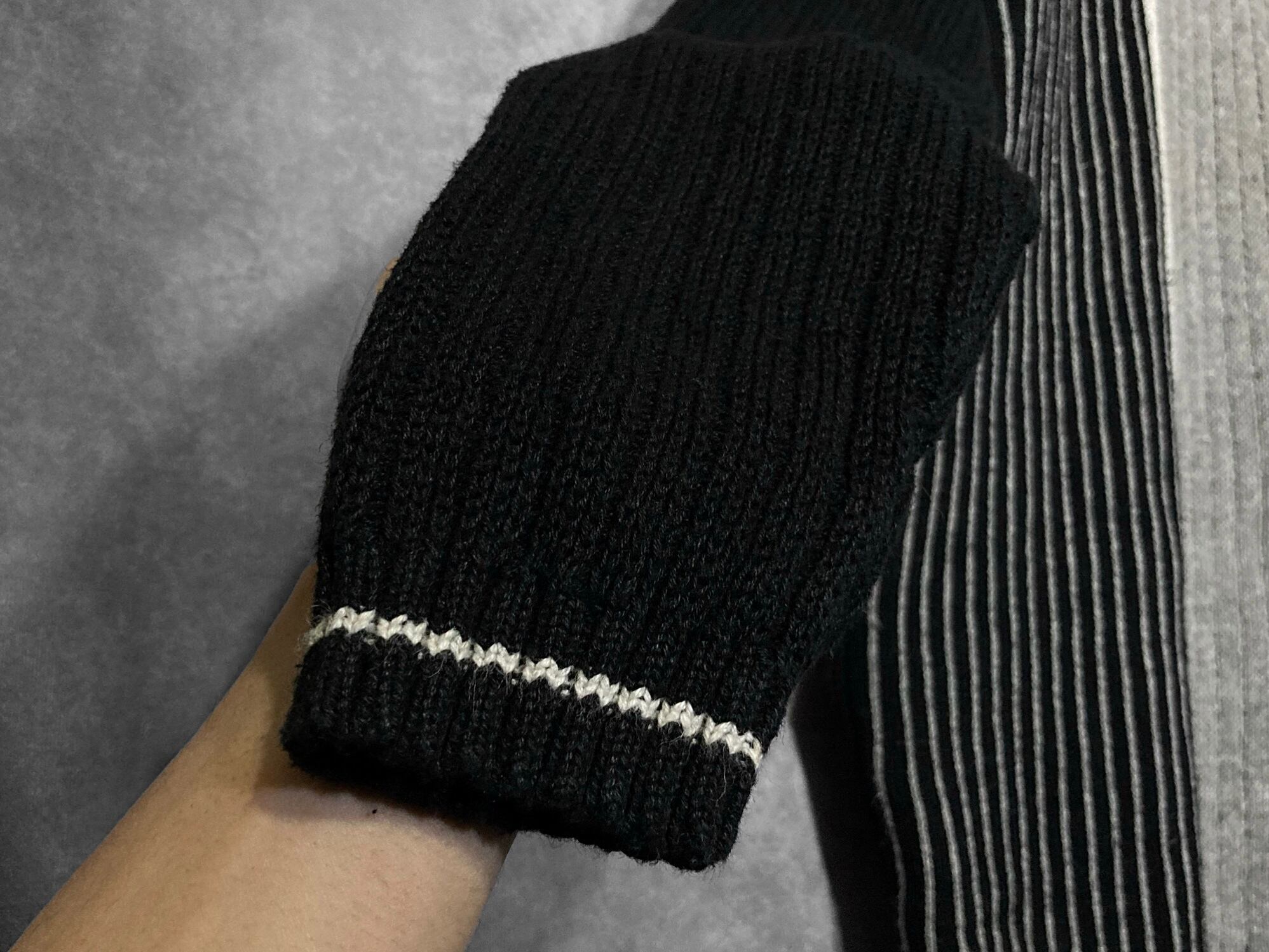 ドメスブランドにありそうなグラデーションパターンが雰囲気ムンムンなブラックニットの入荷です。