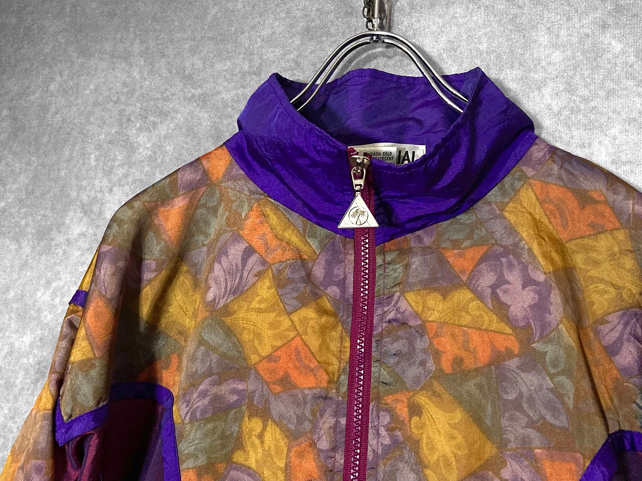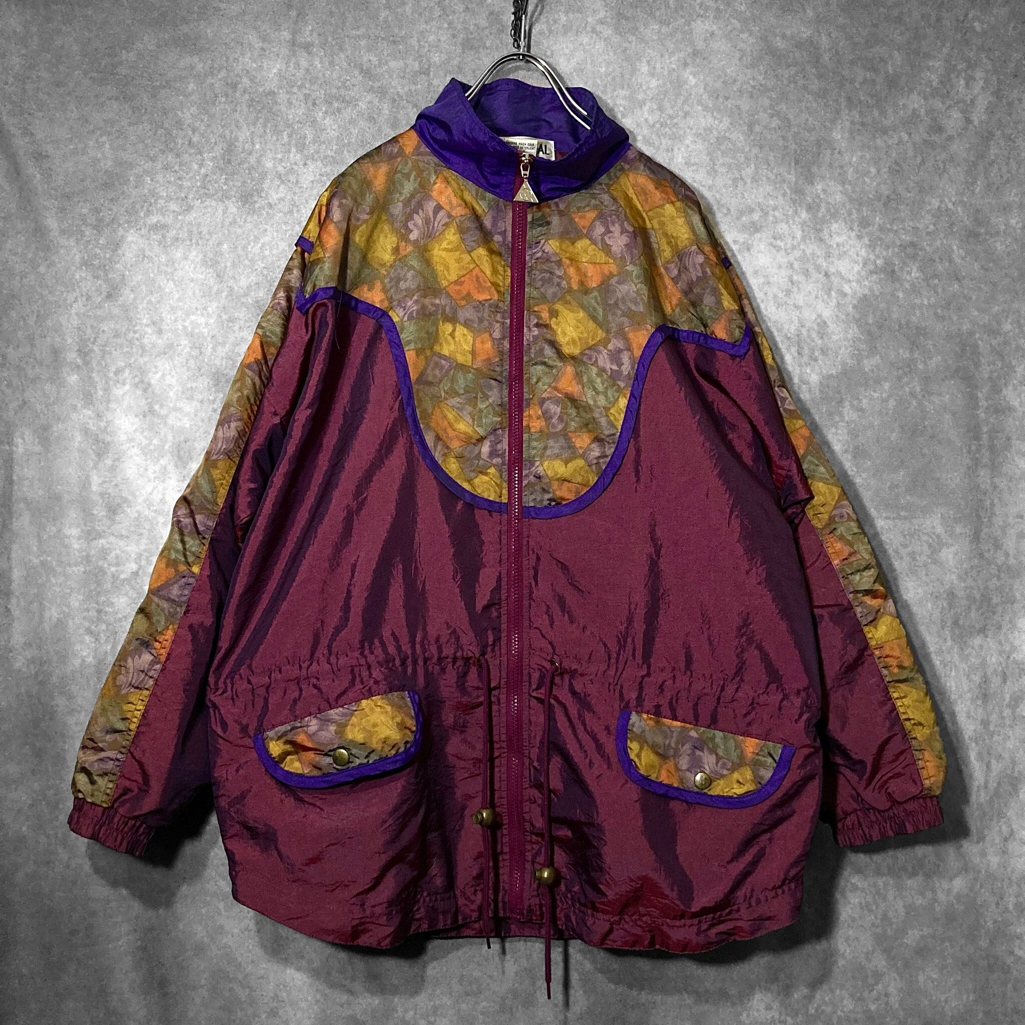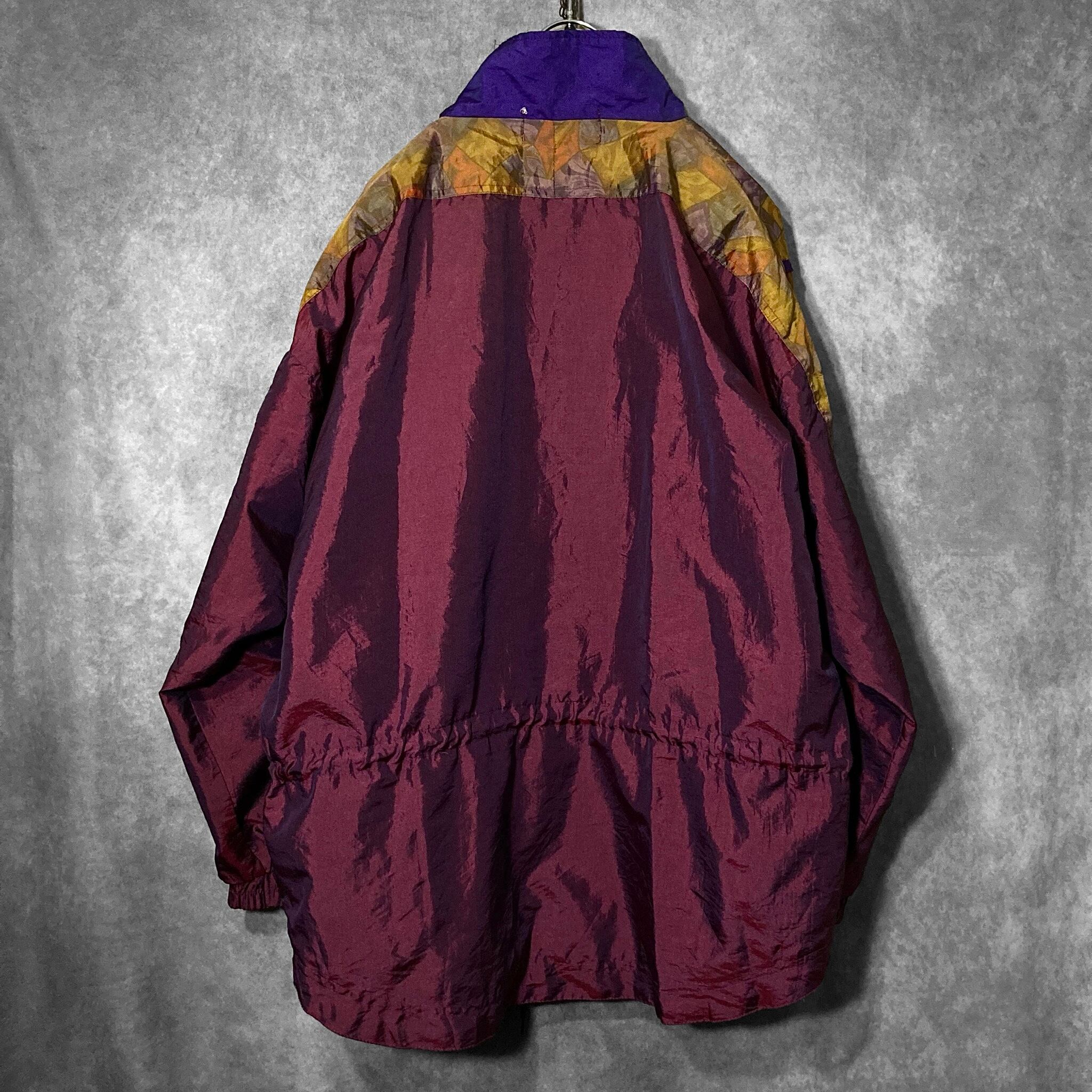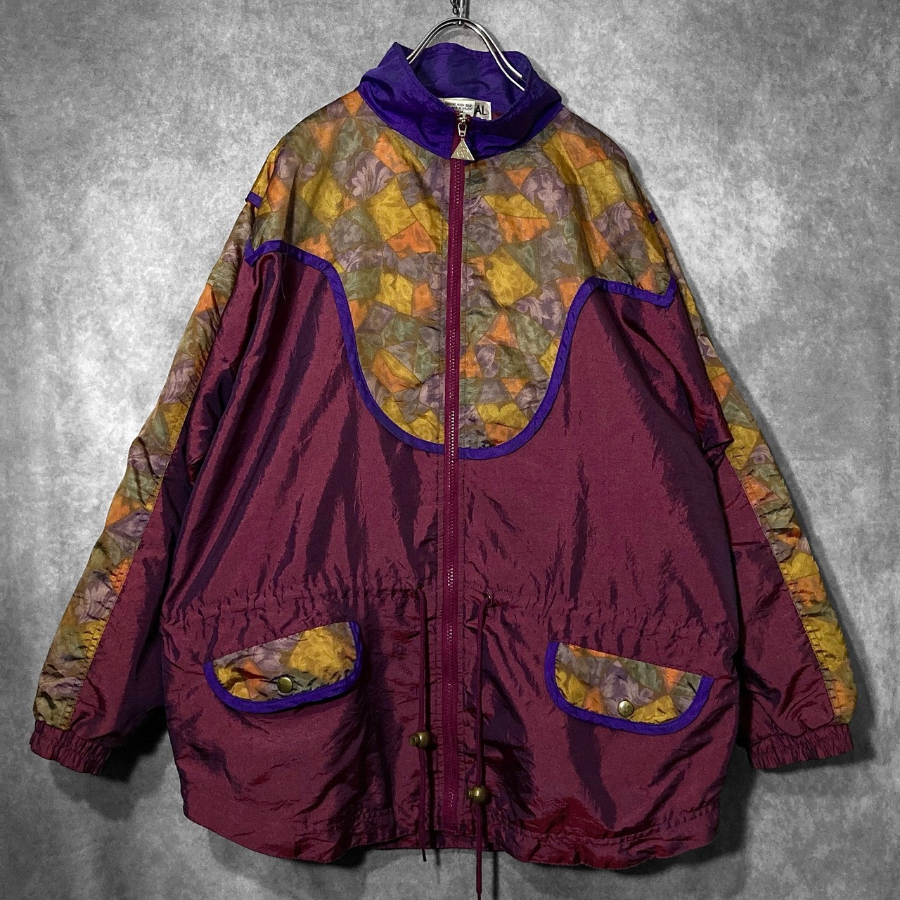 XL Mysterious pattern × Bewitching Bordeaux Combination Switching design Full-zip Nylon jacket