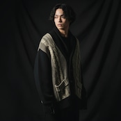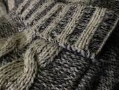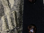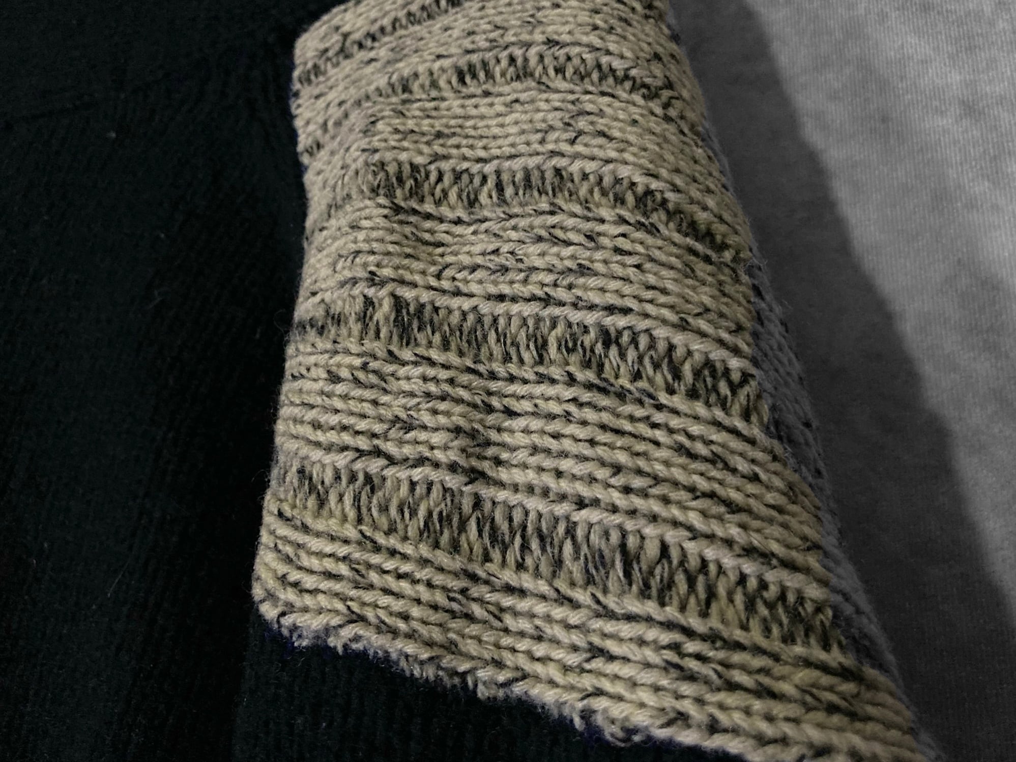 横糸に黒糸を使用し編むことでノイズが入ったような陰影のあるコントラストが生まれた表情豊かな1着。