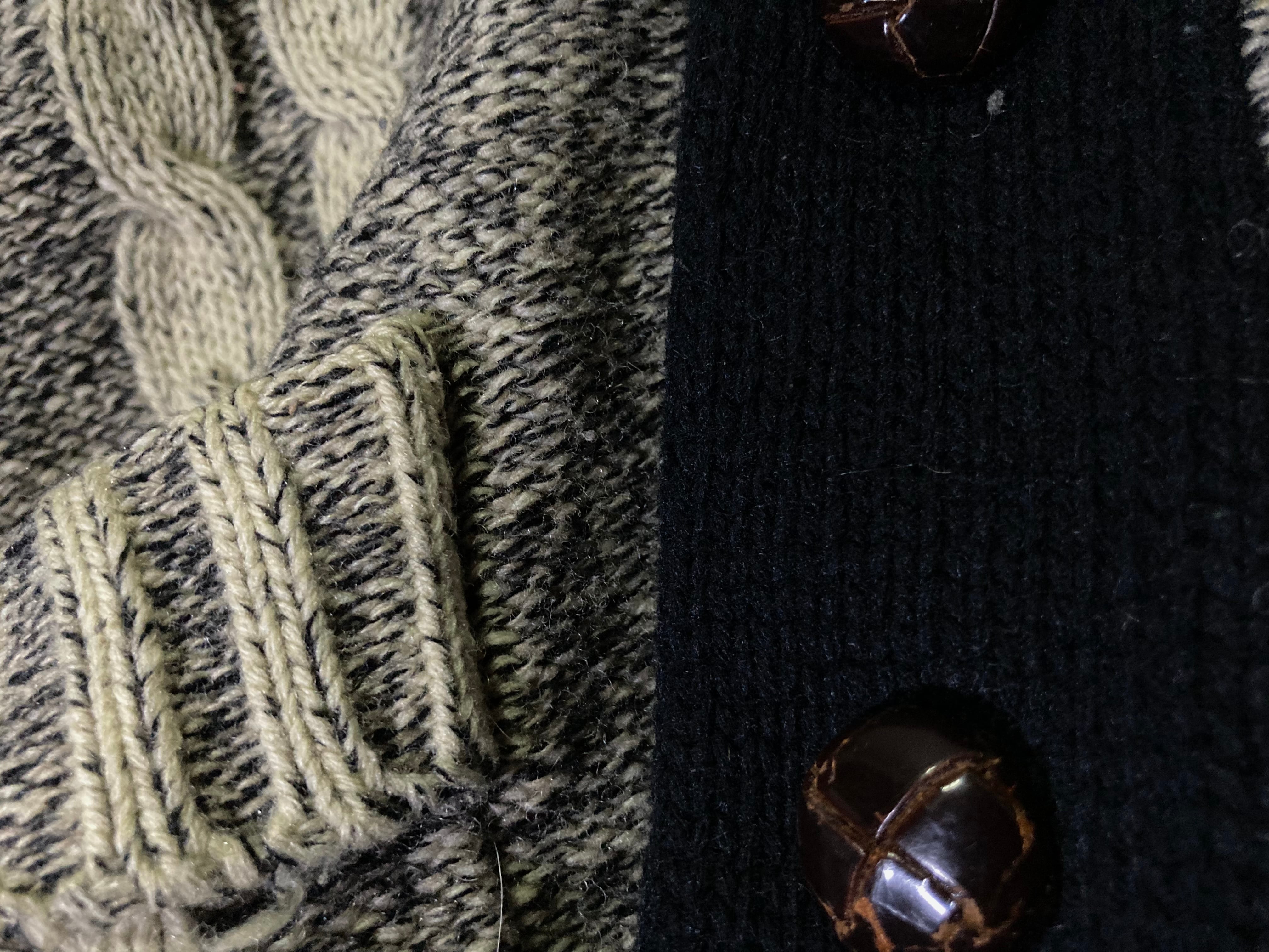 毎度好評いただいてる当店が厳選するニットコレクションより、ブラックベースのコントラストが印象的なヴィンテージニットカーディガンが入荷しました。