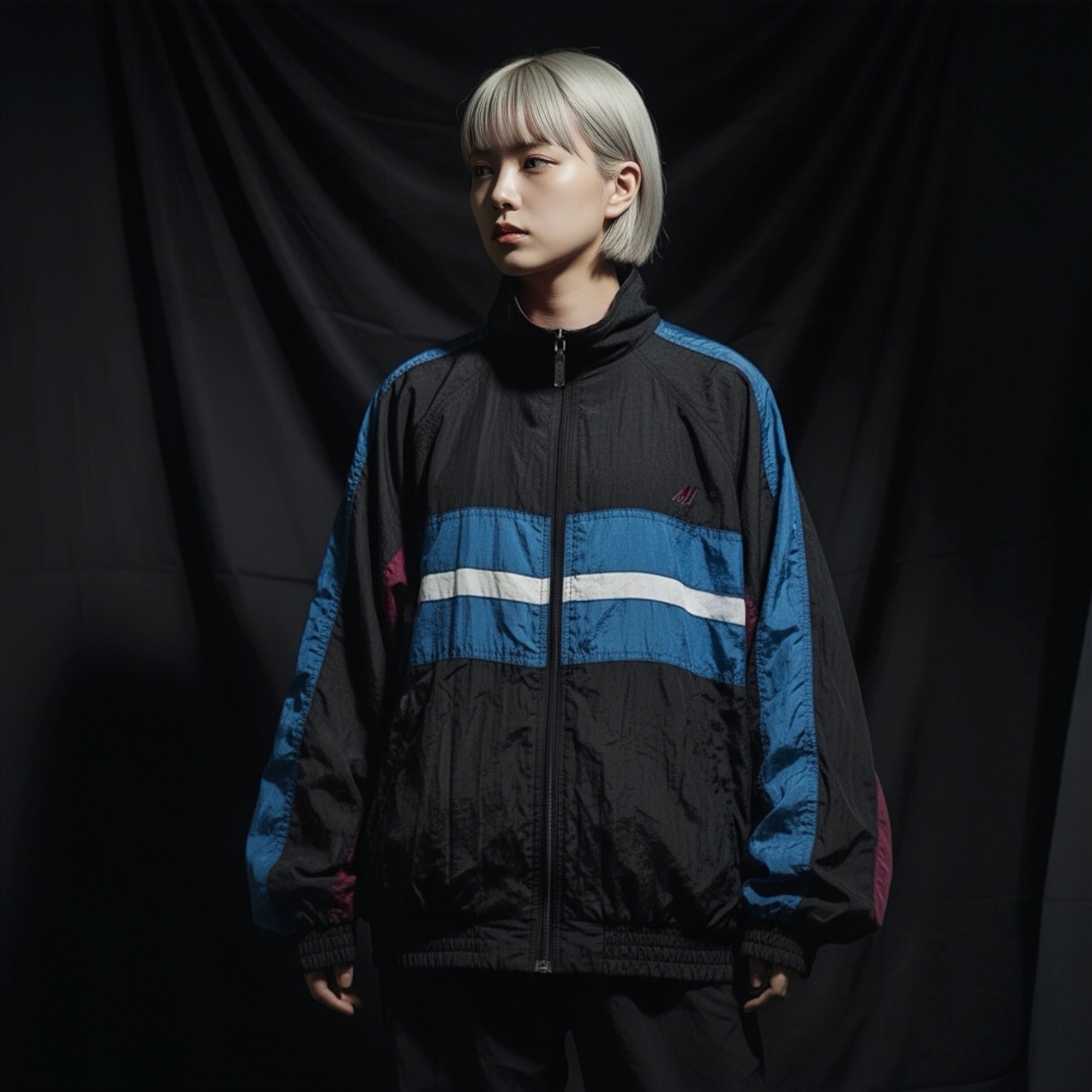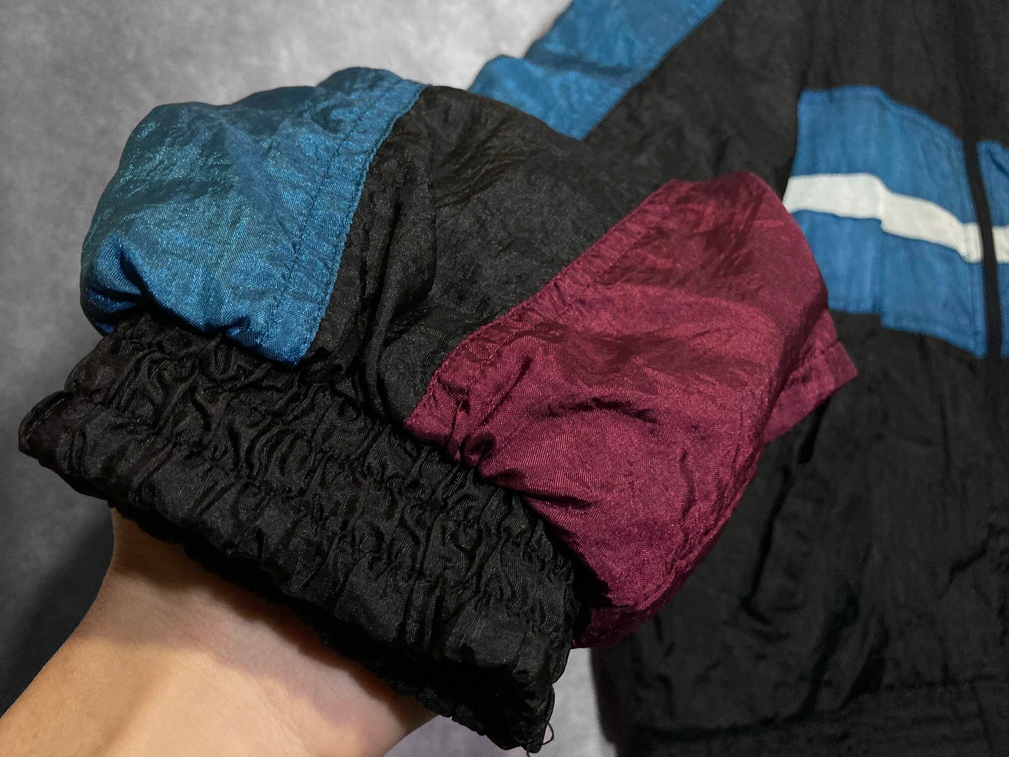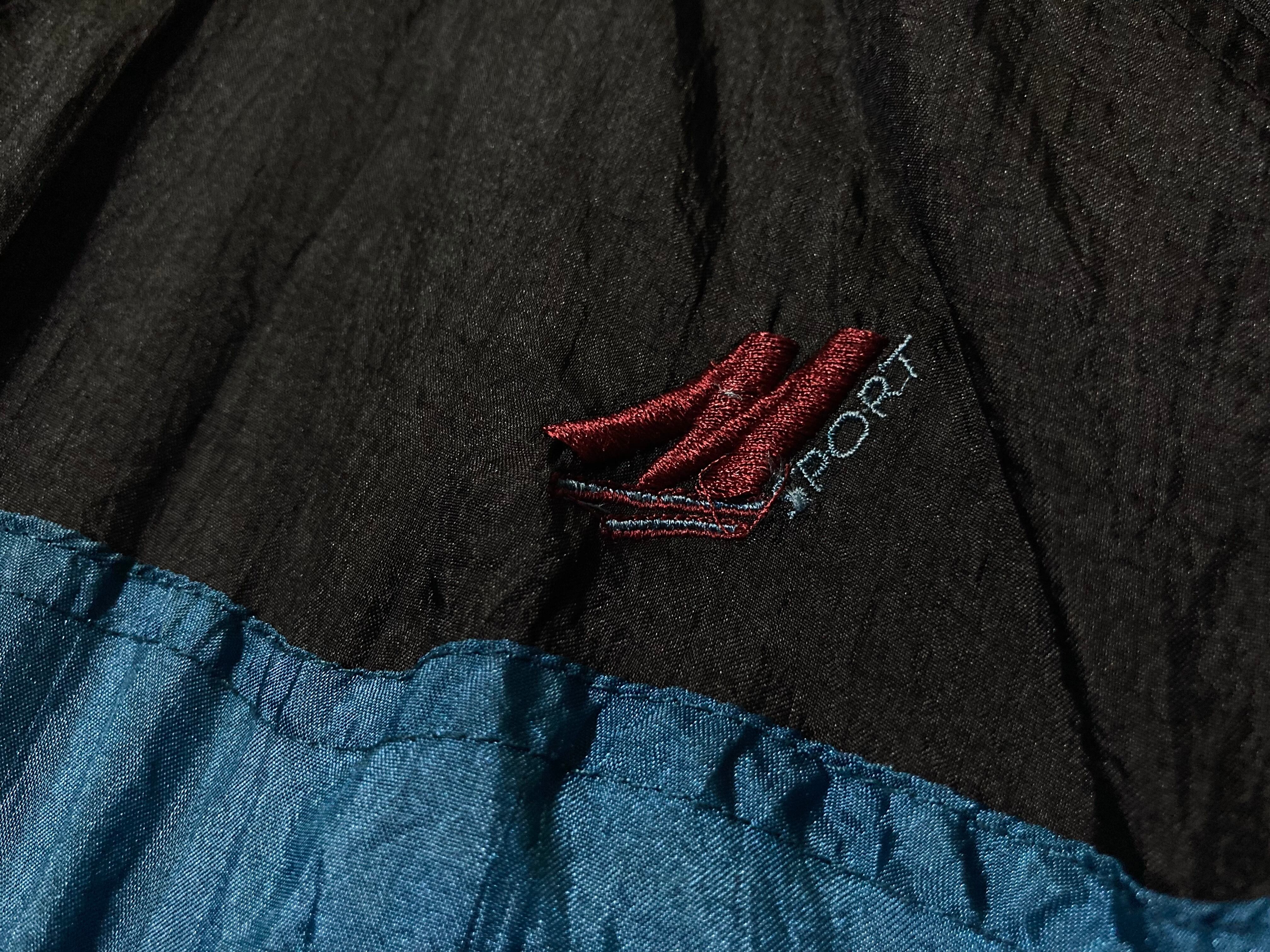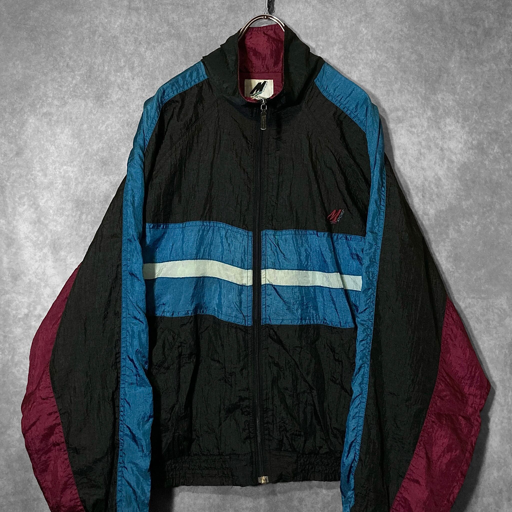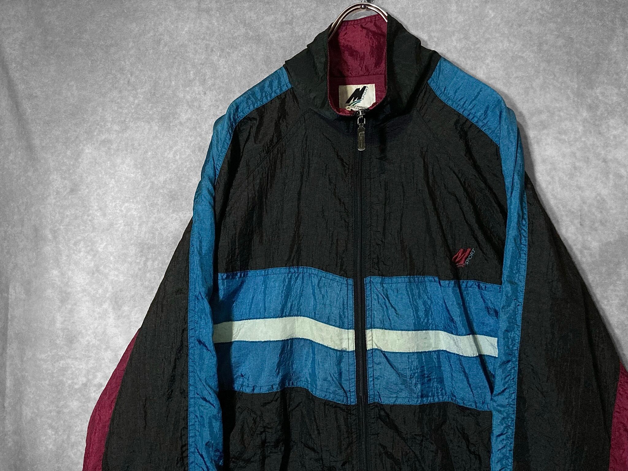 90s Black × Blue color Contrast design Switching Nylon jacket
