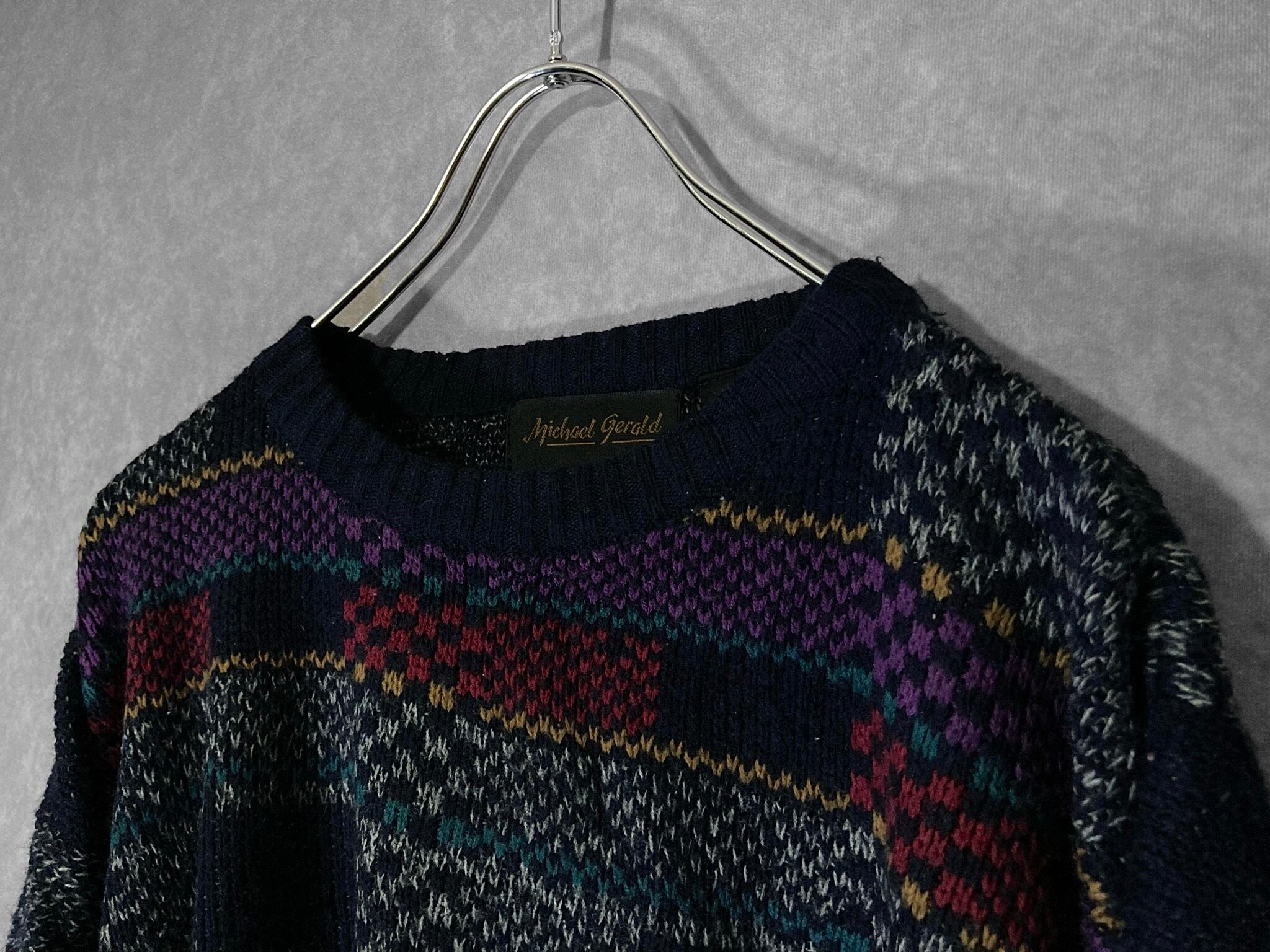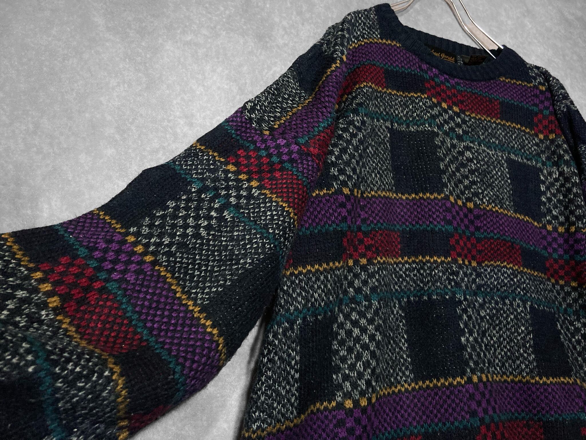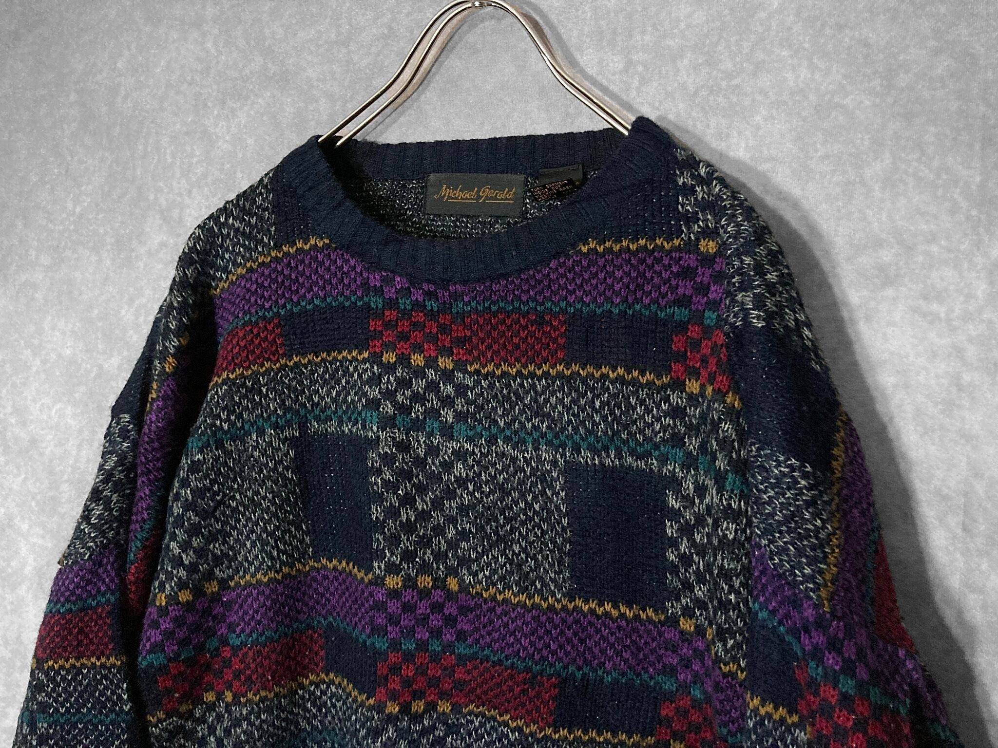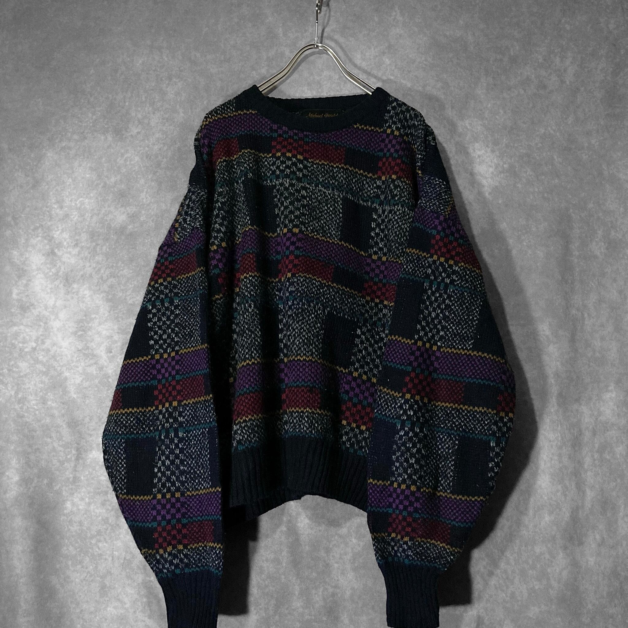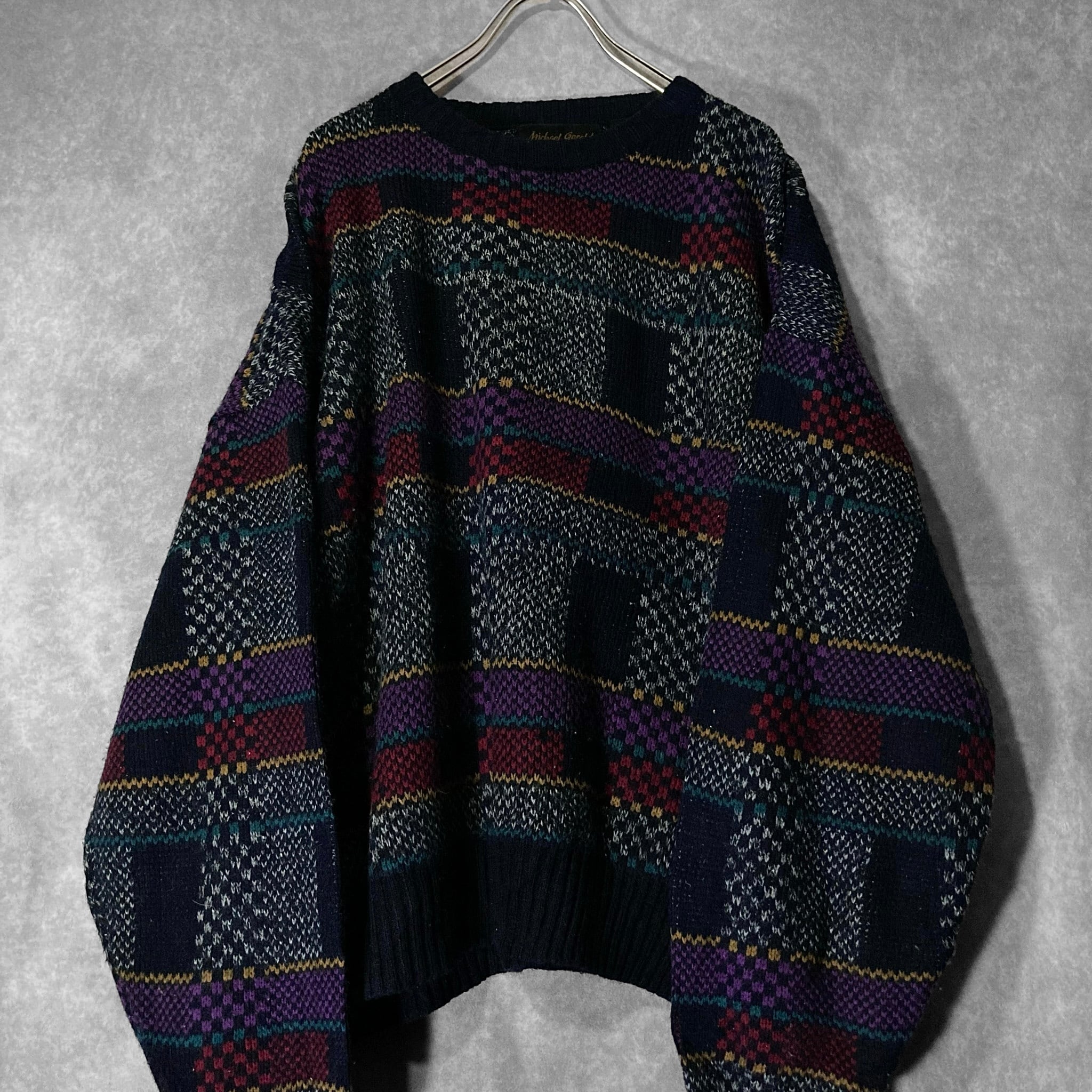 Michael Gerald, Mulch colored Bewitching square all over pattern design knit sweater