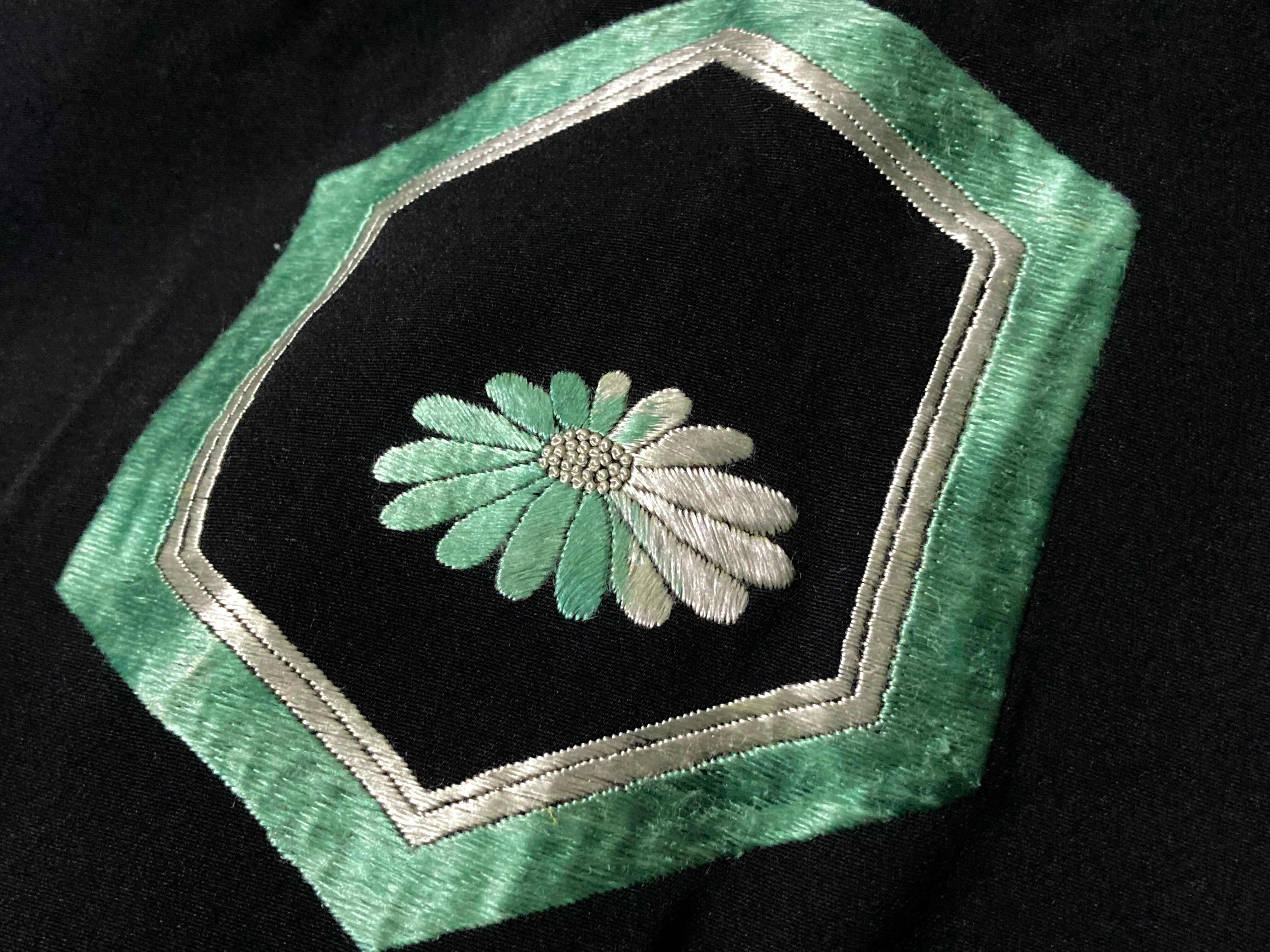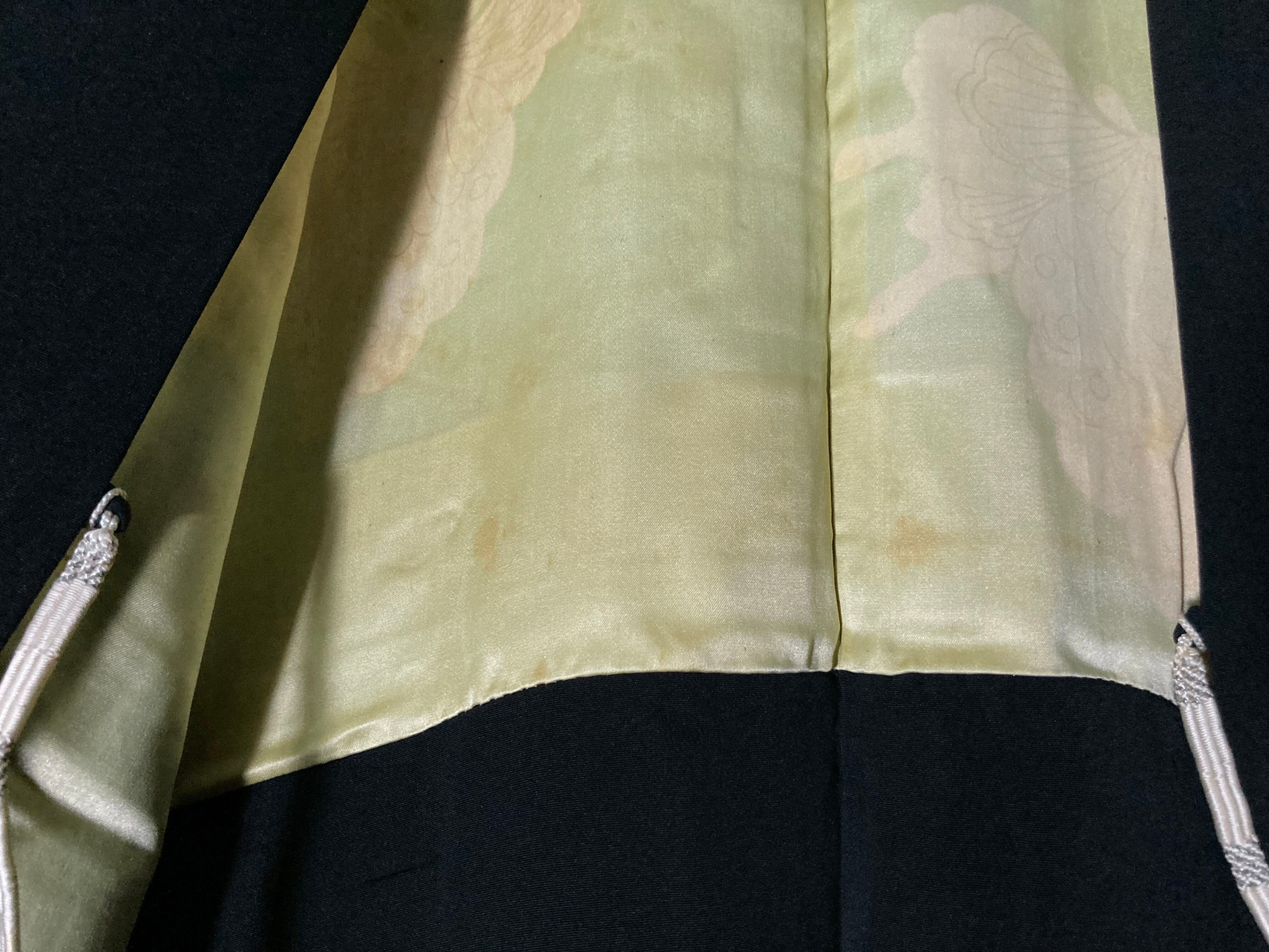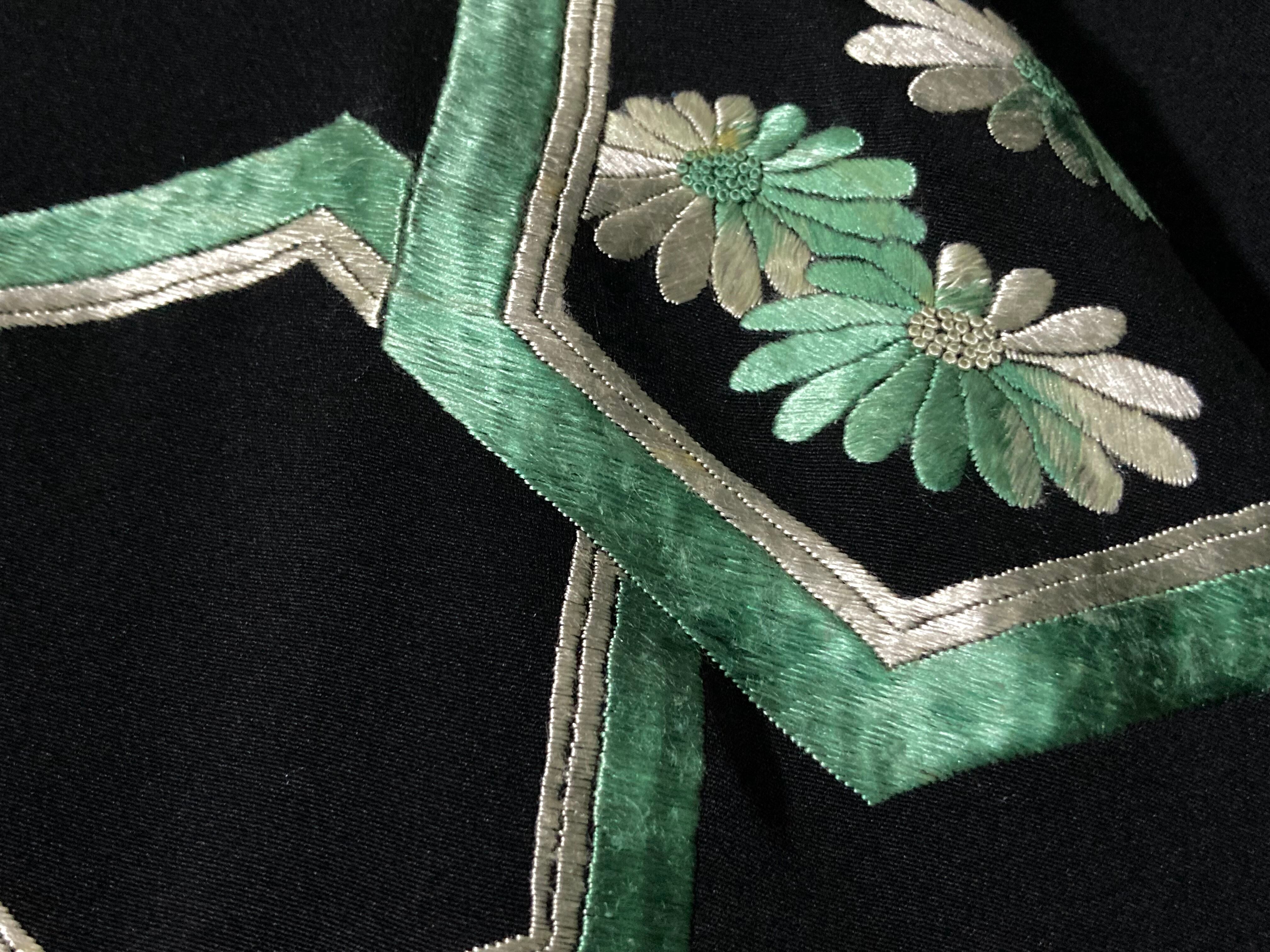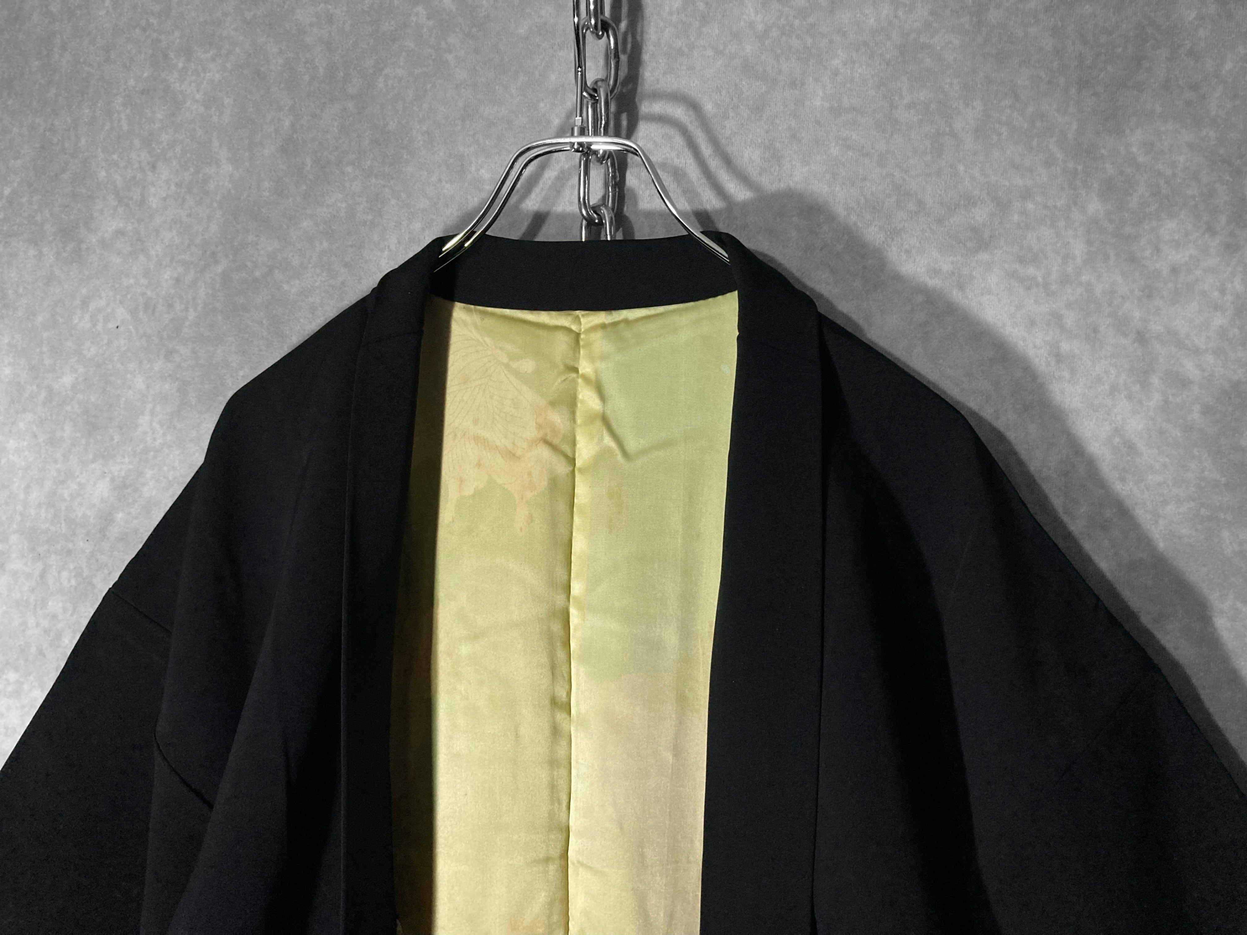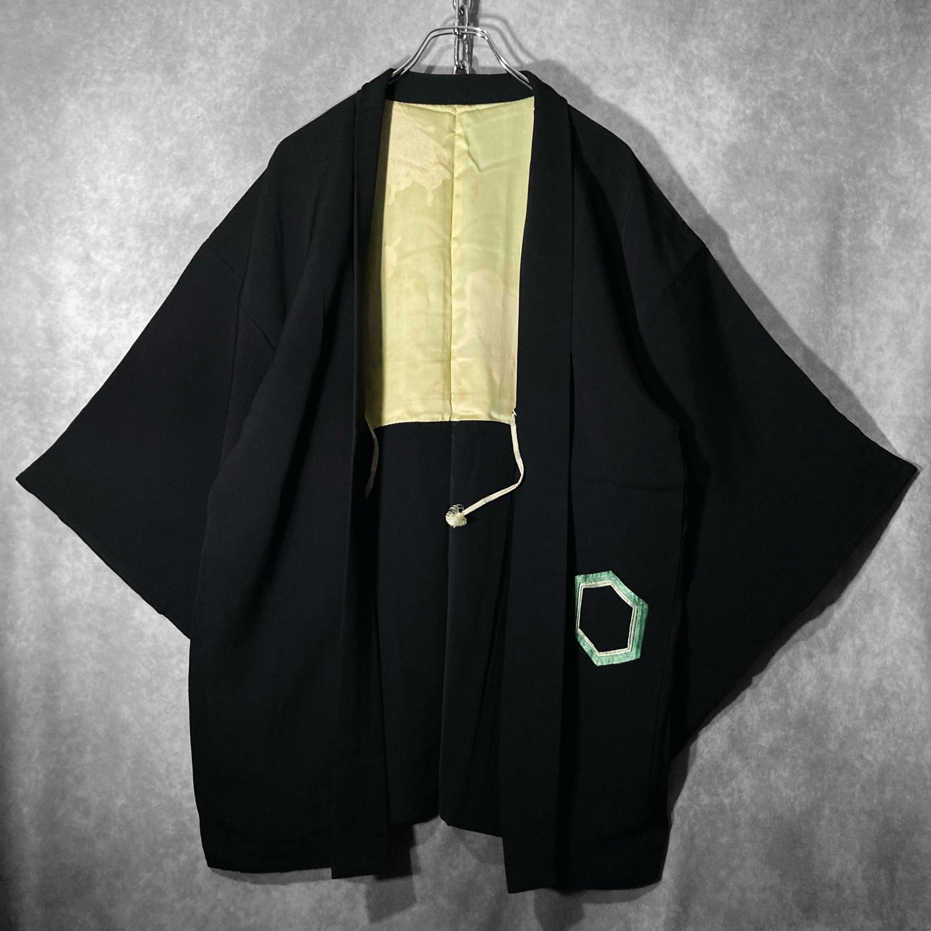 【kasume】黒羽織 - 翡翠亀甲 - Jade-green tortoiseshell pattern embroidery design Vintage Made in Japan Black haori