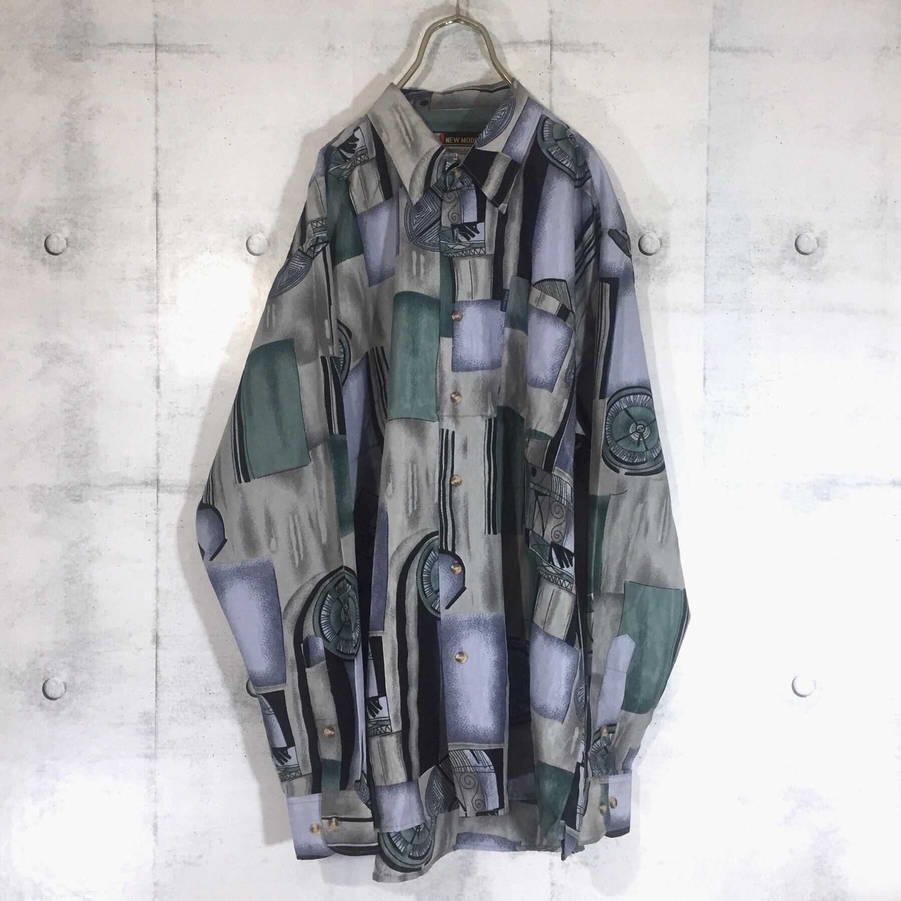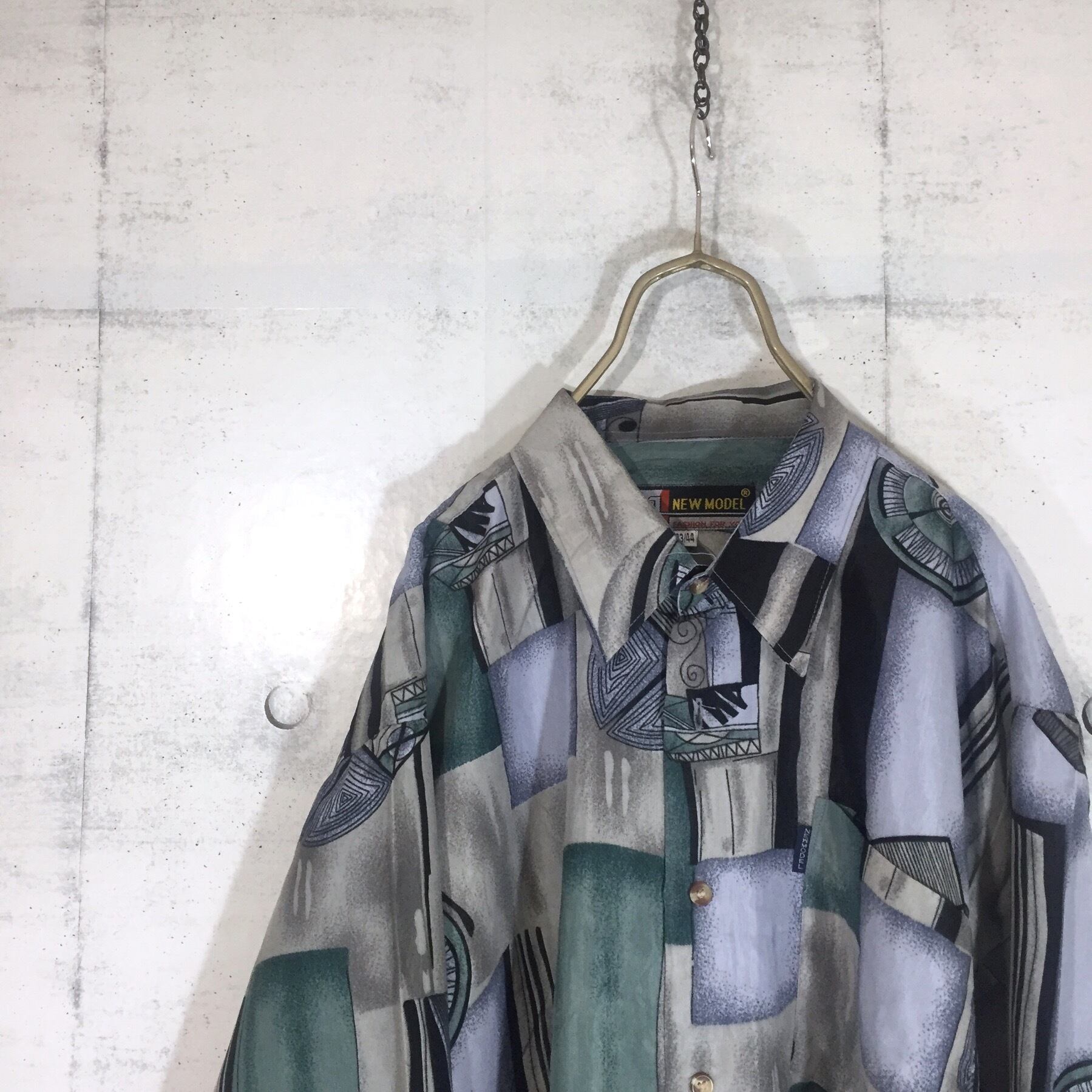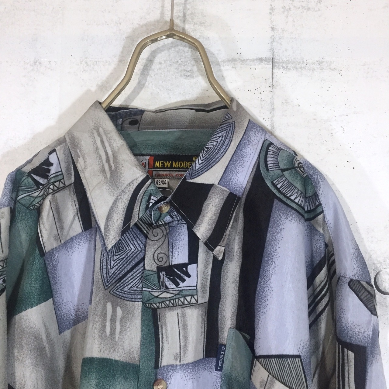 ブルー パネル 総柄シャツ ヨーロッパ系