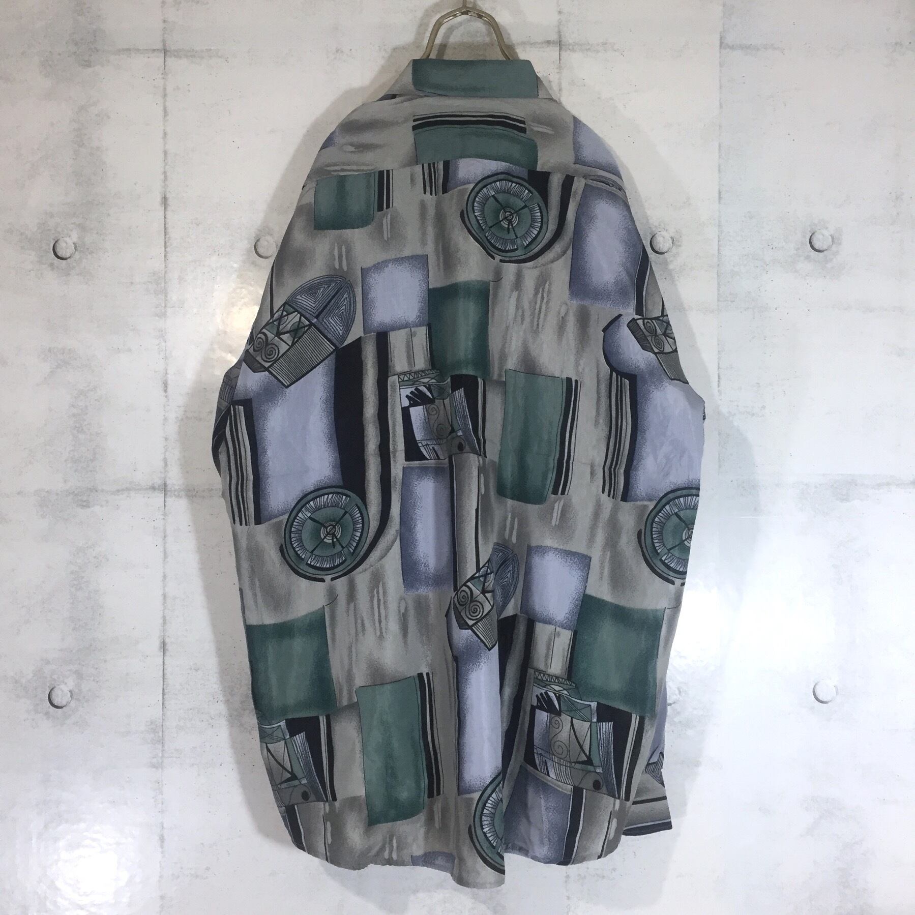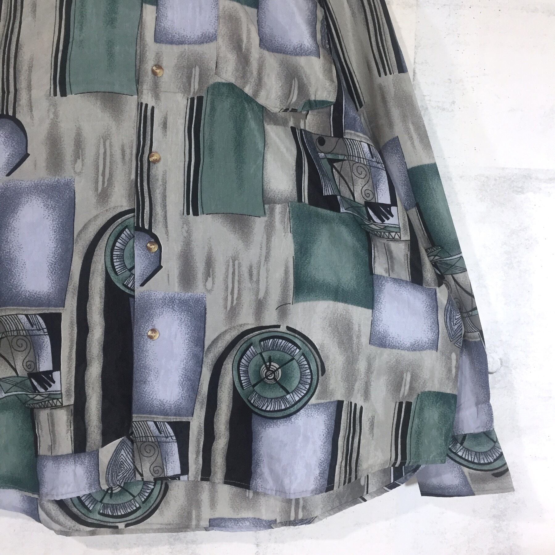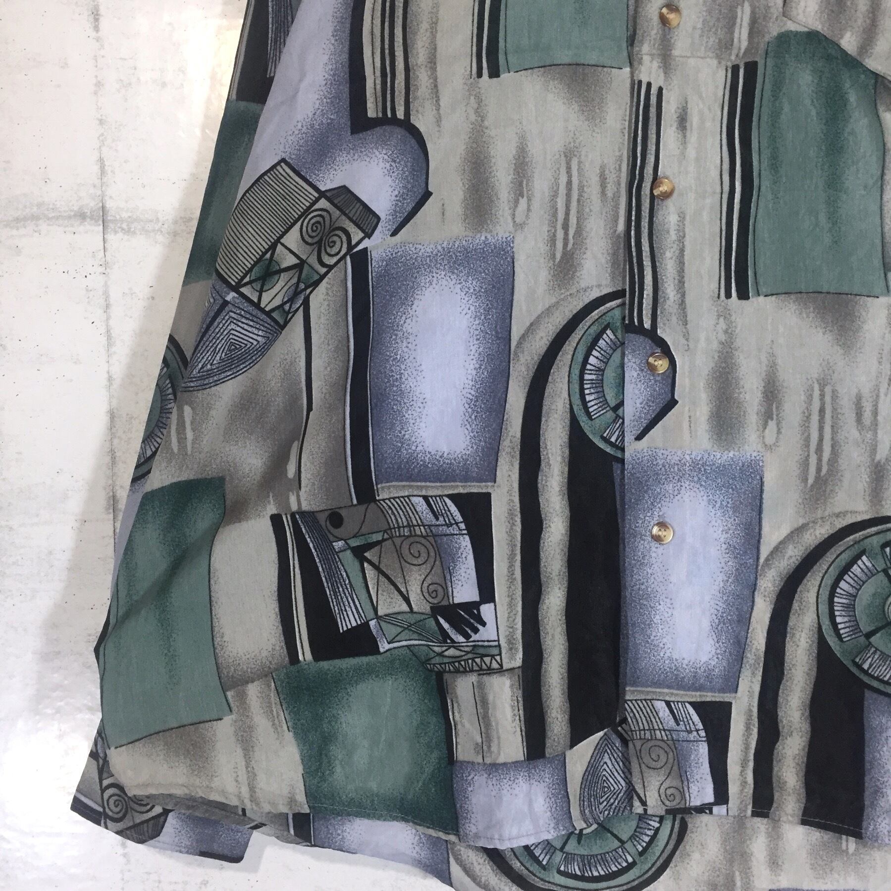 ブルー パネル 総柄シャツ ヨーロッパ系