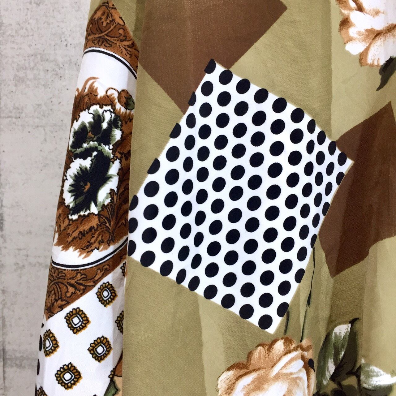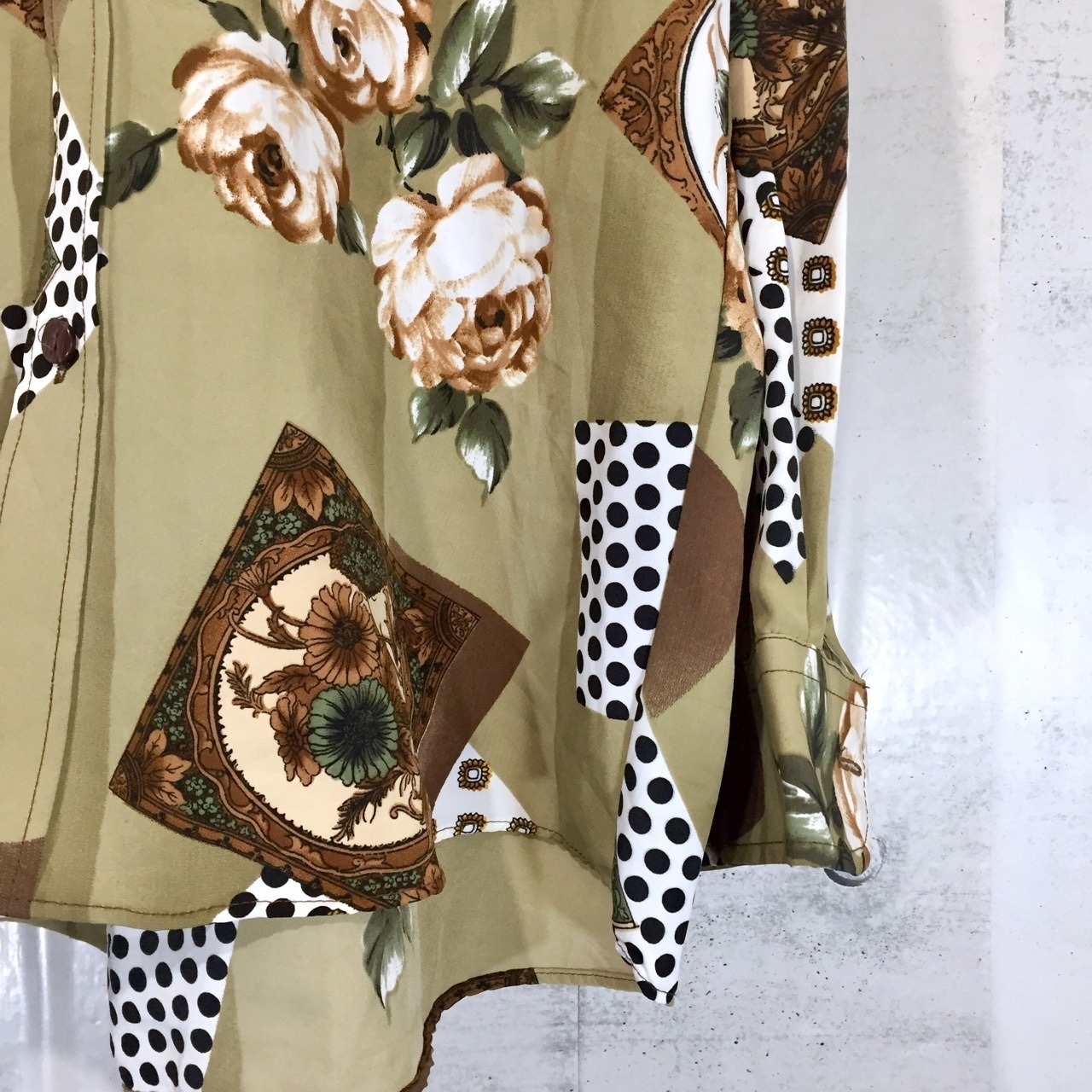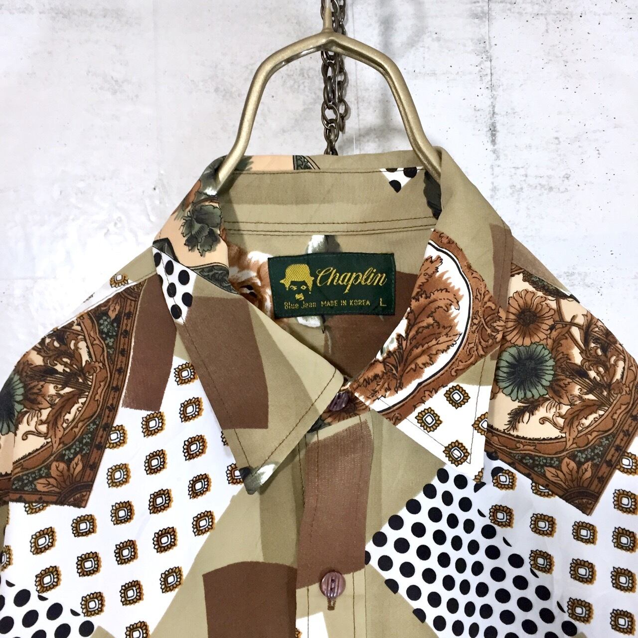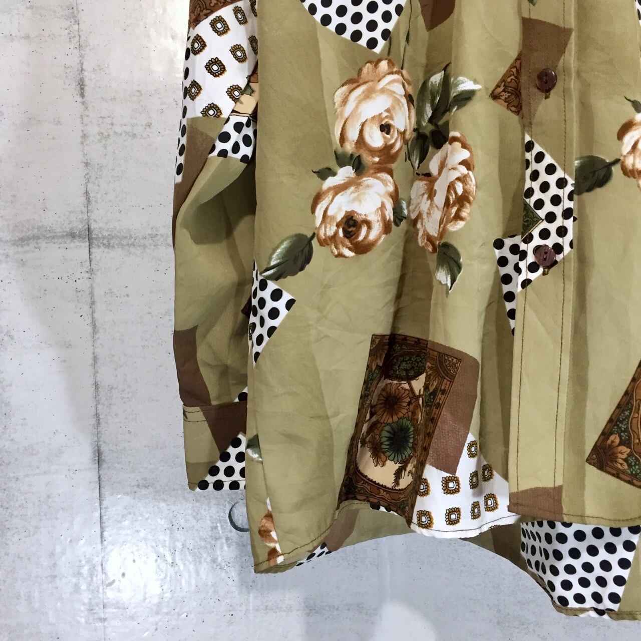 茶系 花柄 クレイジーパターン 総柄シャツ