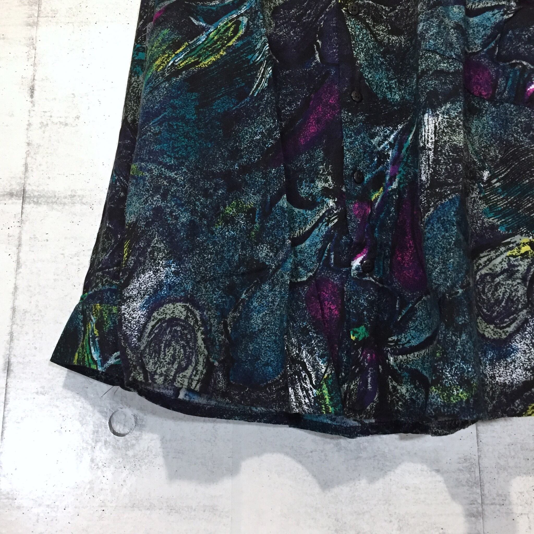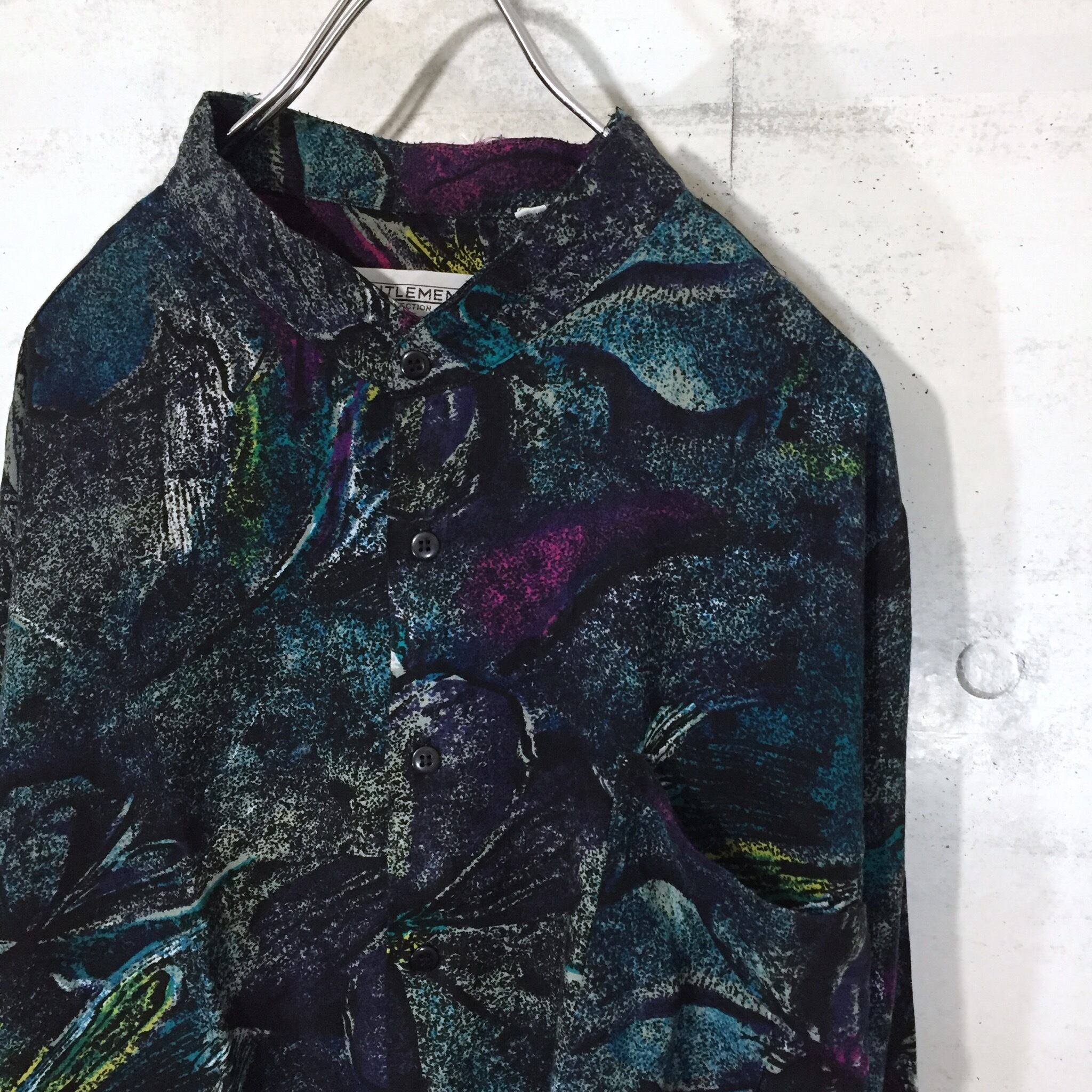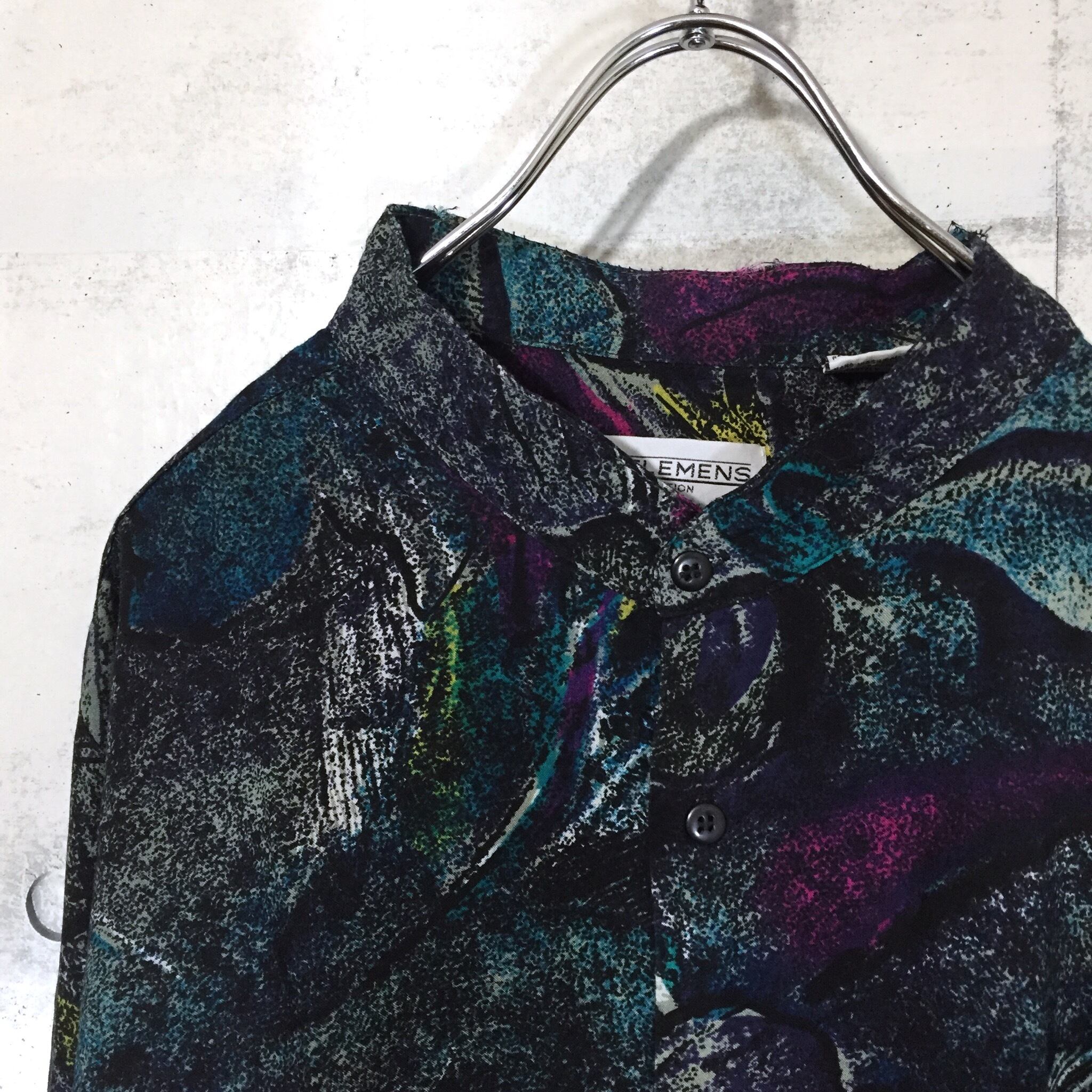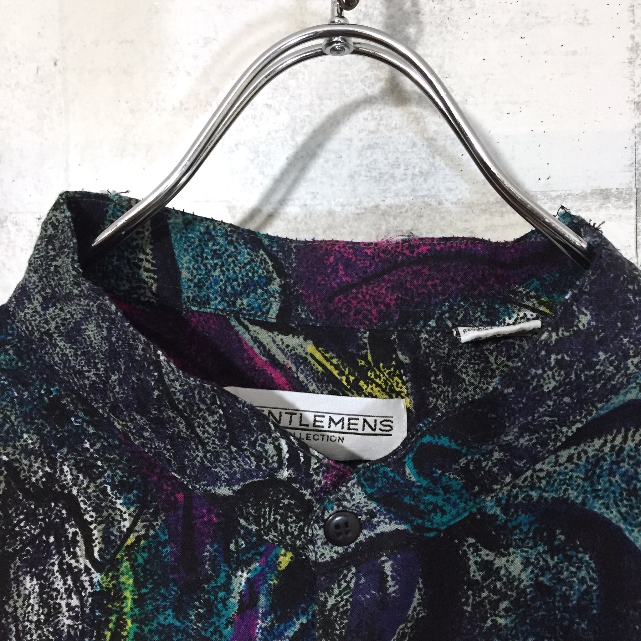 【used】band-collar pattern shirt