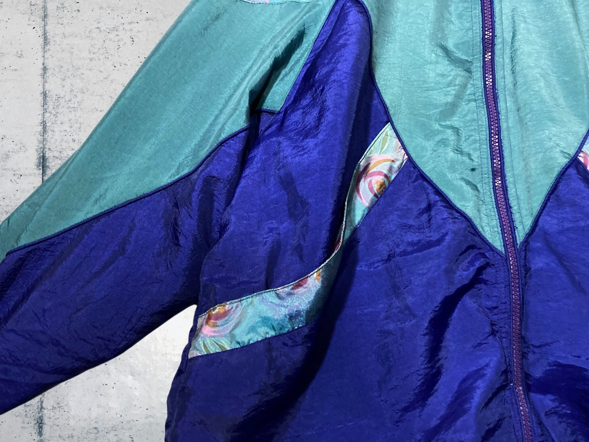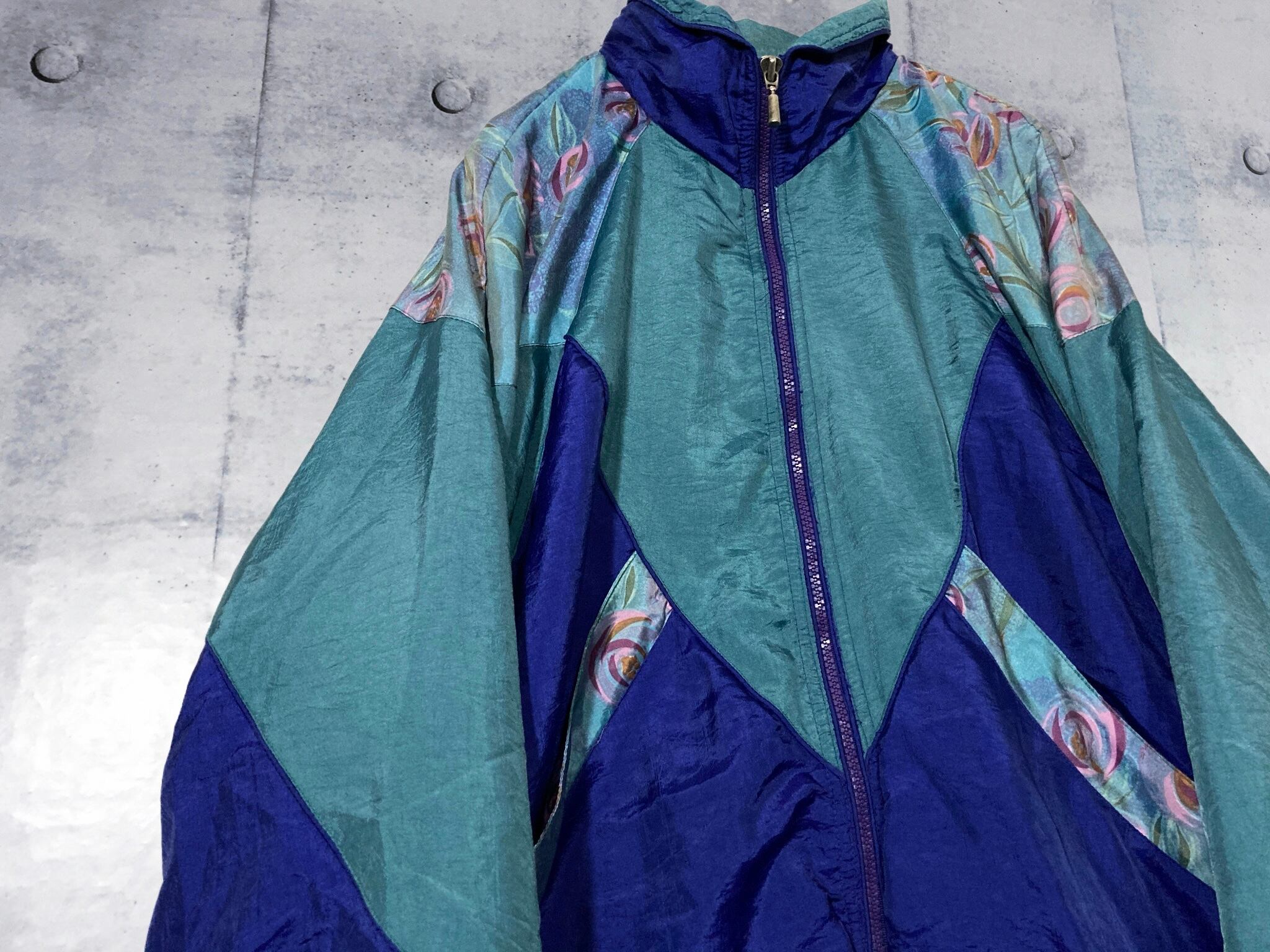 80-90's art pattern design swiching nylon blouson