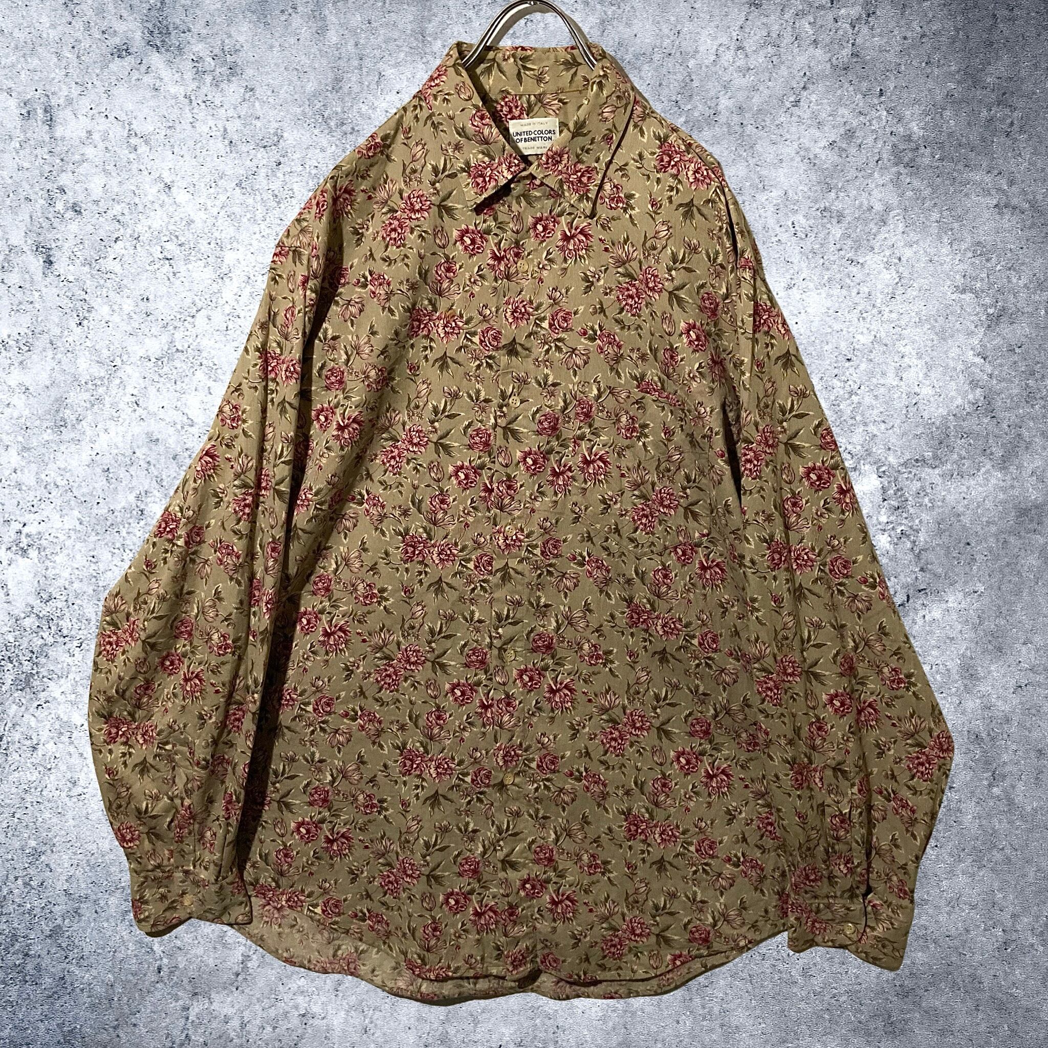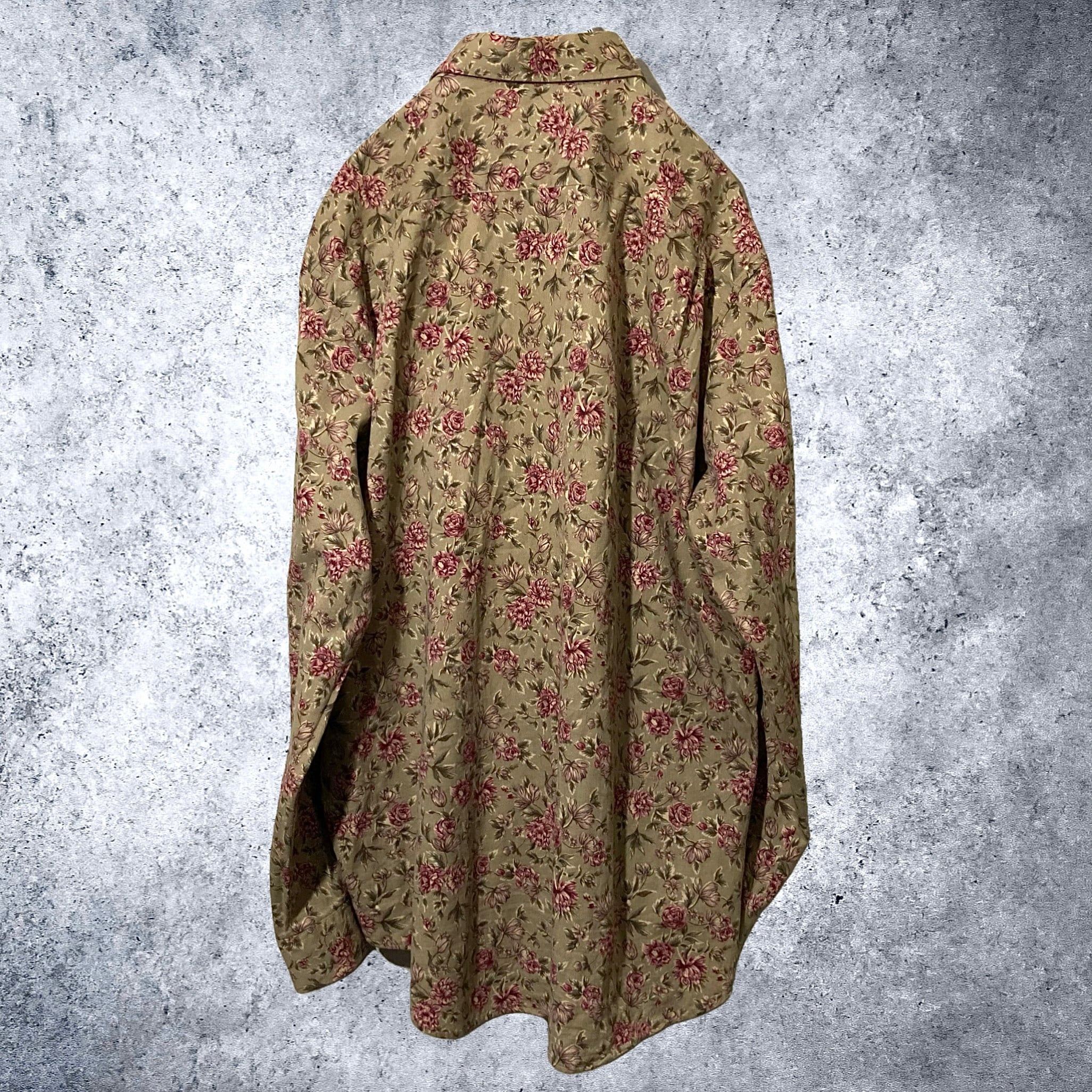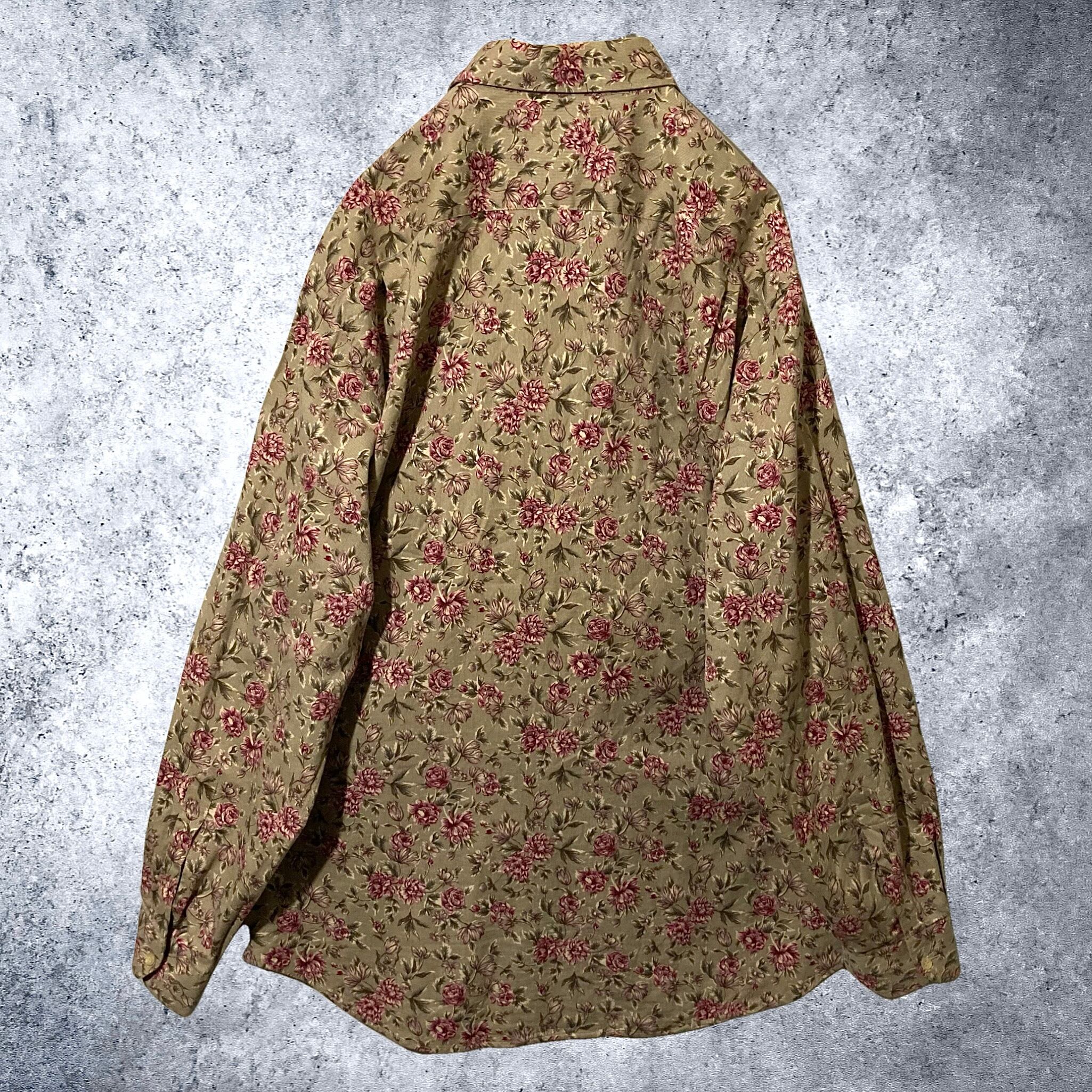 Flower pattern all over design over-size corduroy shirt (XL)