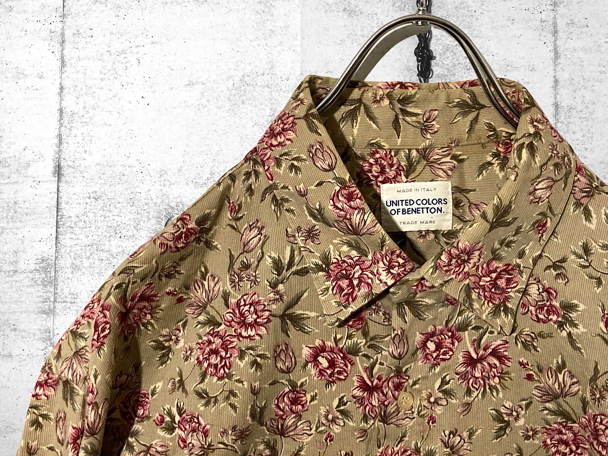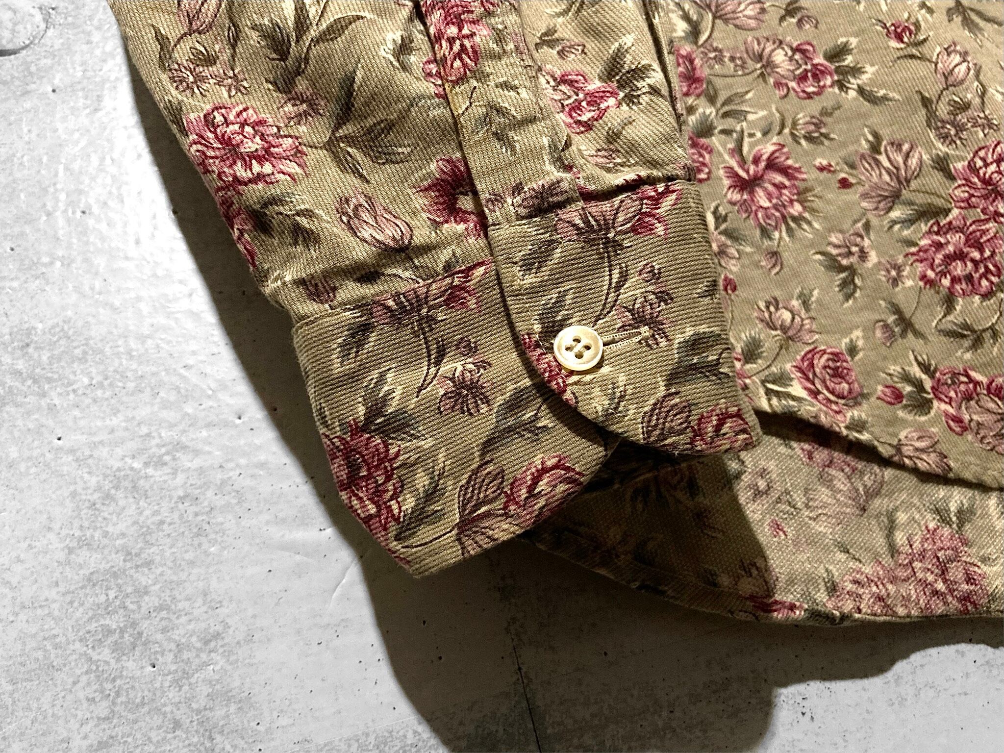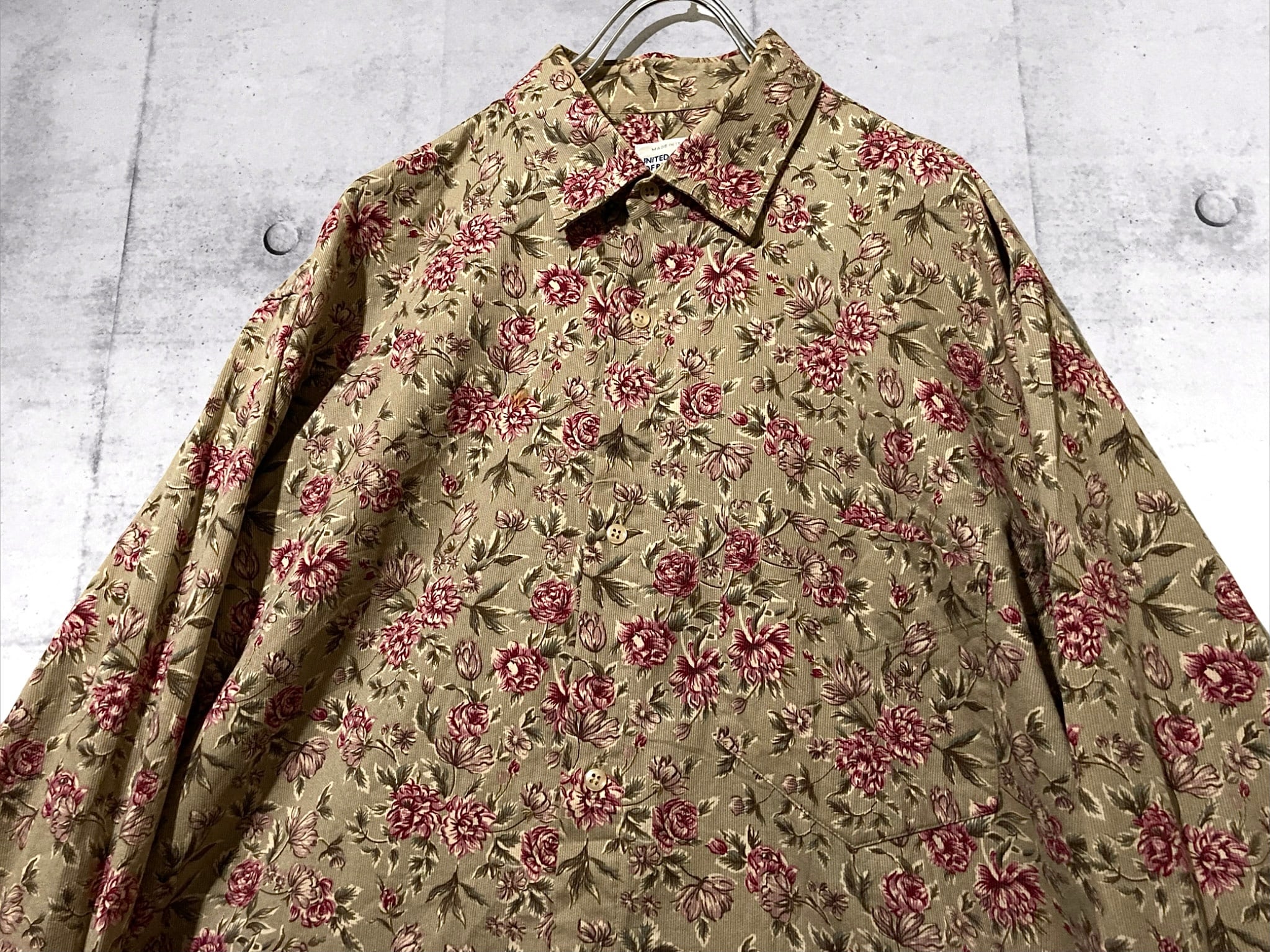 Flower pattern all over design over-size corduroy shirt (XL)
